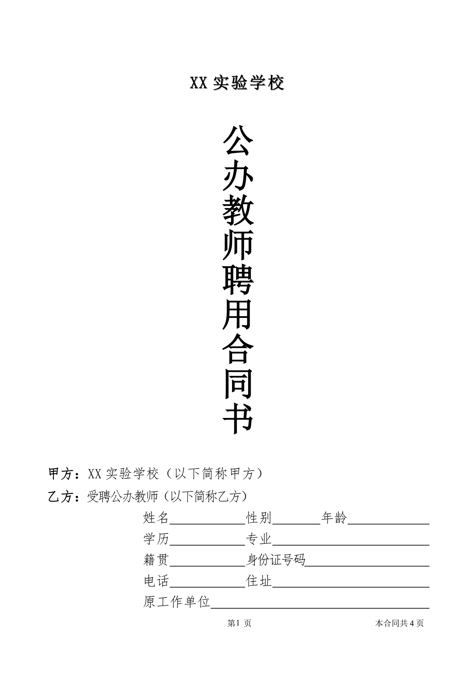 合同名称:公办教师聘用合同