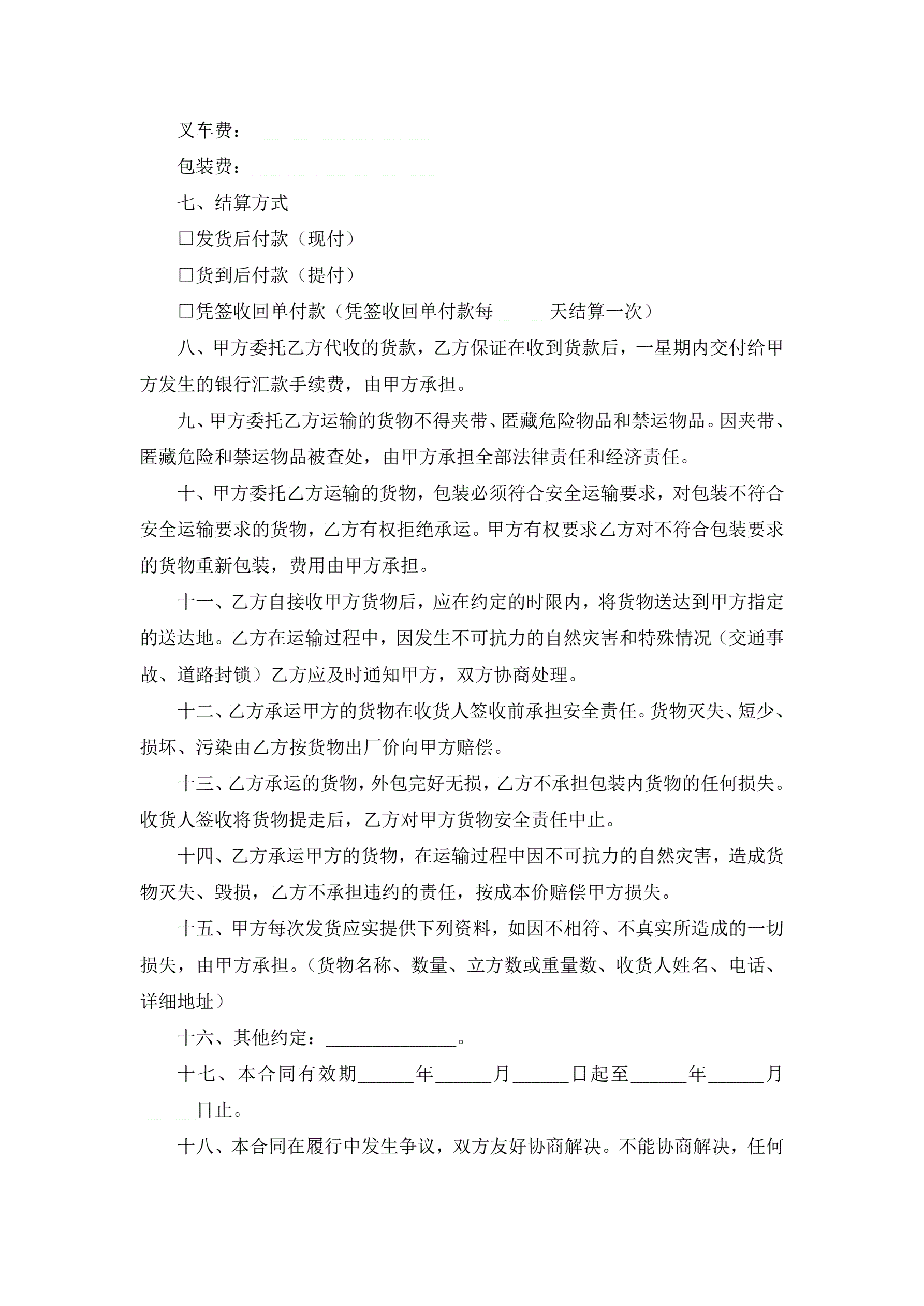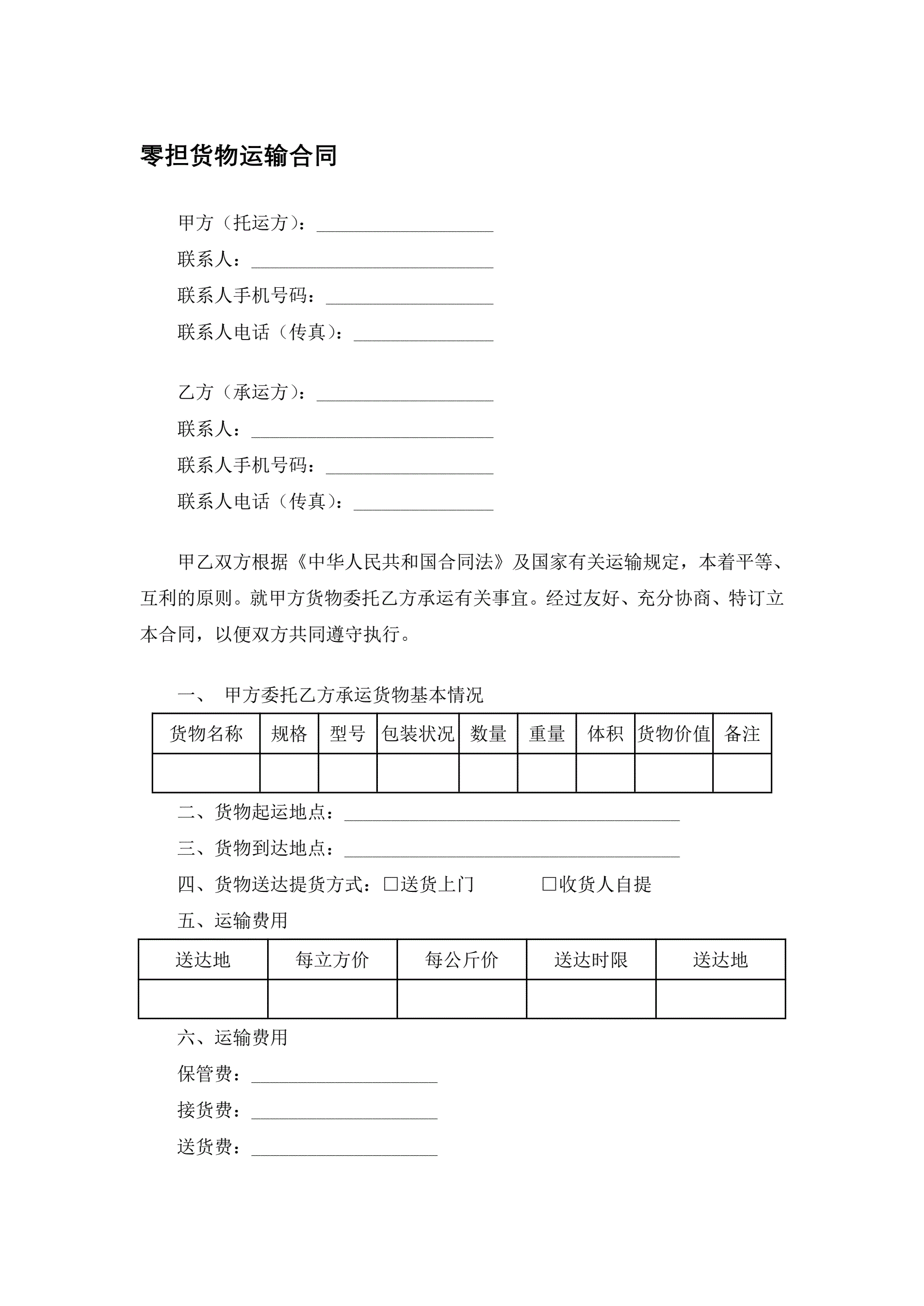 零担货物运输合同