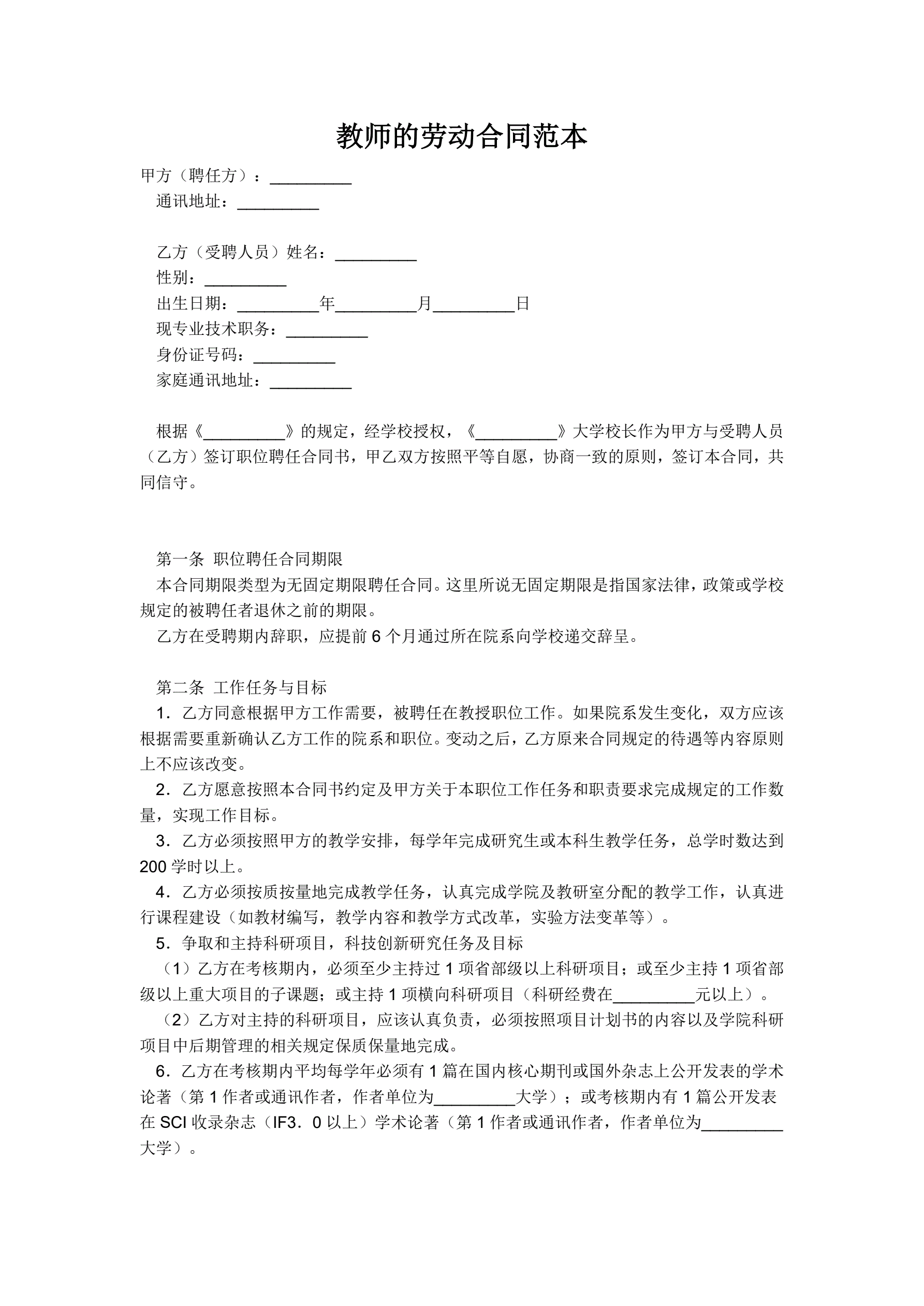 >教师的劳动合同范本