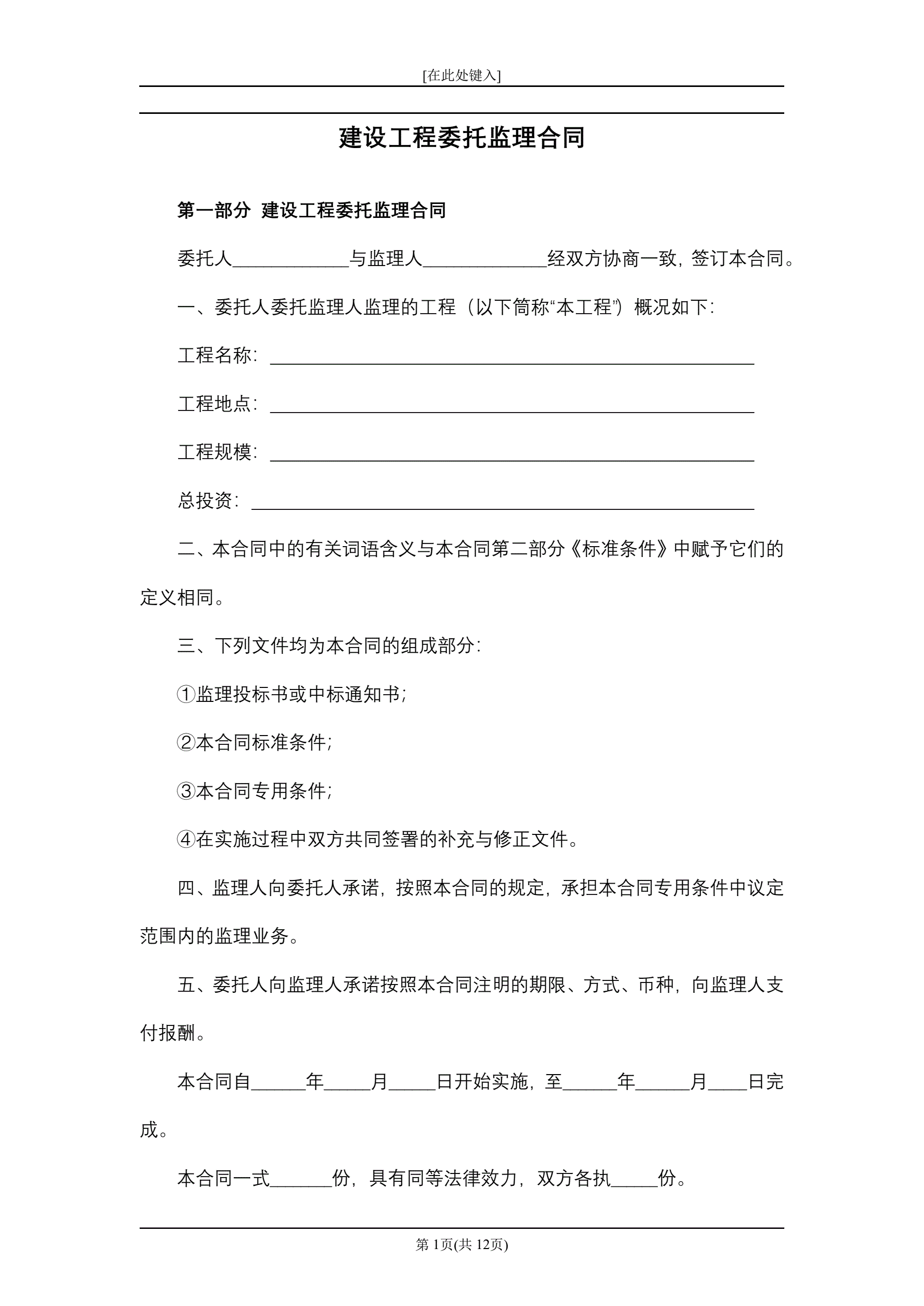 >建设工程委托监理合同