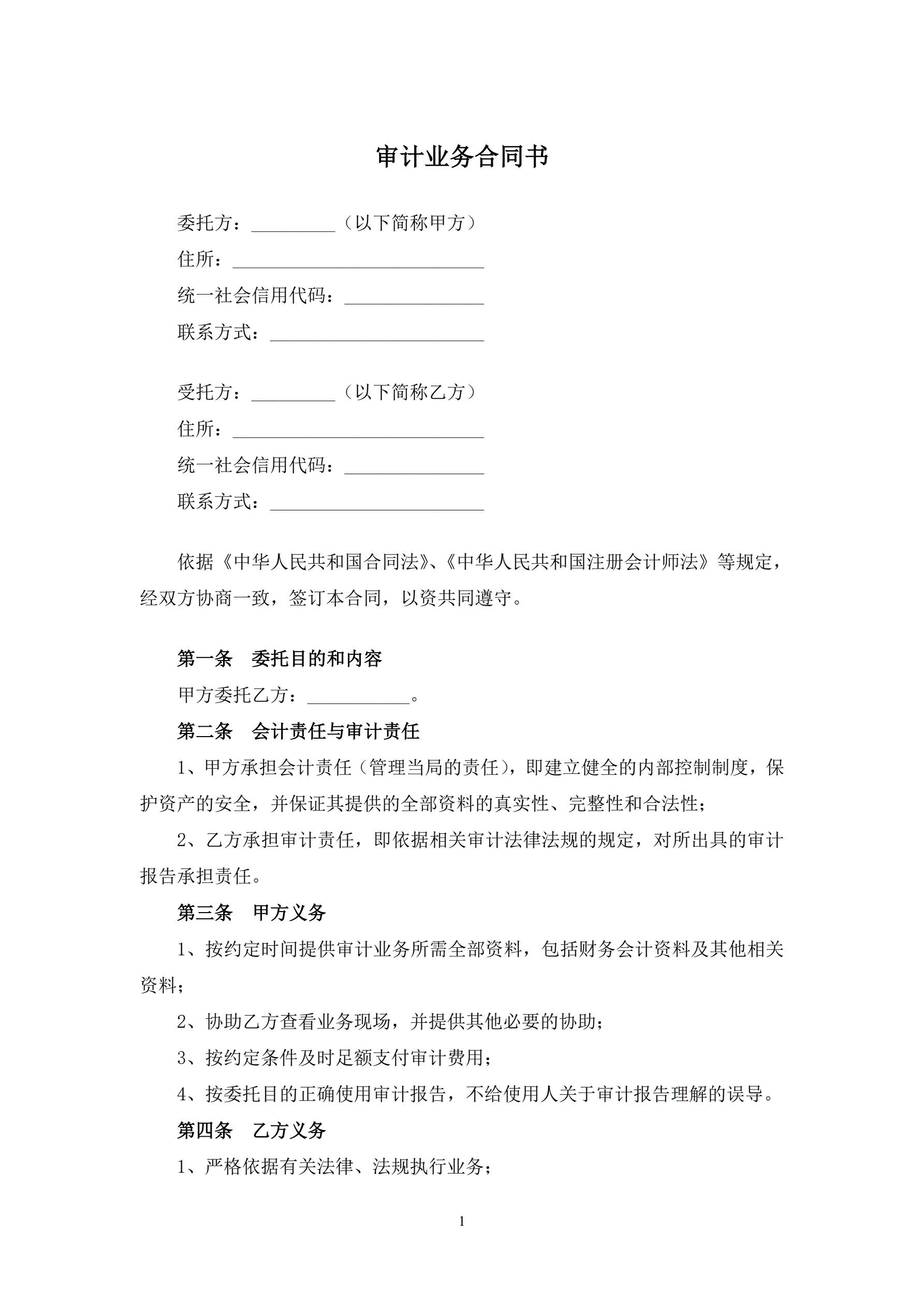 审计业务合同书