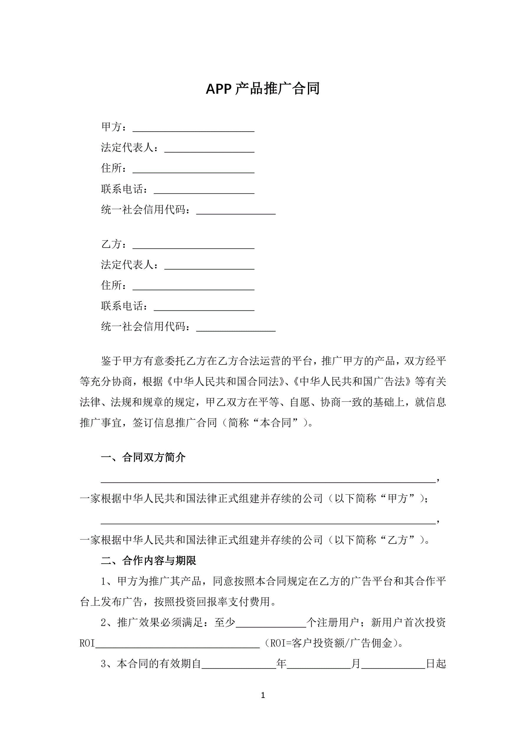 APP产品推广合同