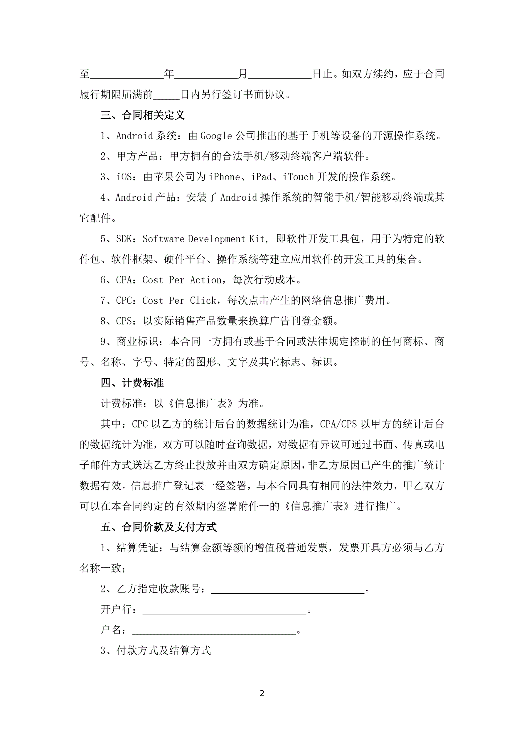 >APP产品推广合同