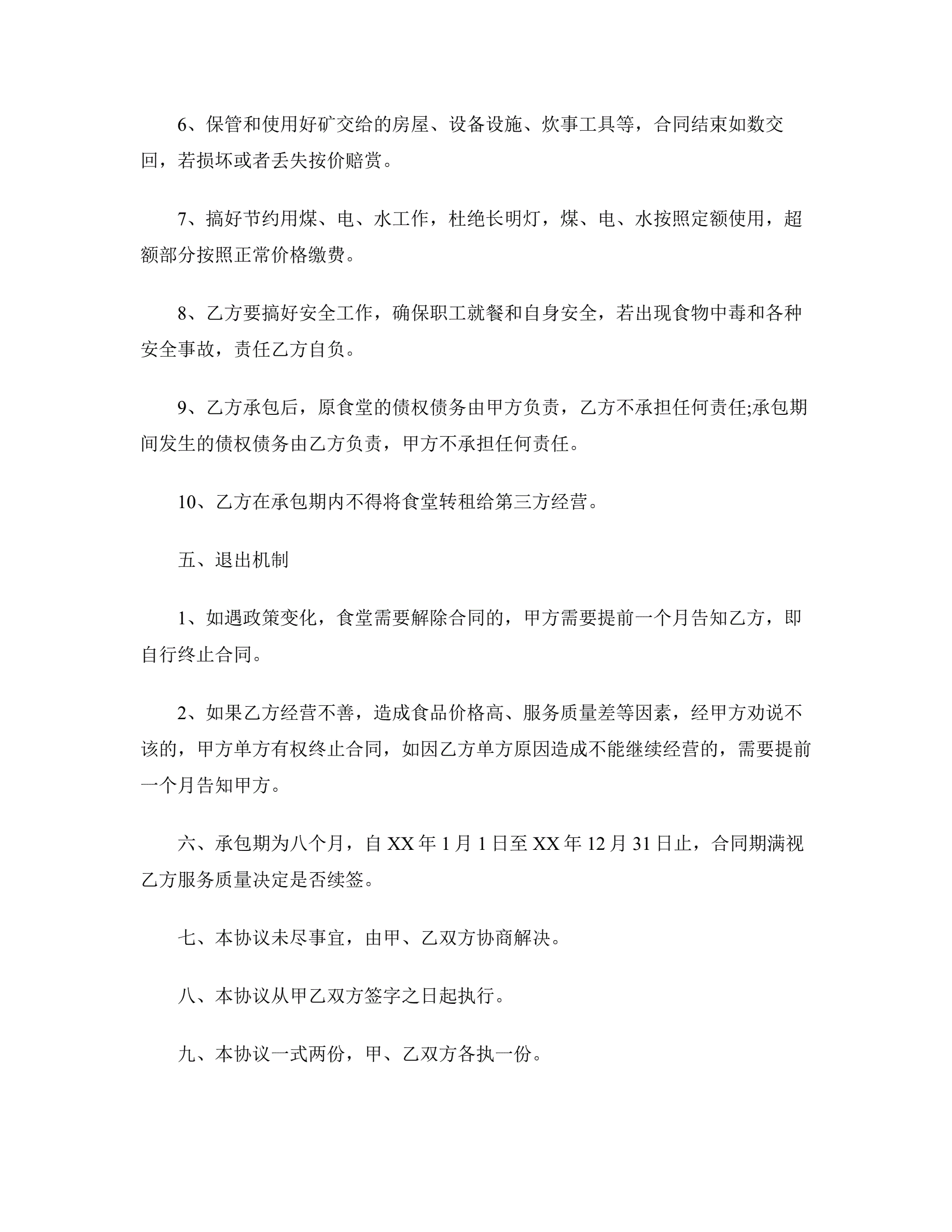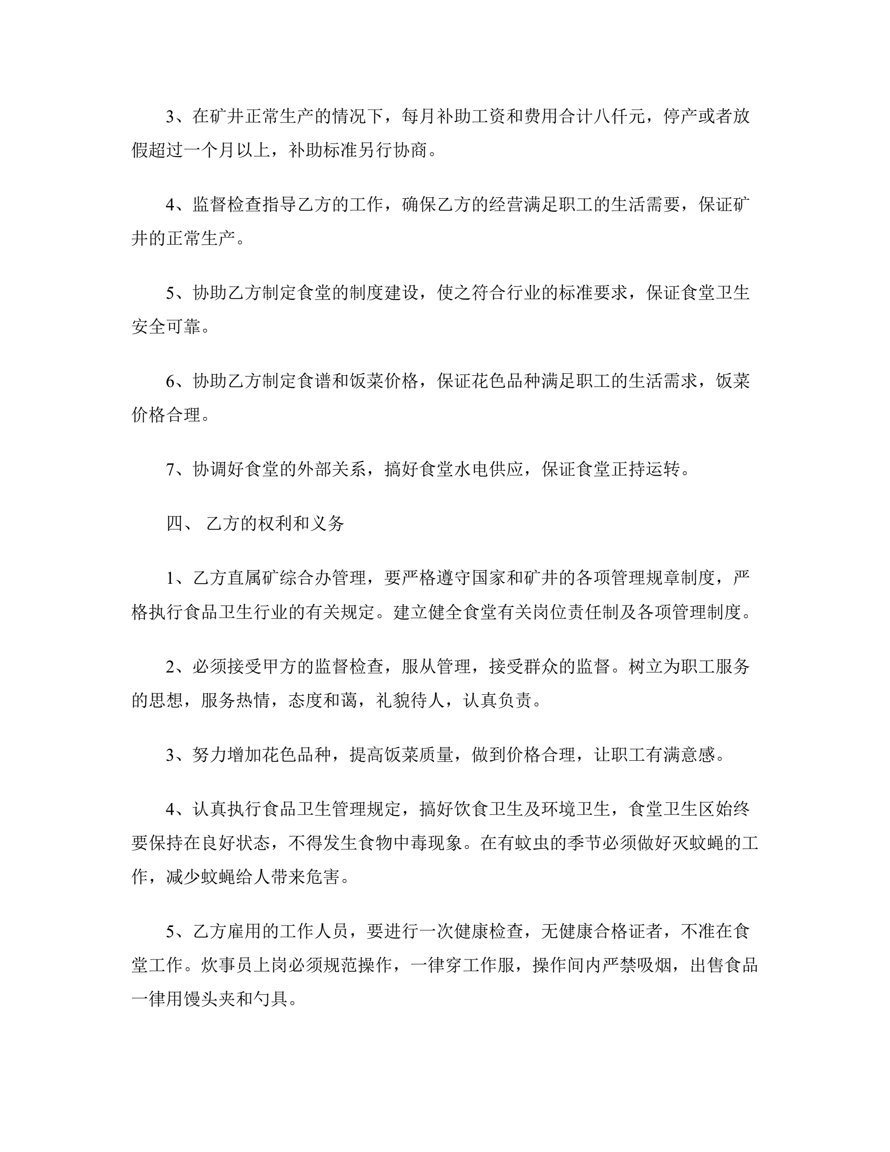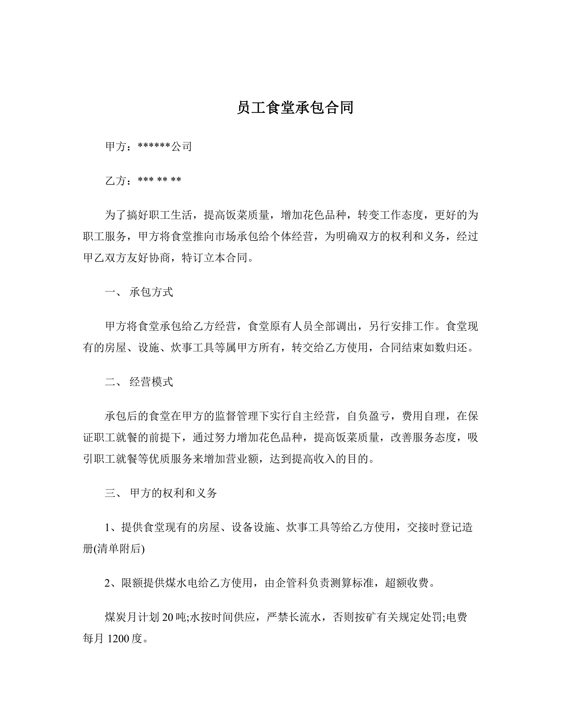 员工食堂承包合同