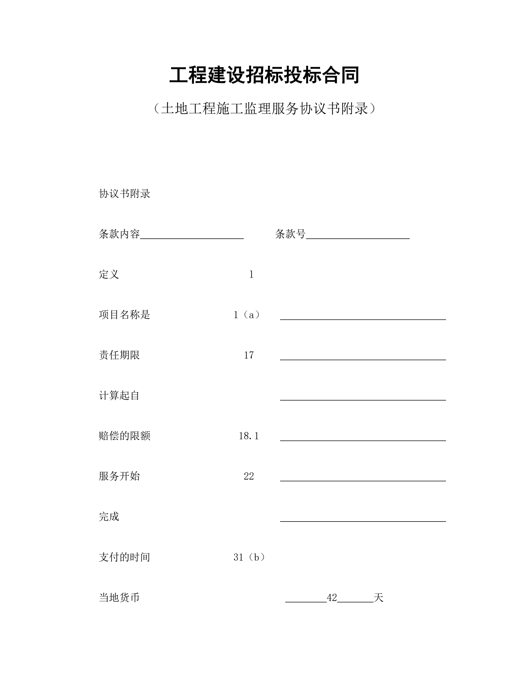 >工程建设招标投标合同(土地工程施工监理服务协议书附录)