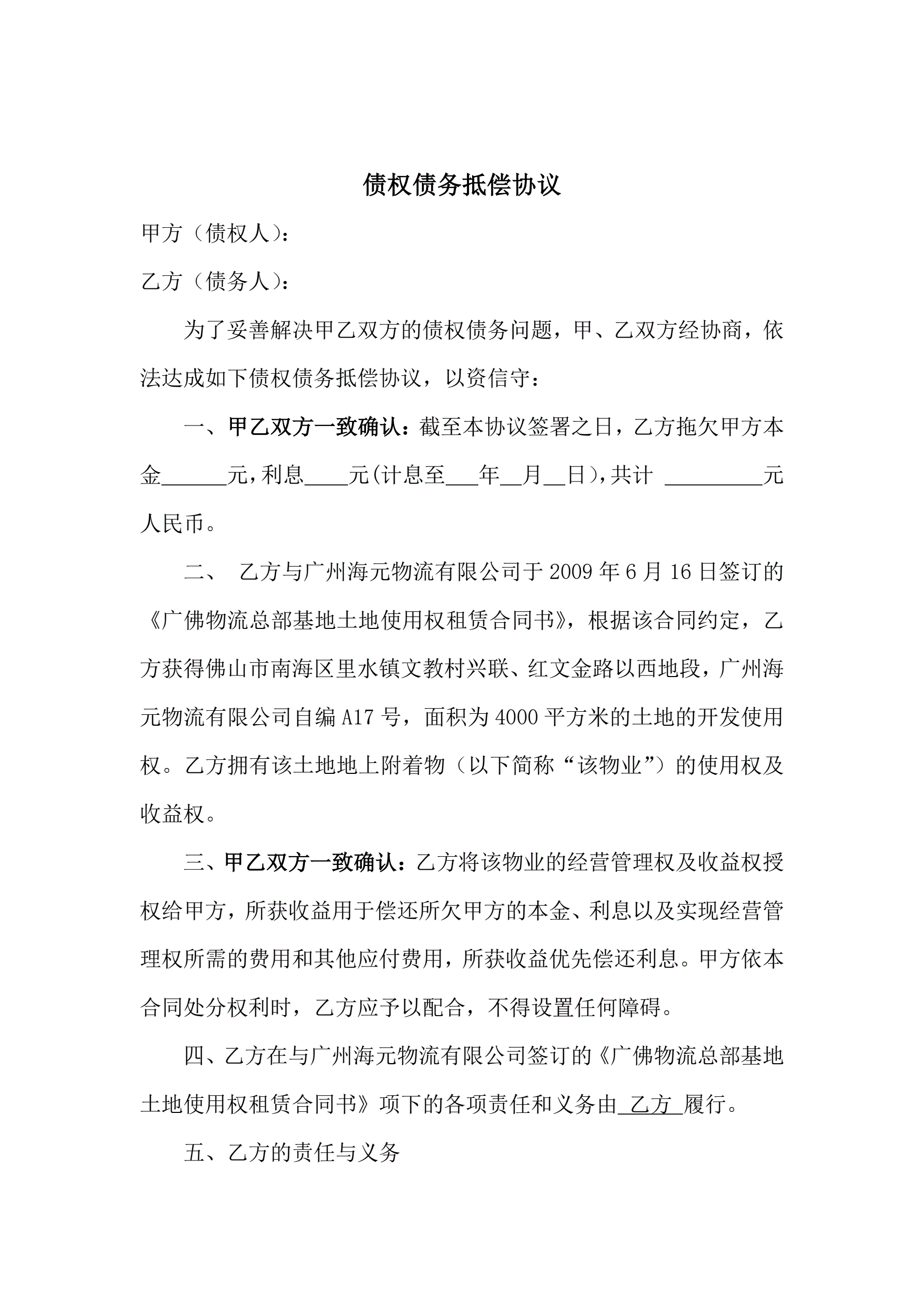 >债权债务抵偿协议