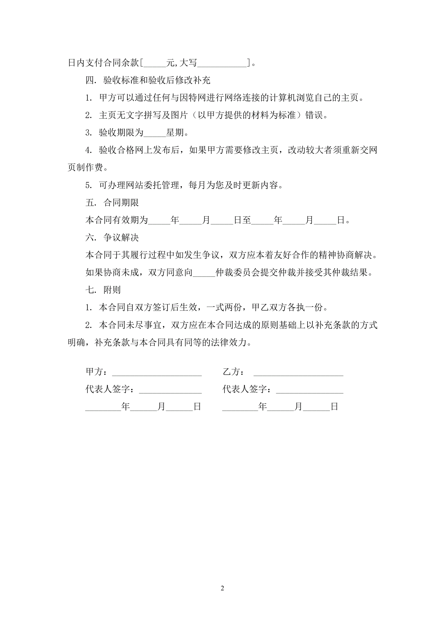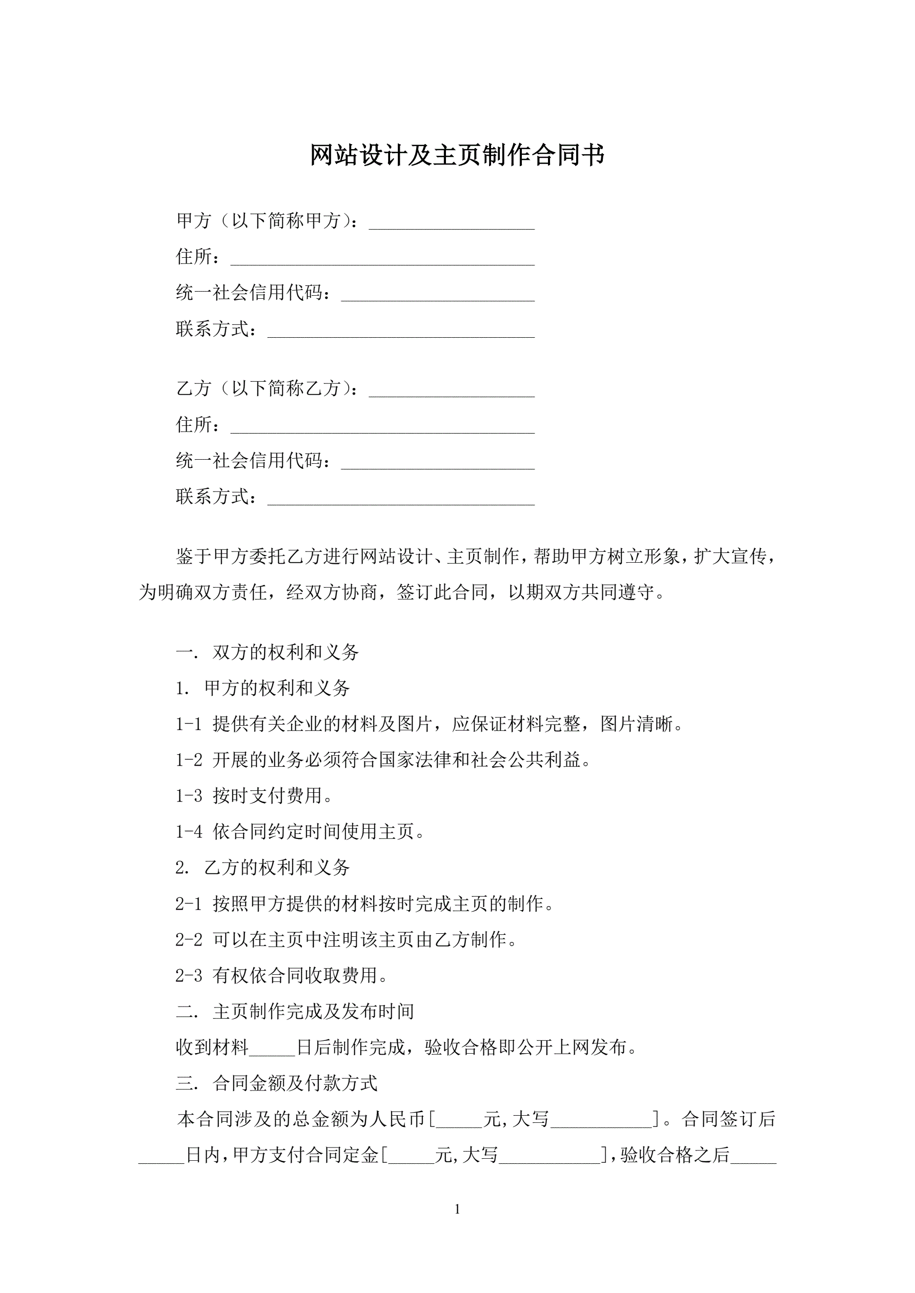 合同名称:网站设计及主页制作合同书
