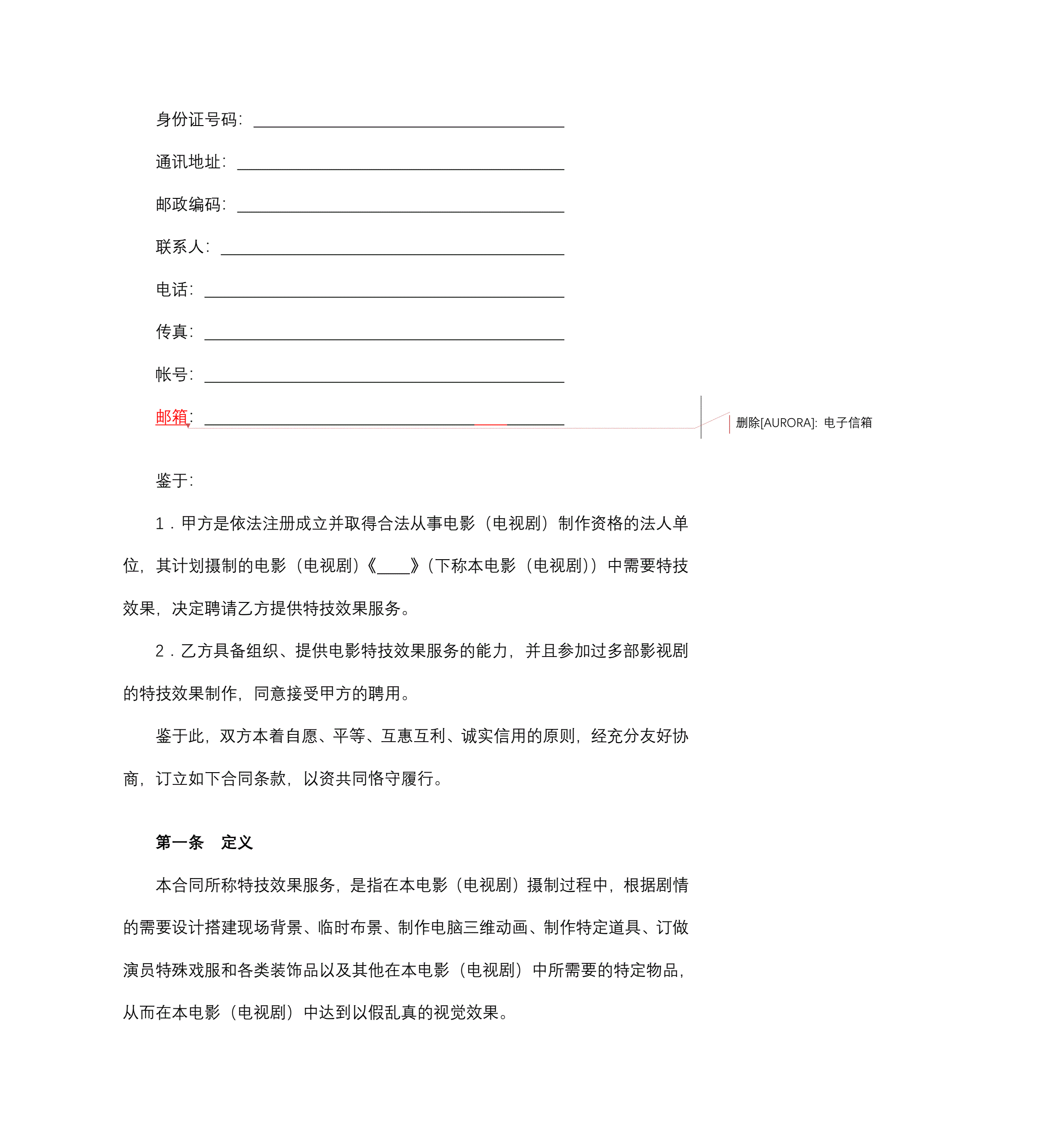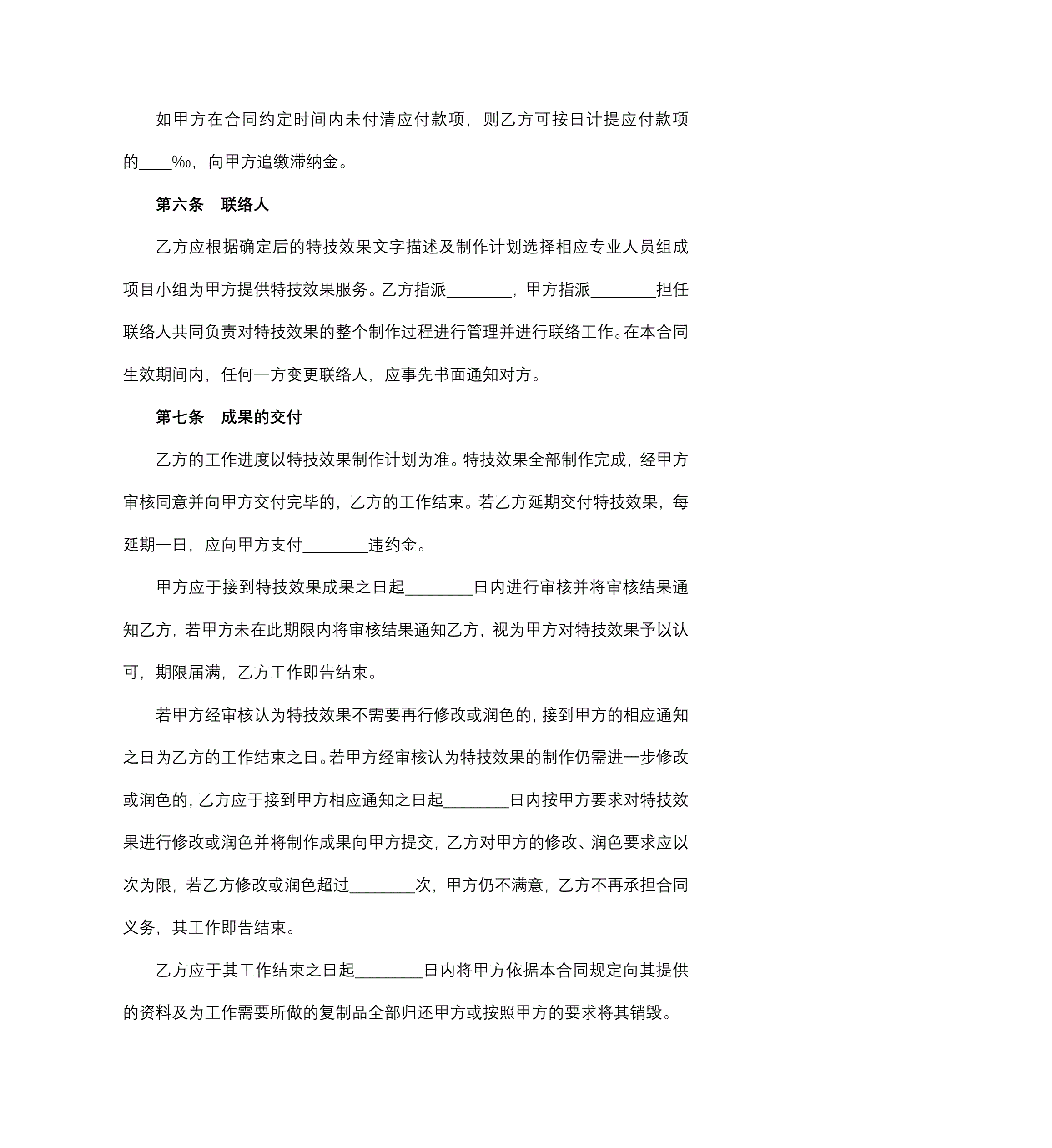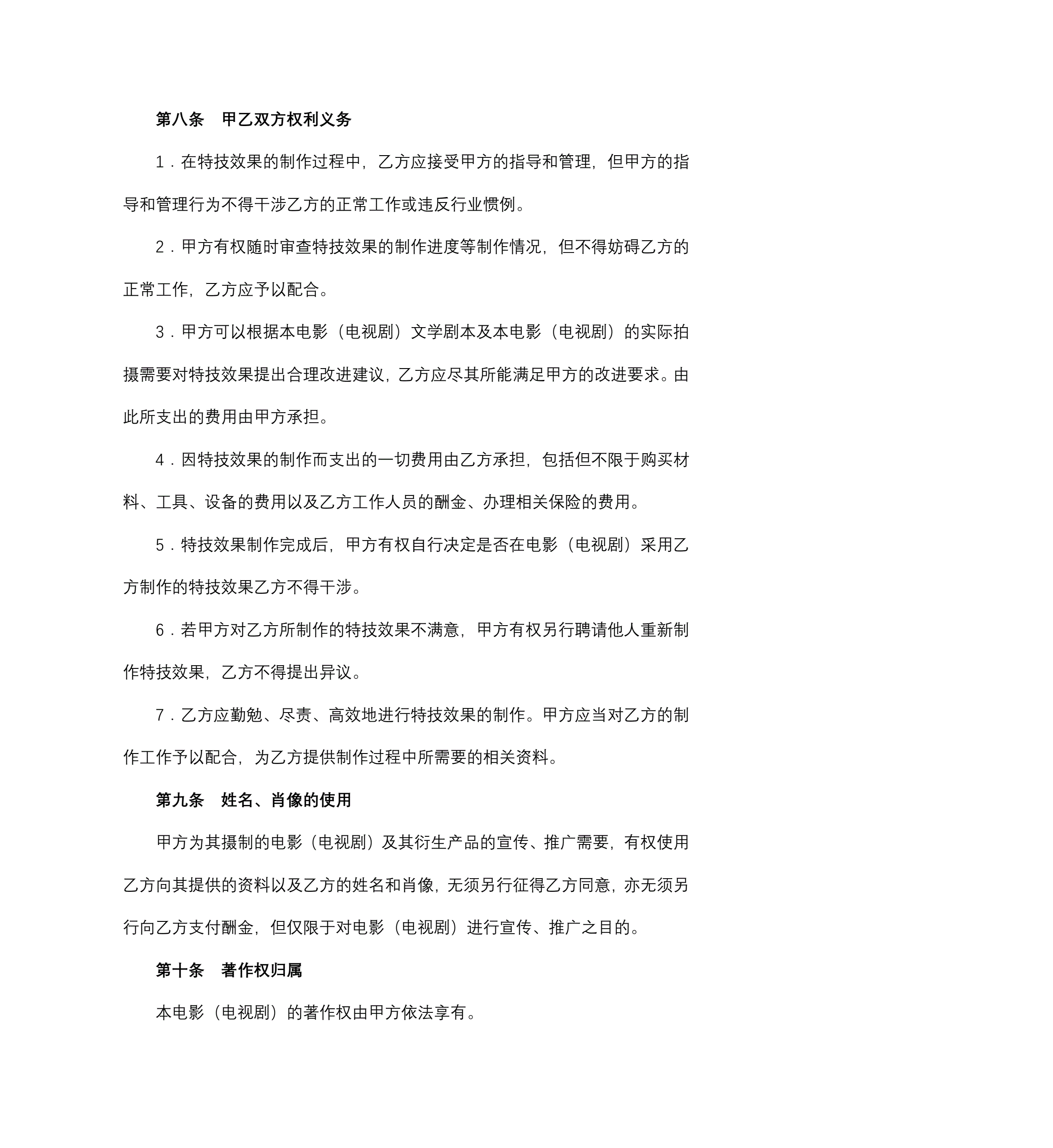 影视剧特技效果合同