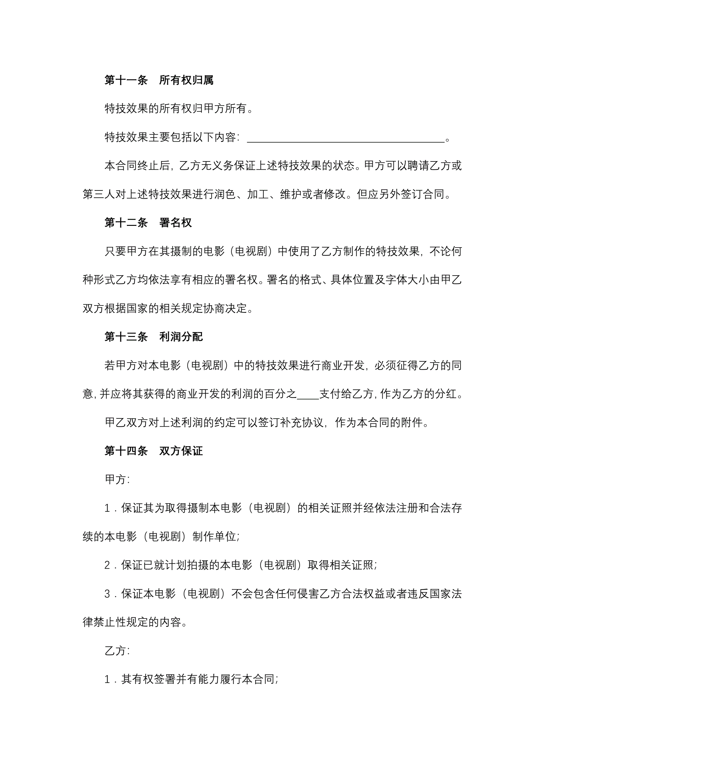>影视剧特技效果合同