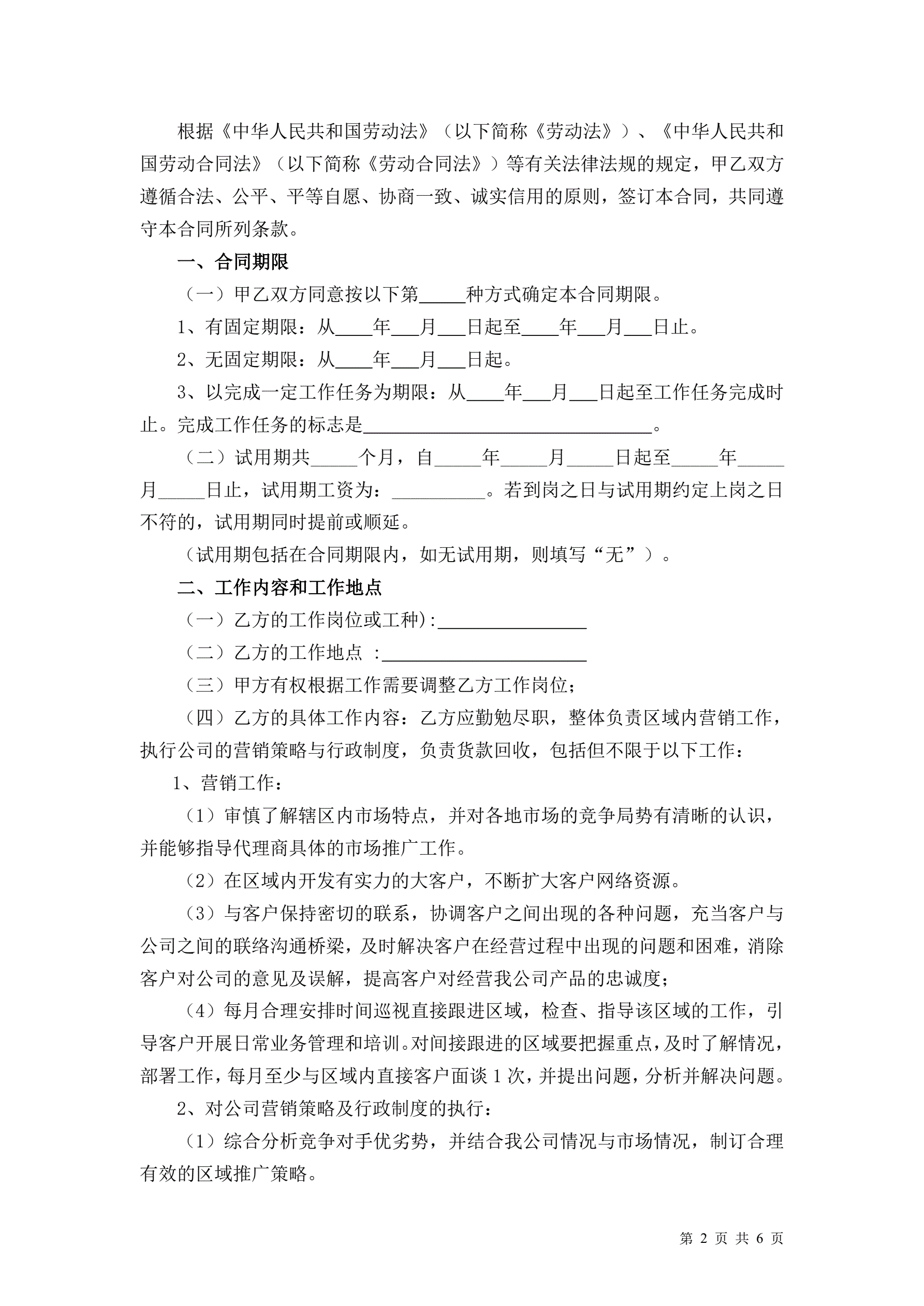 销售人员劳动合同