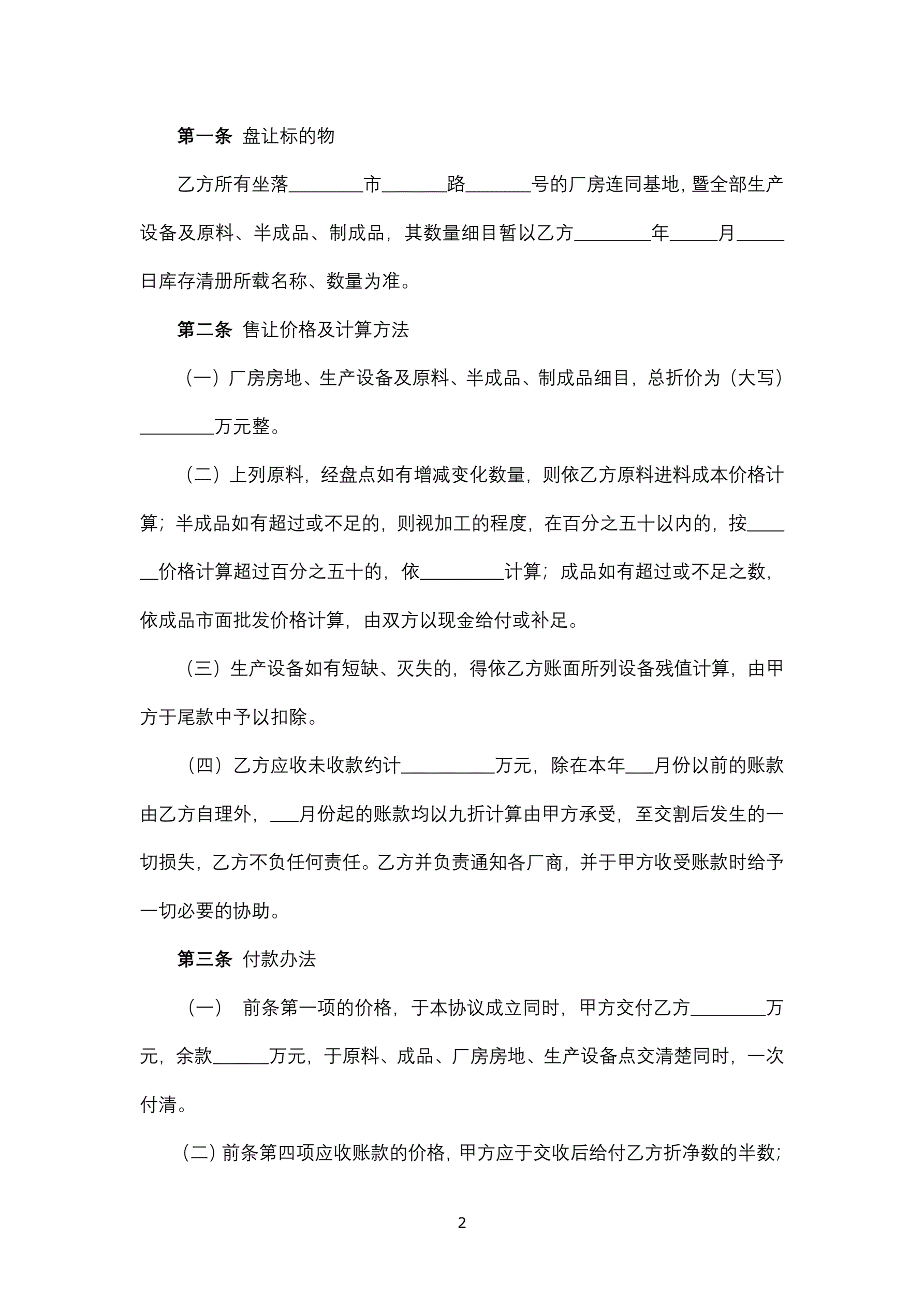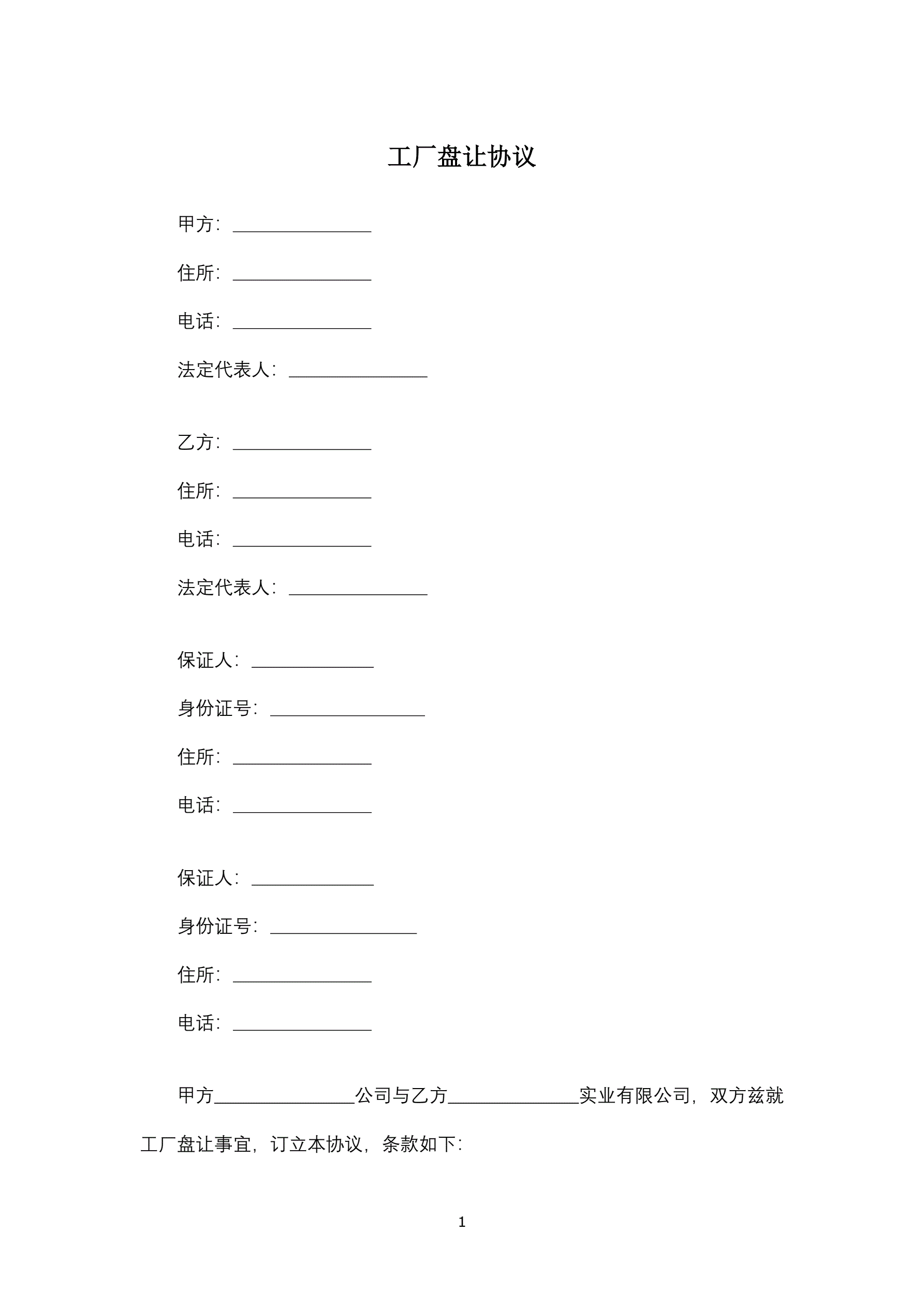>工厂盘让协议