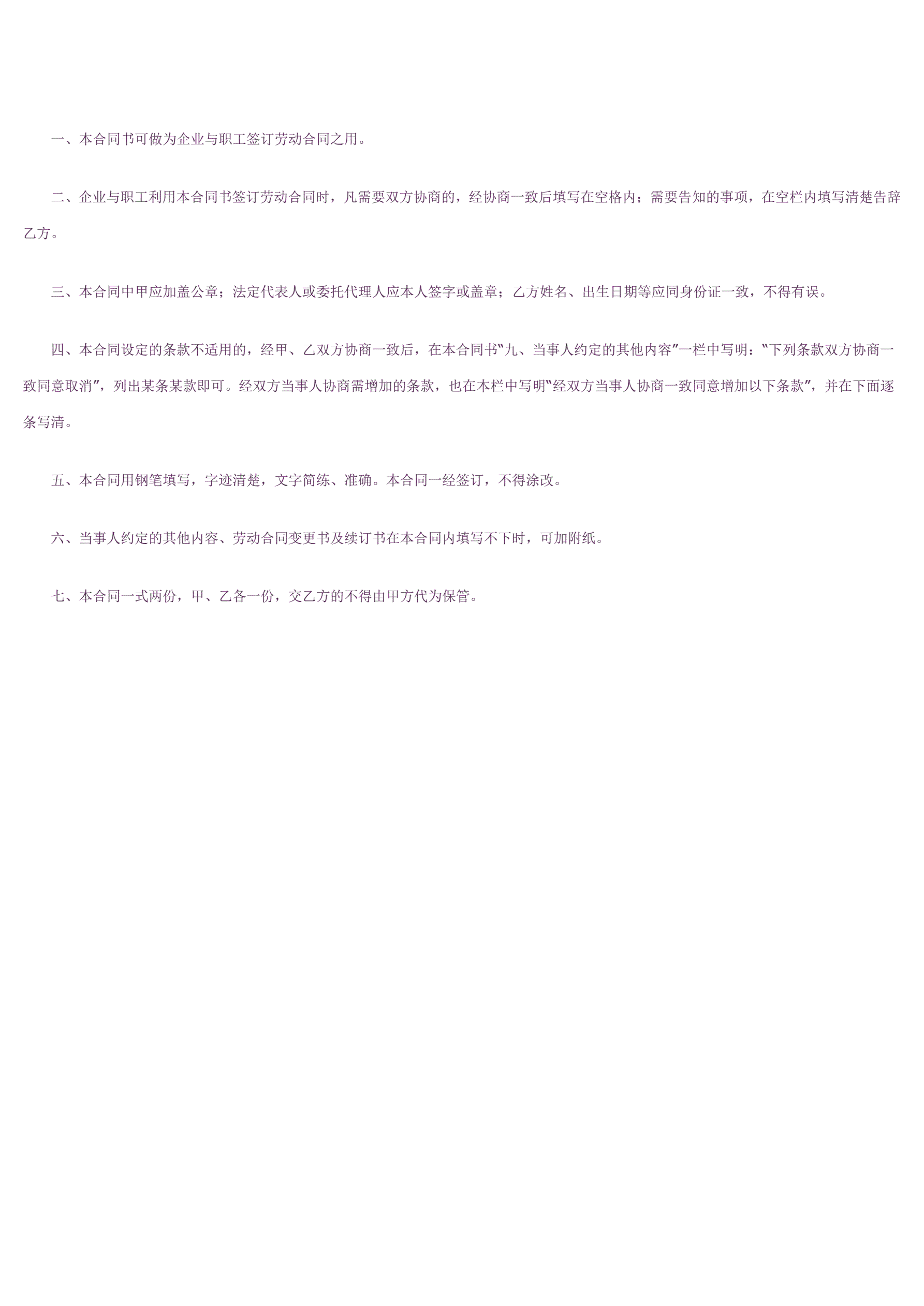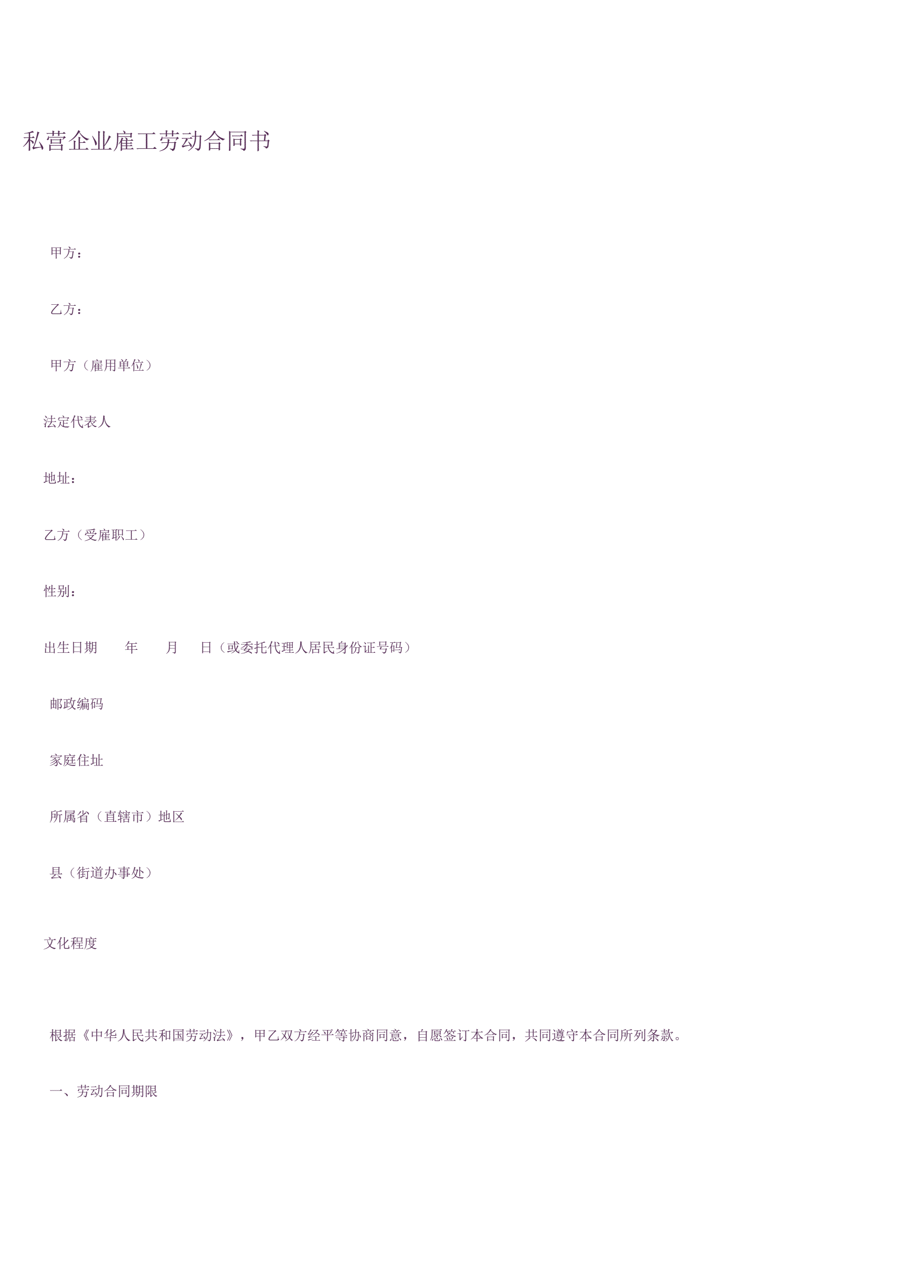 >私企雇工劳动合同书