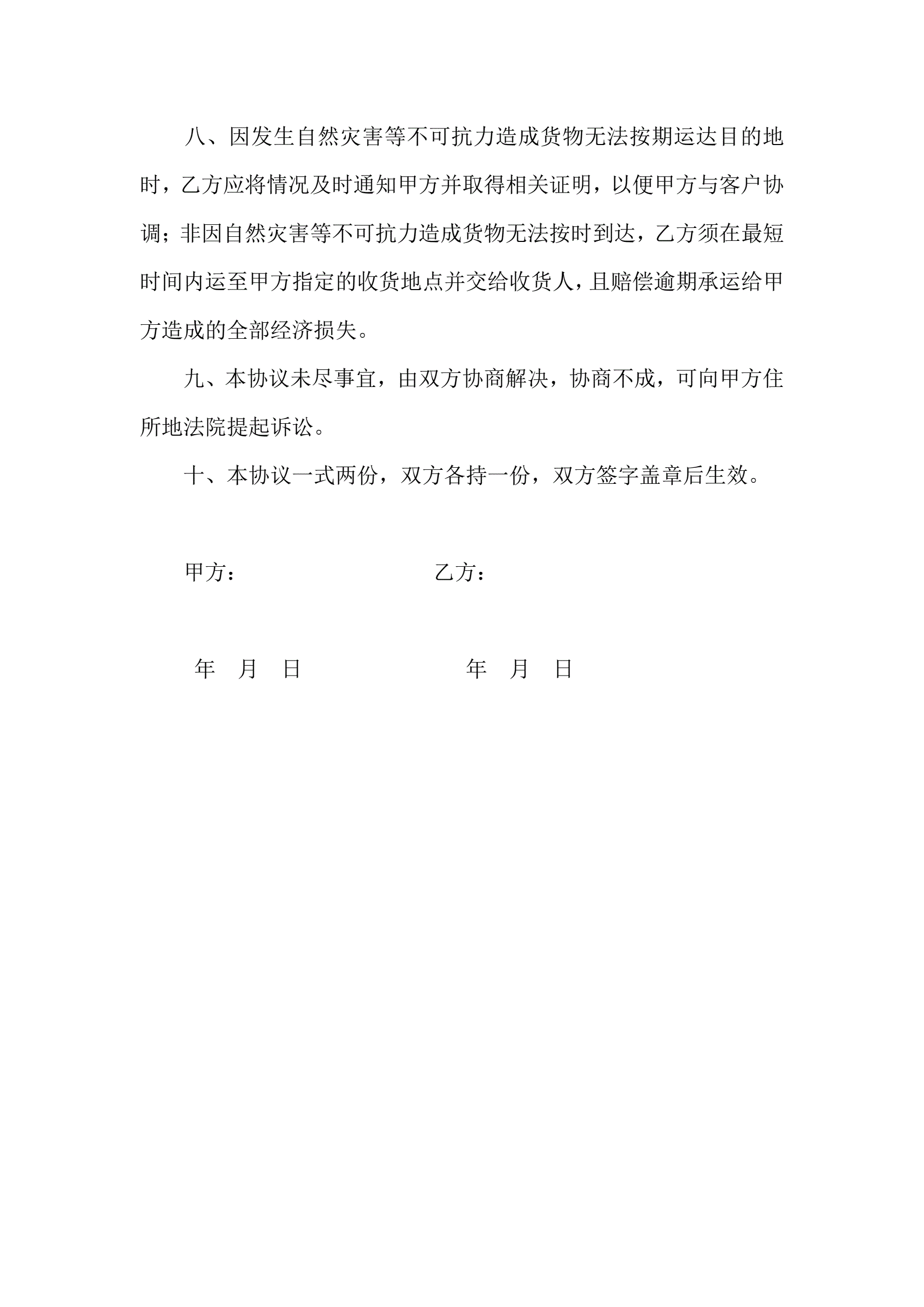 运输承运合同范本