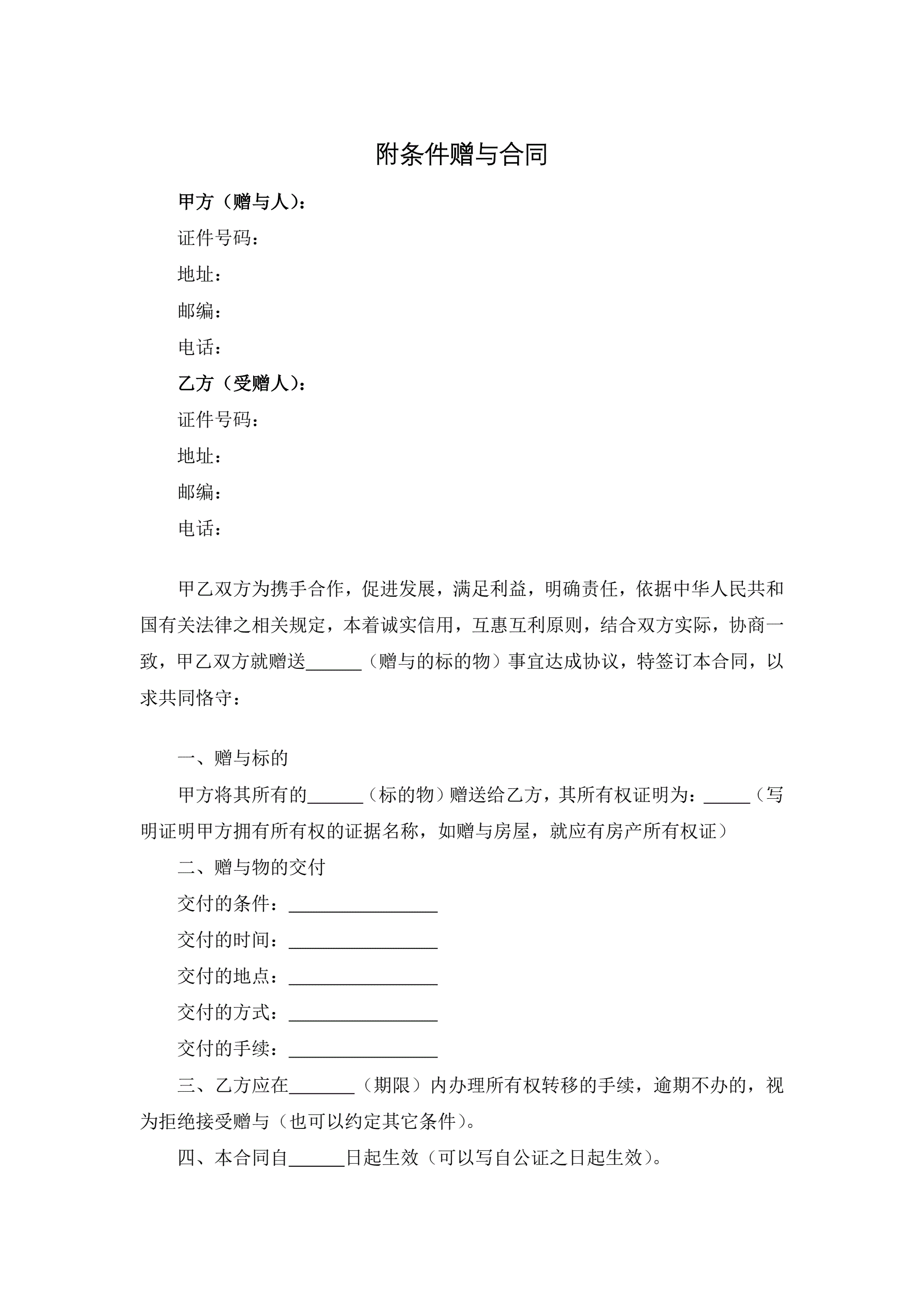 >附条件赠与合同