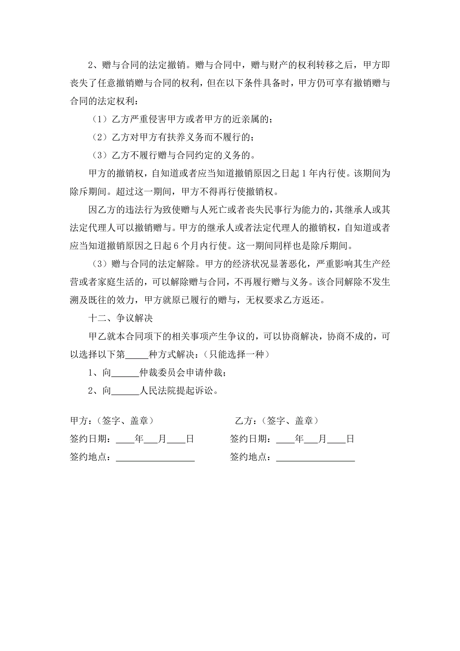 附条件赠与合同