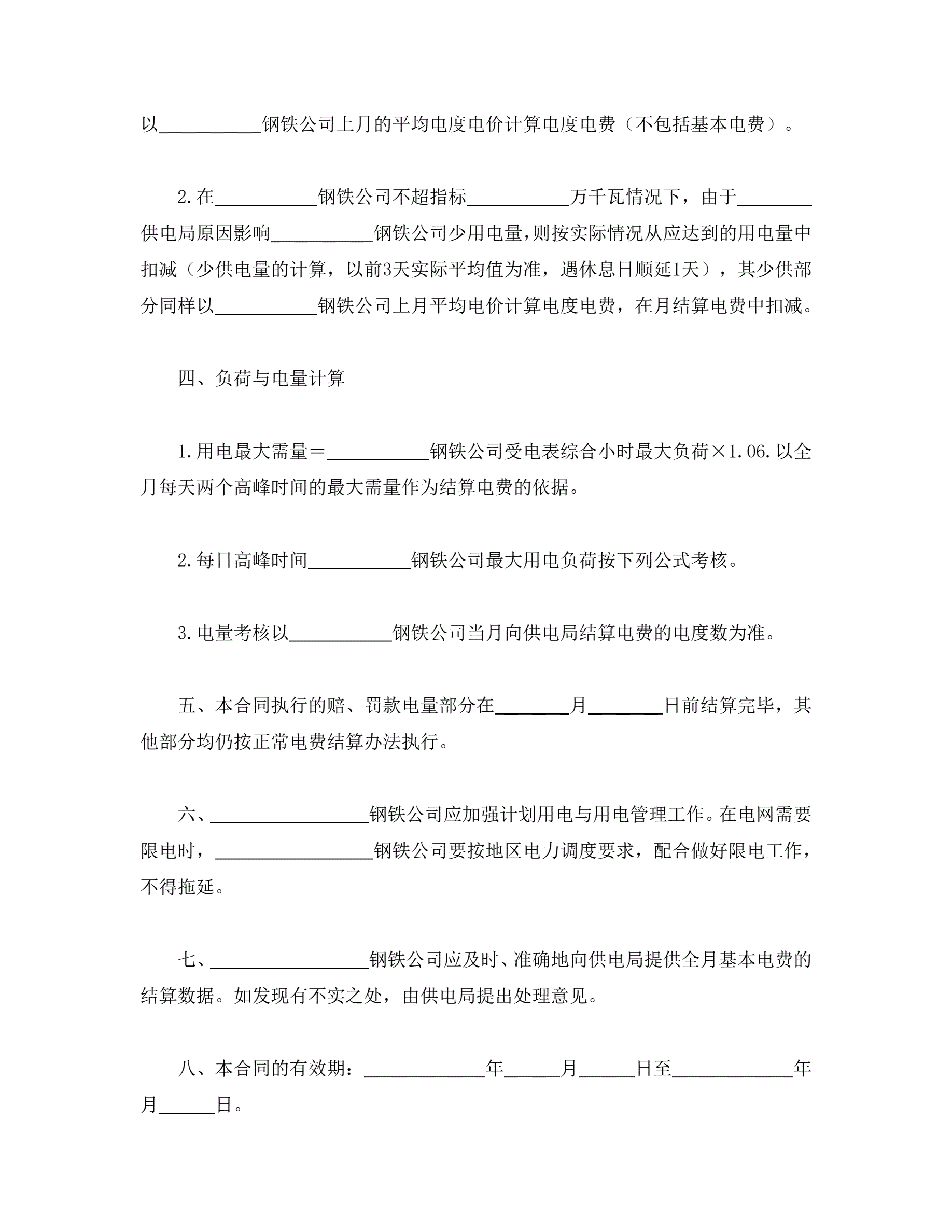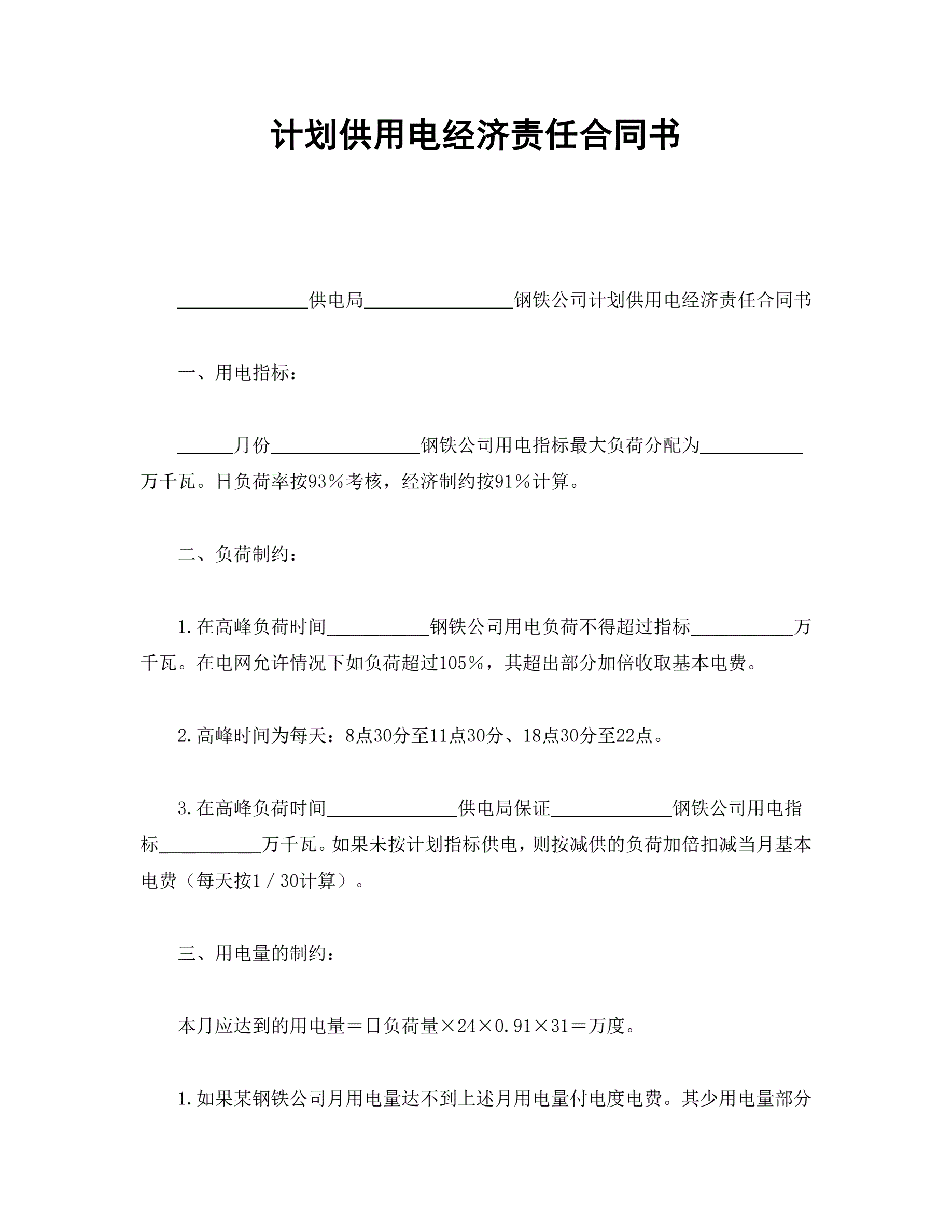 >计划供用电经济责任合同书