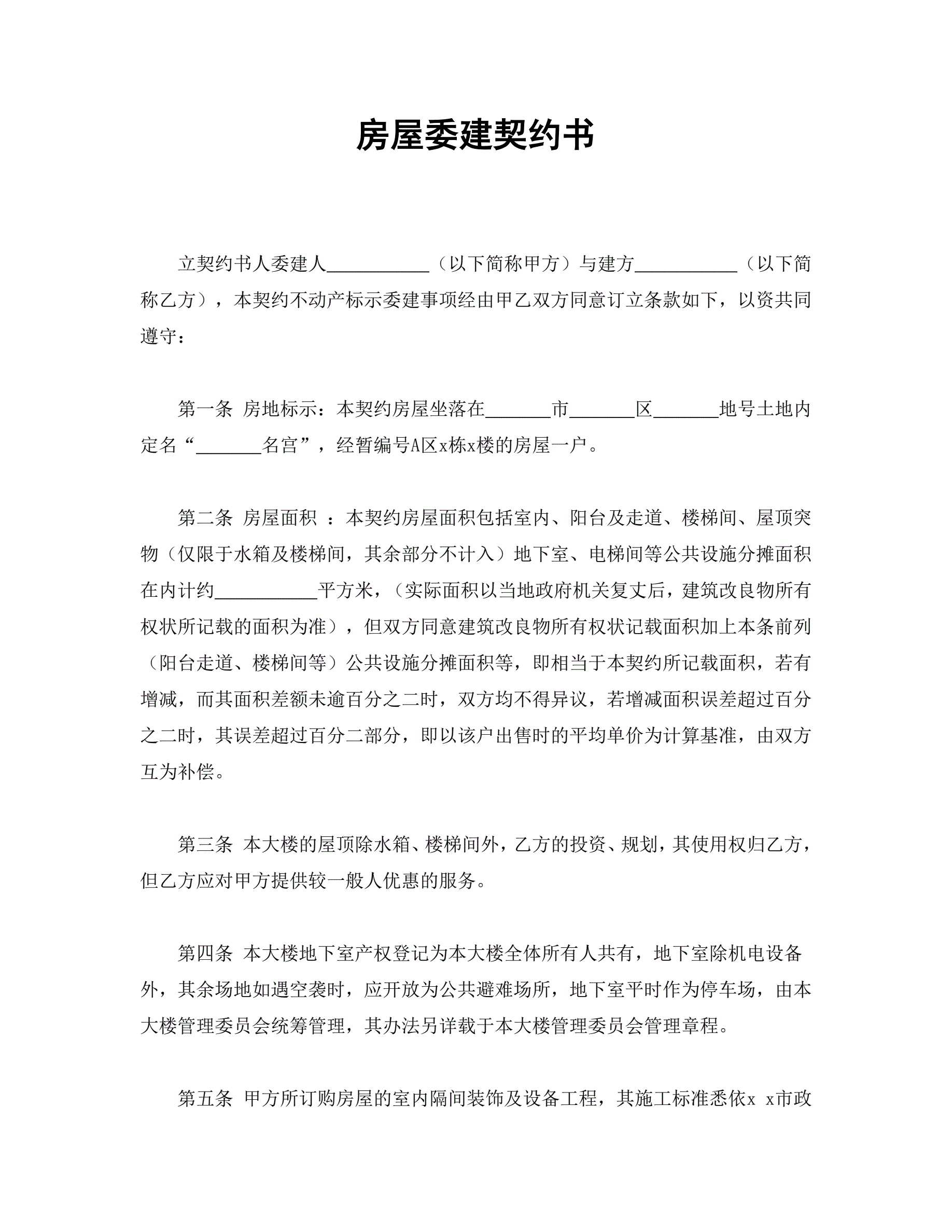 合同名称:房屋委建契约书