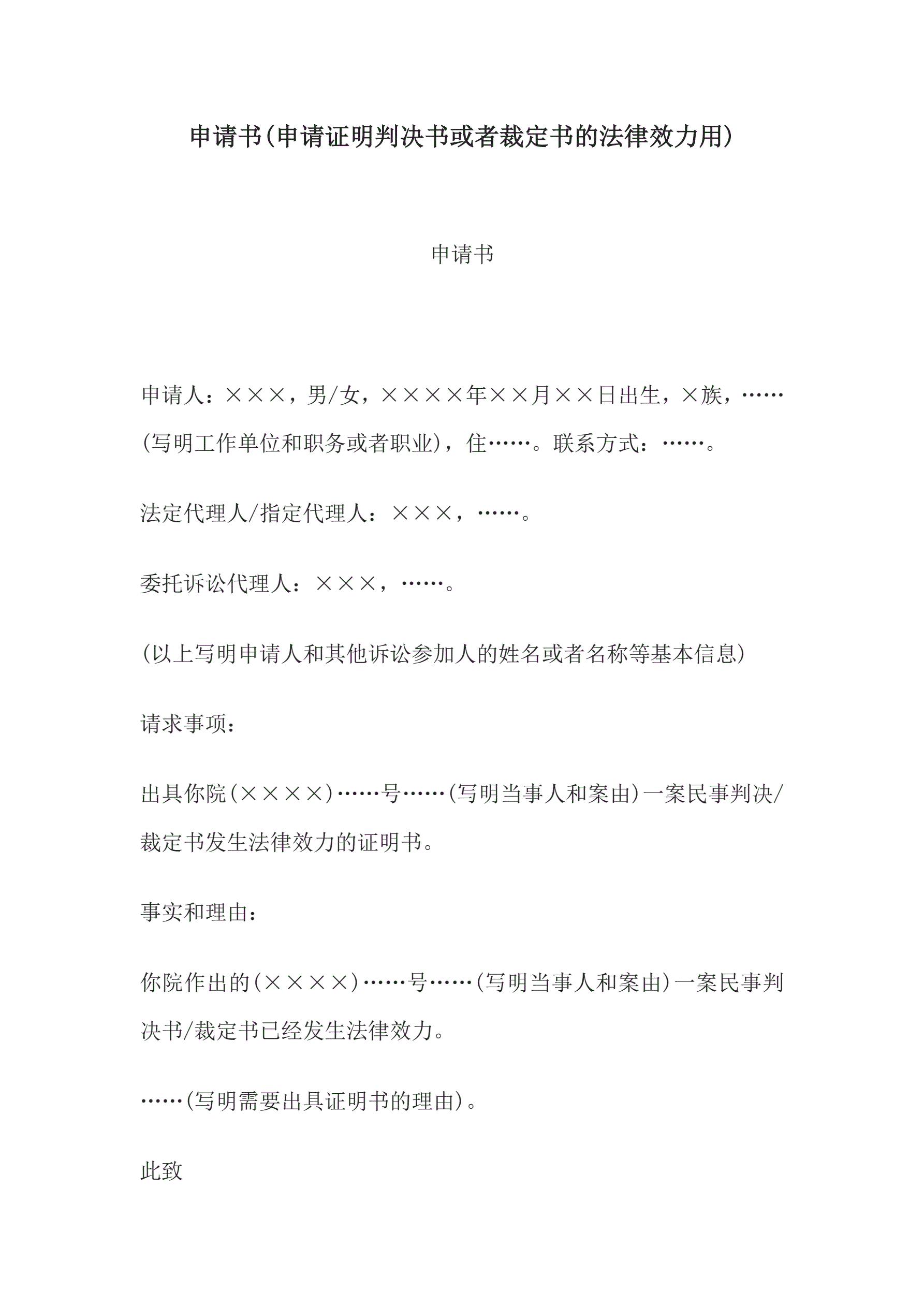 >申请书(申请证明判决书或者裁定书的法律效力用)