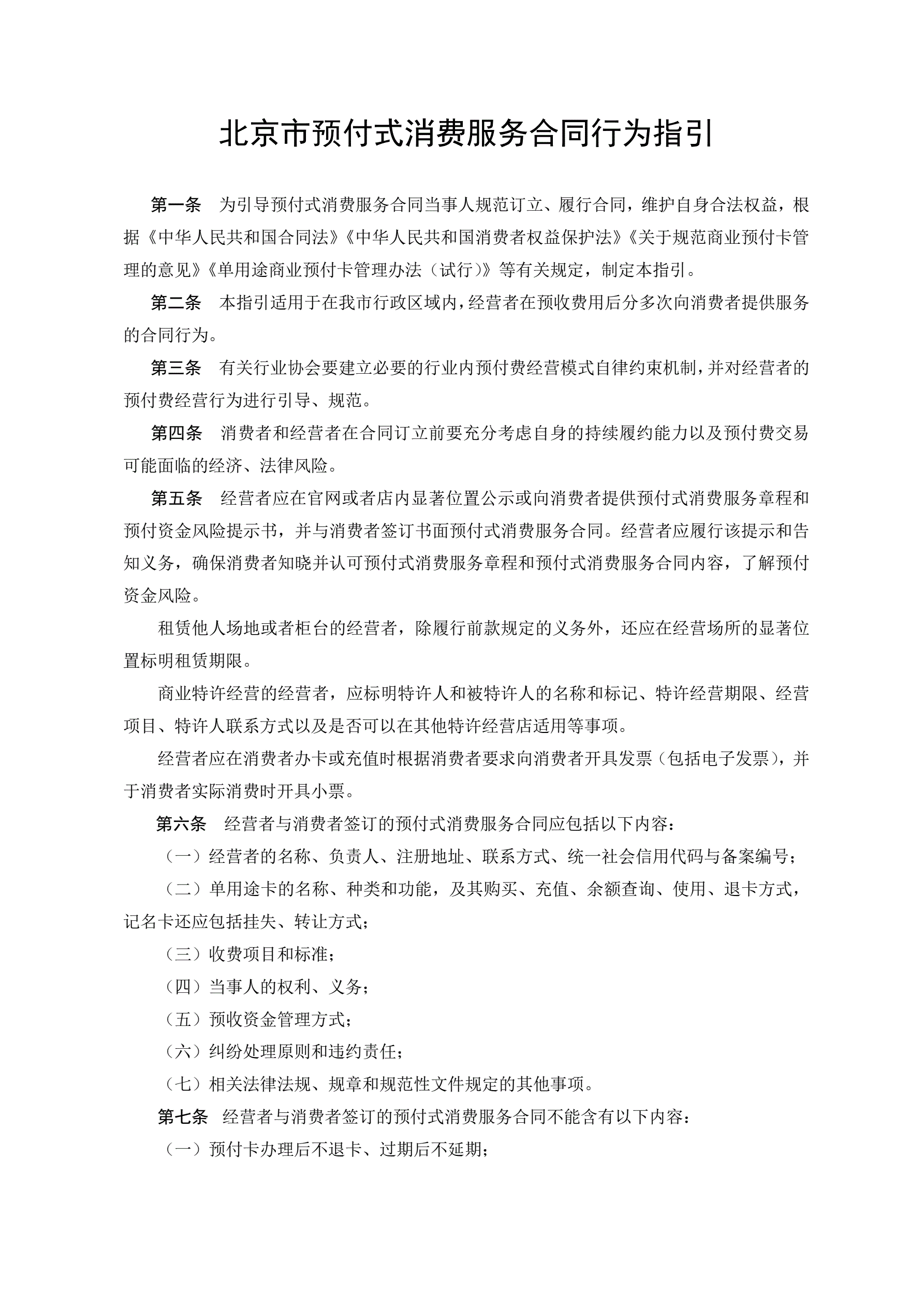 合同名称:北京市预付式消费服务合同行为指引(2020)