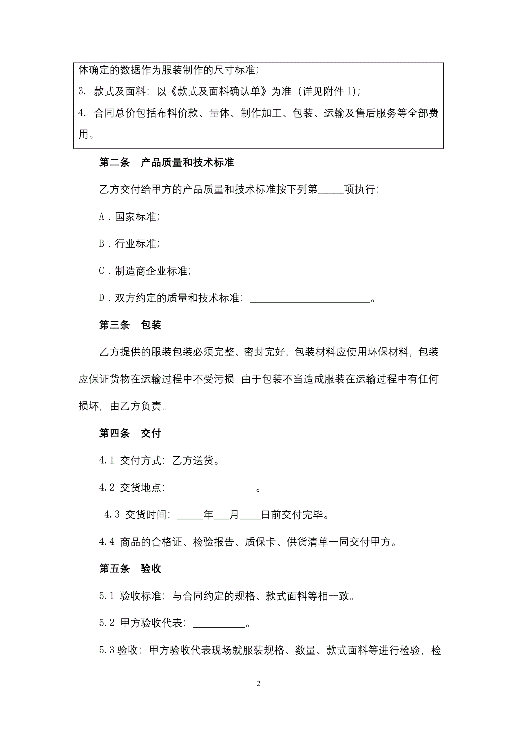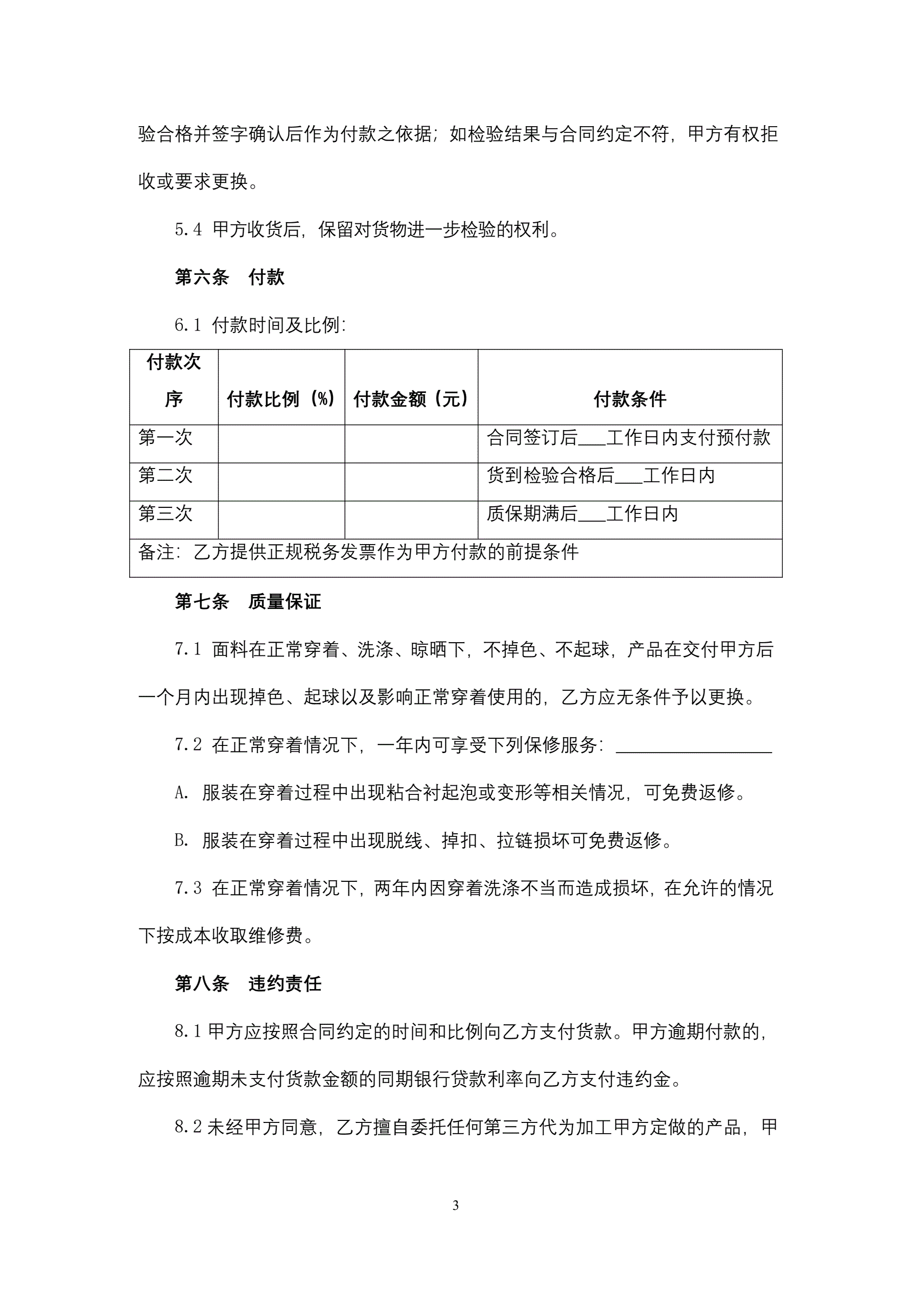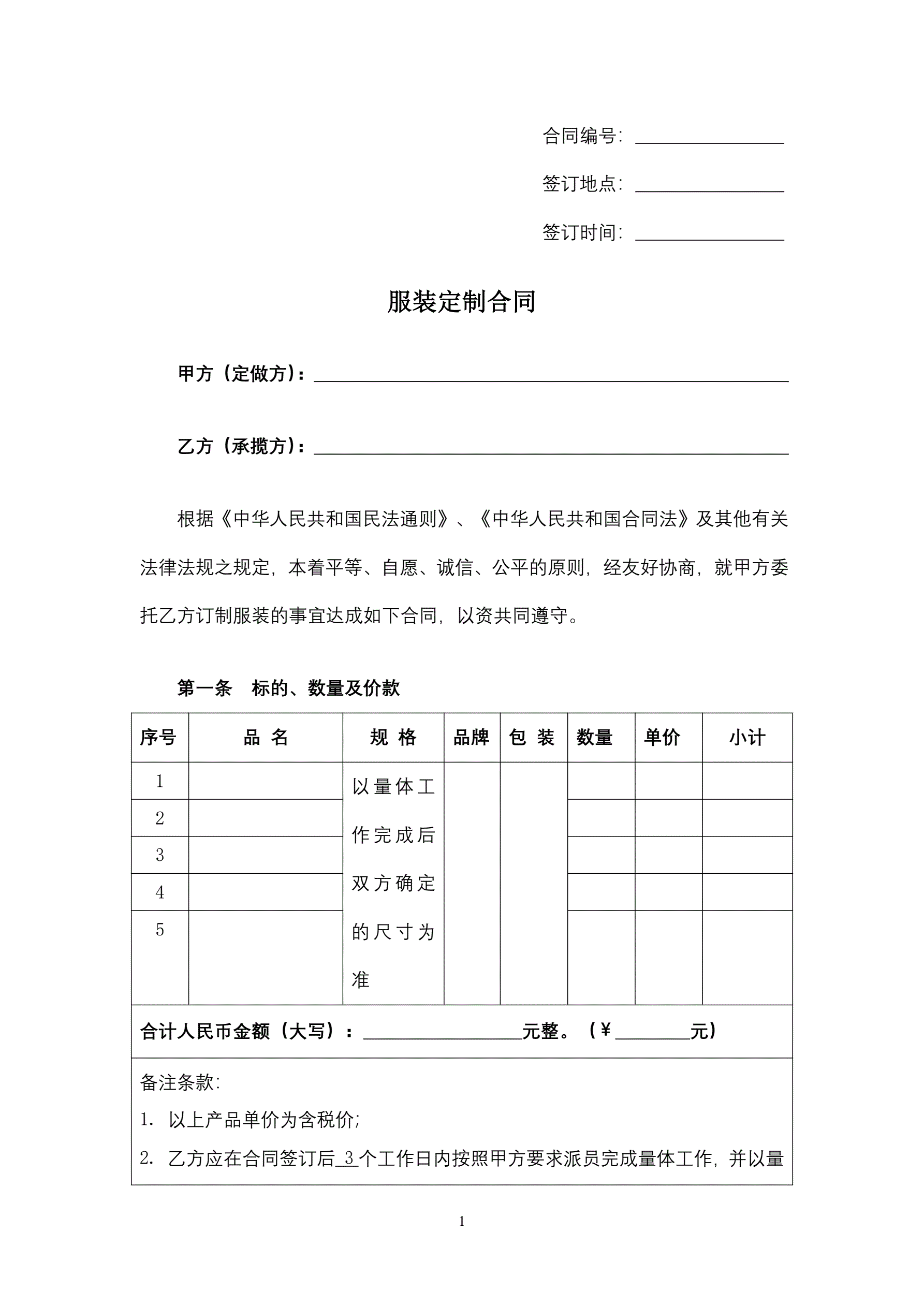 服装定制合同