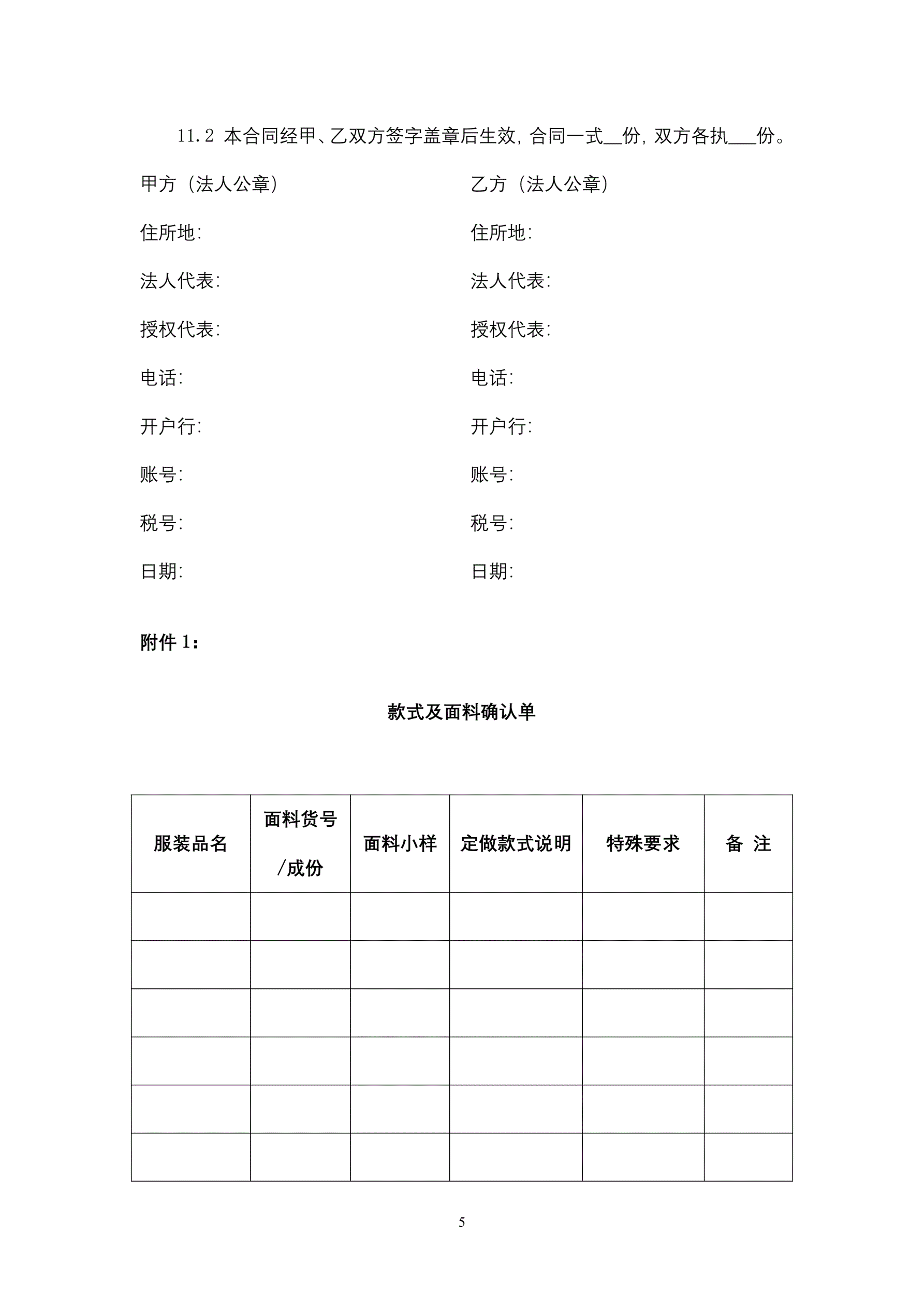 >服装定制合同