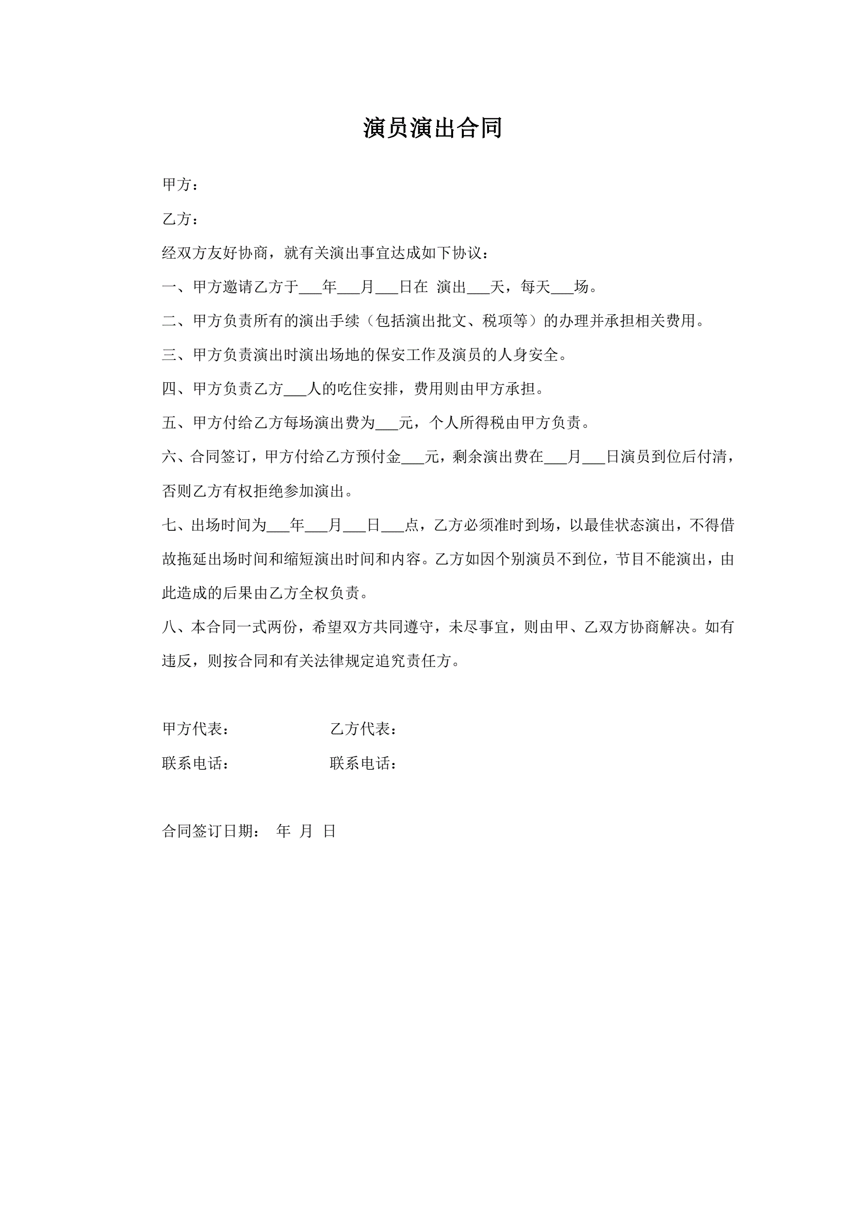 演员演出合同