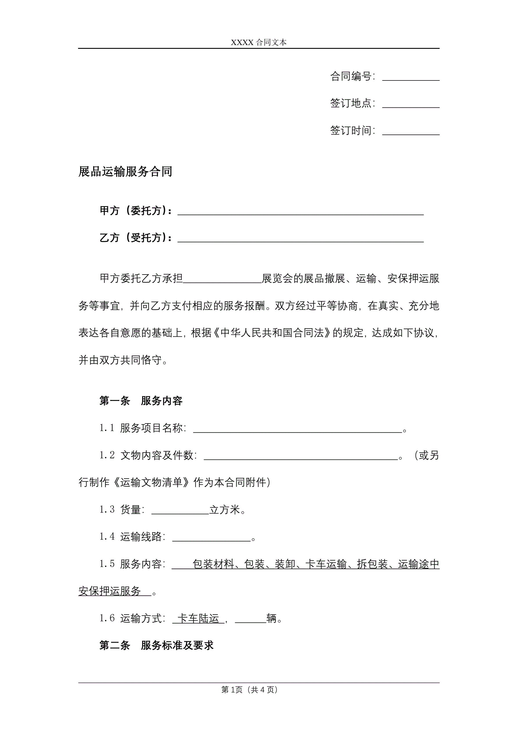 >展品运输服务合同