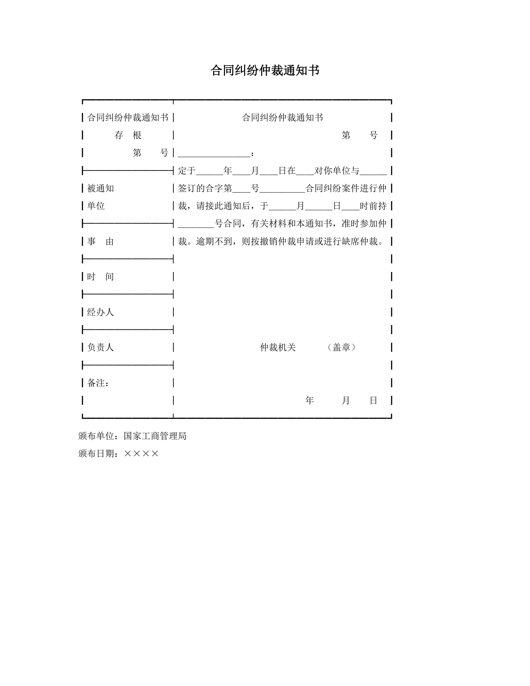 合同纠纷仲裁通知书