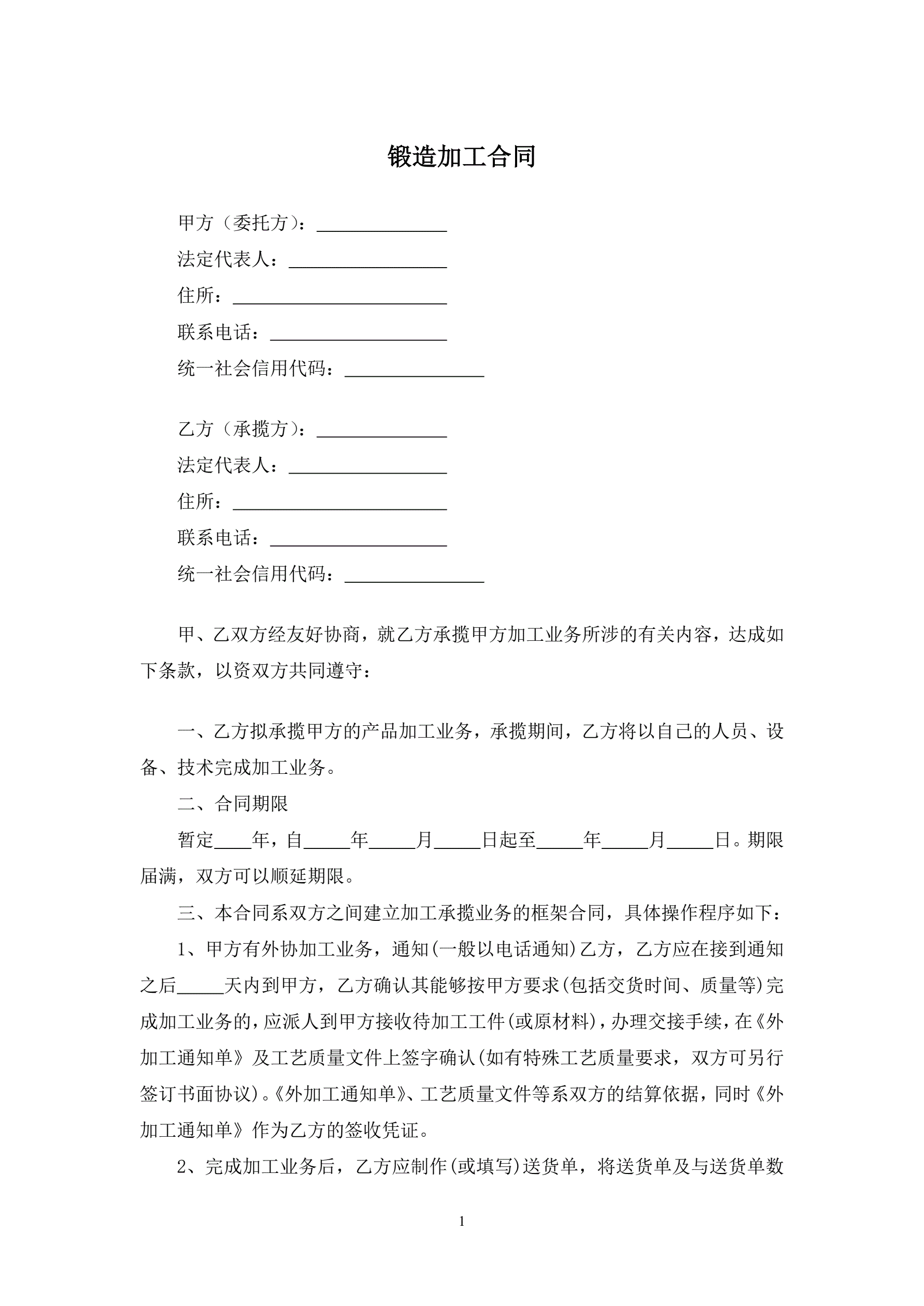>锻造加工合同