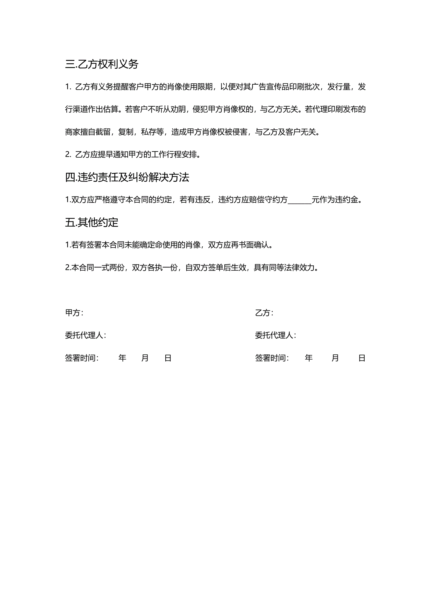 模特版权拍摄合同