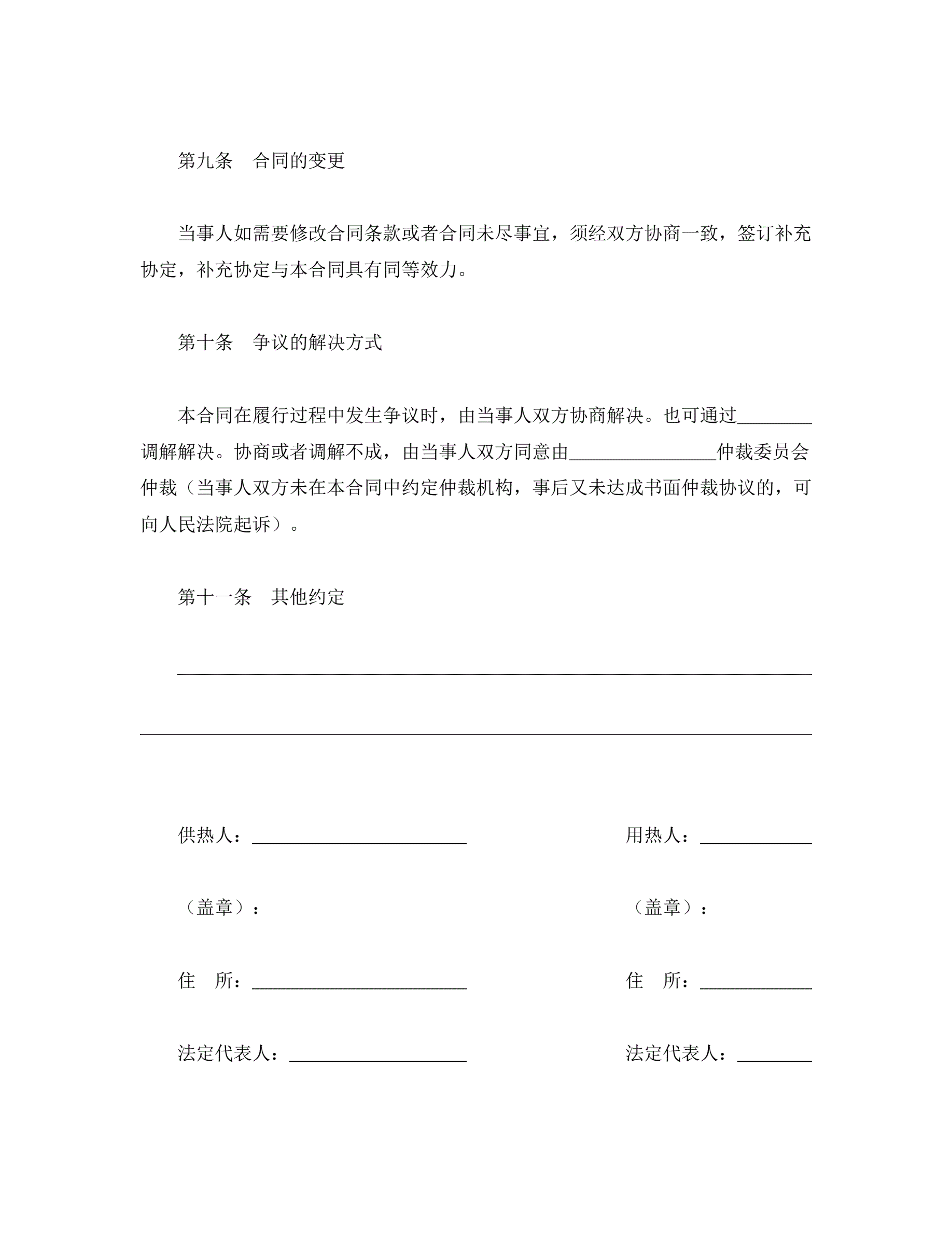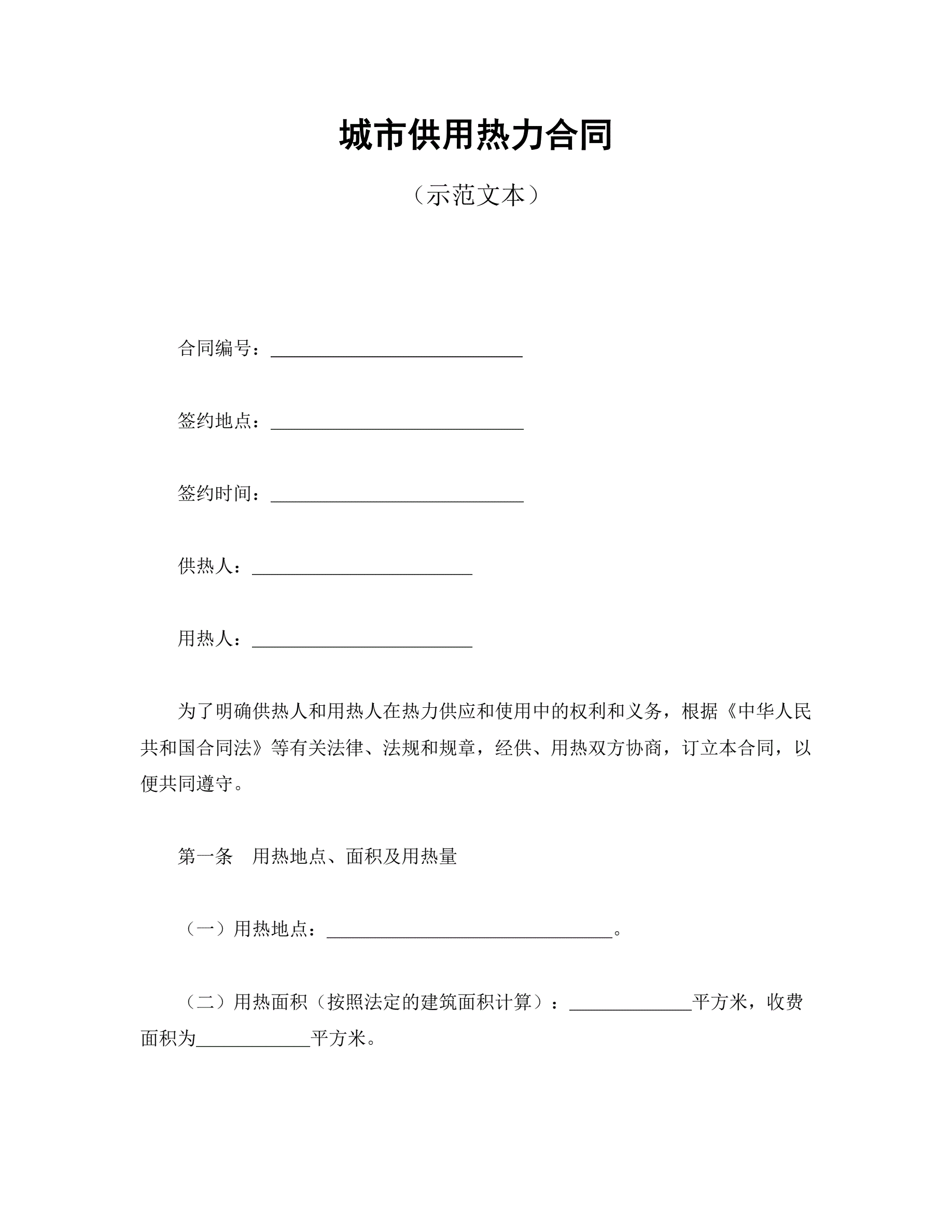 >城市供用热力合同