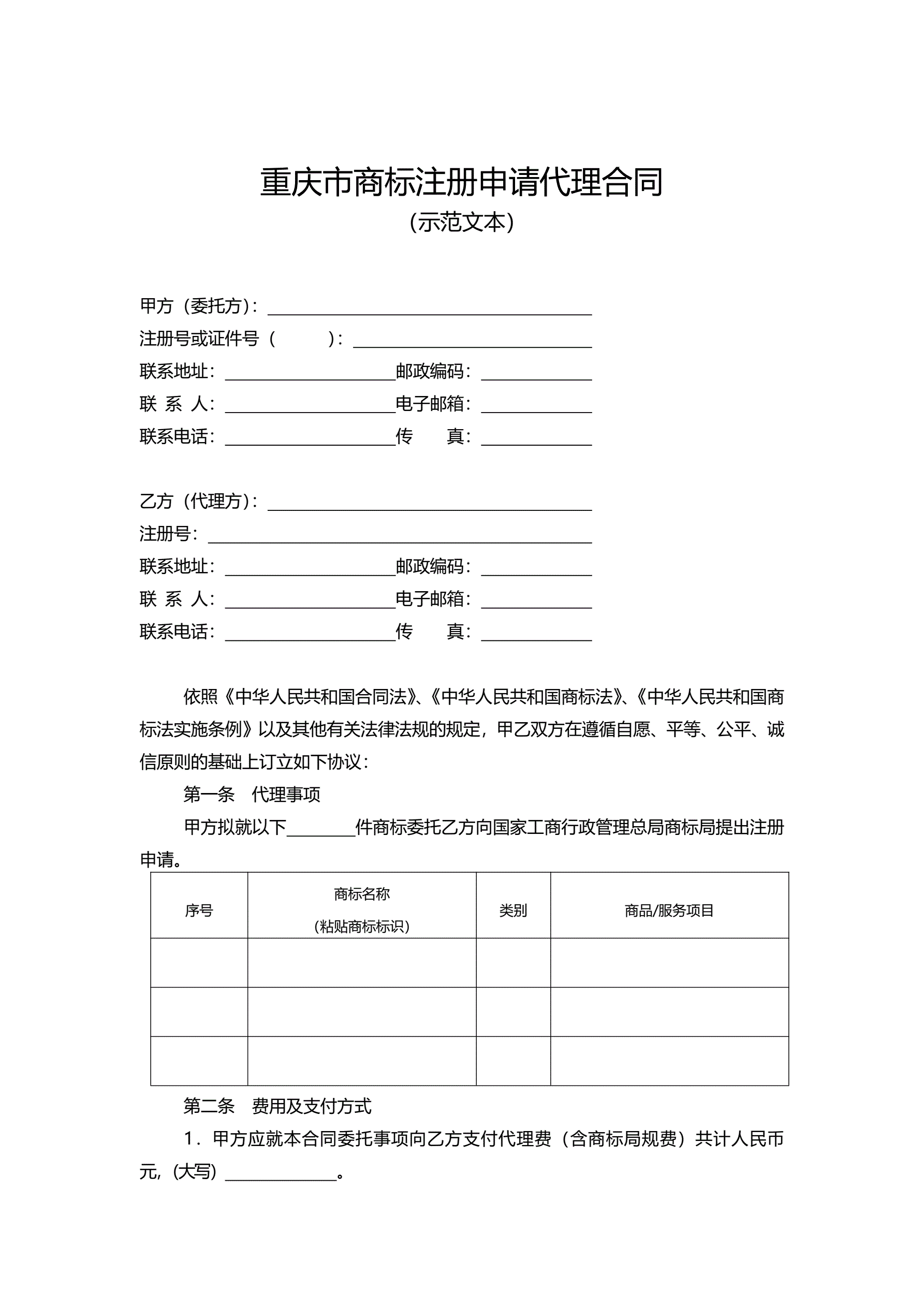 >重庆市商标注册申请代理合同示范文本(2015年版)