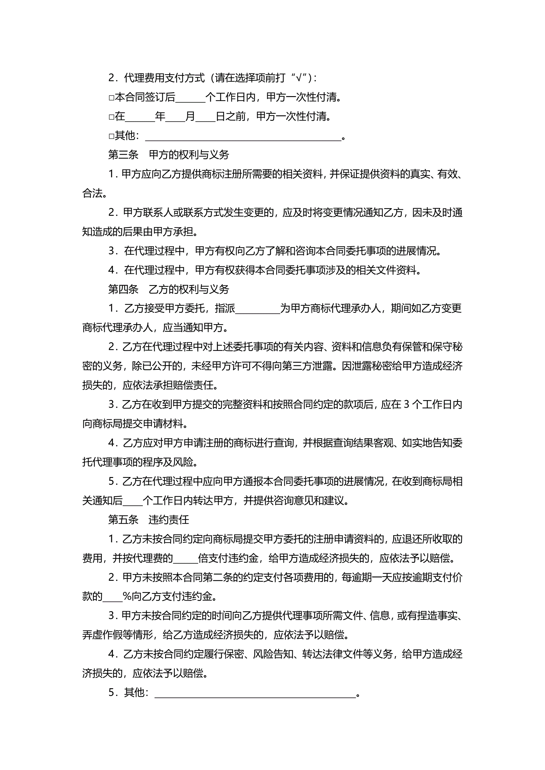 重庆市商标注册申请代理合同示范文本(2015年版)