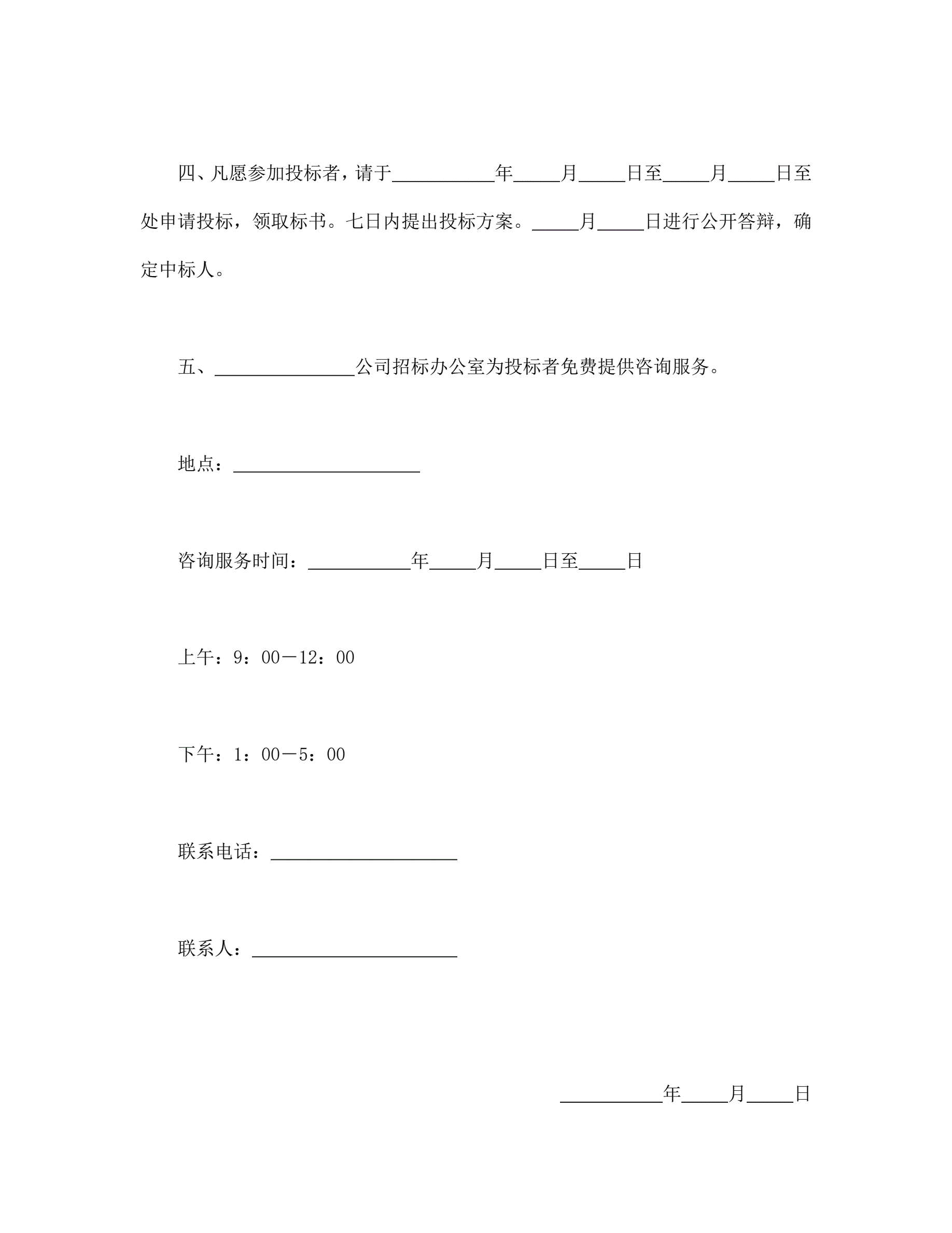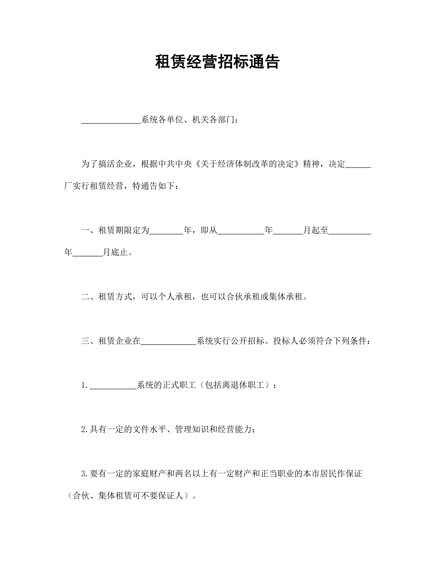 >租赁经营招标通告