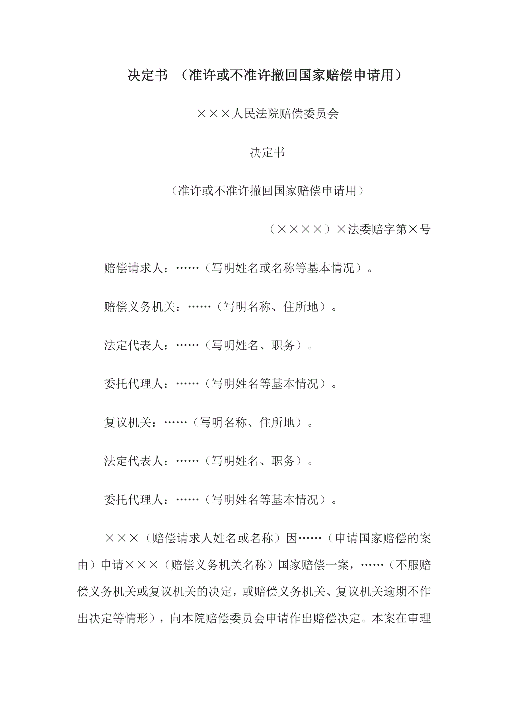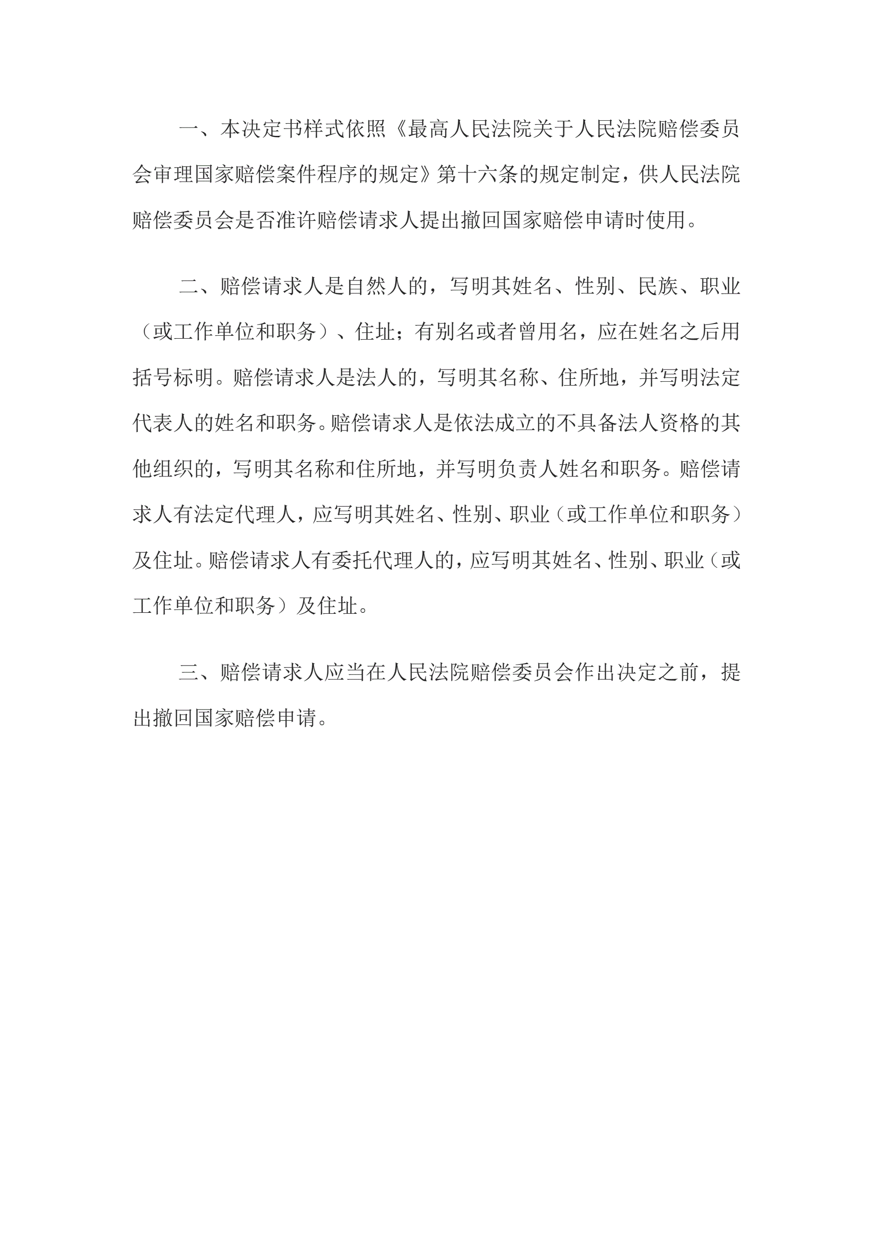>决定书(准许或不准许撤回国家赔偿申请用)