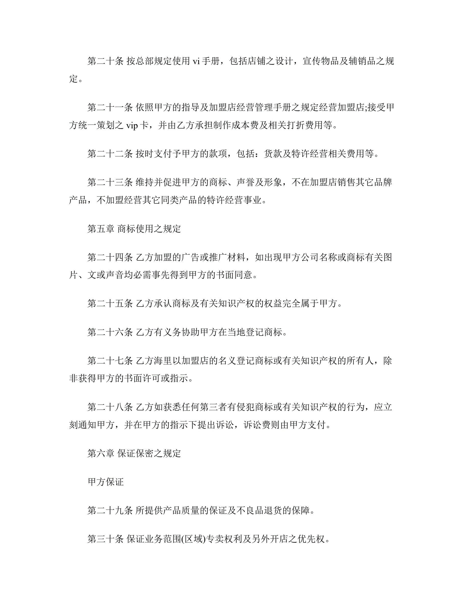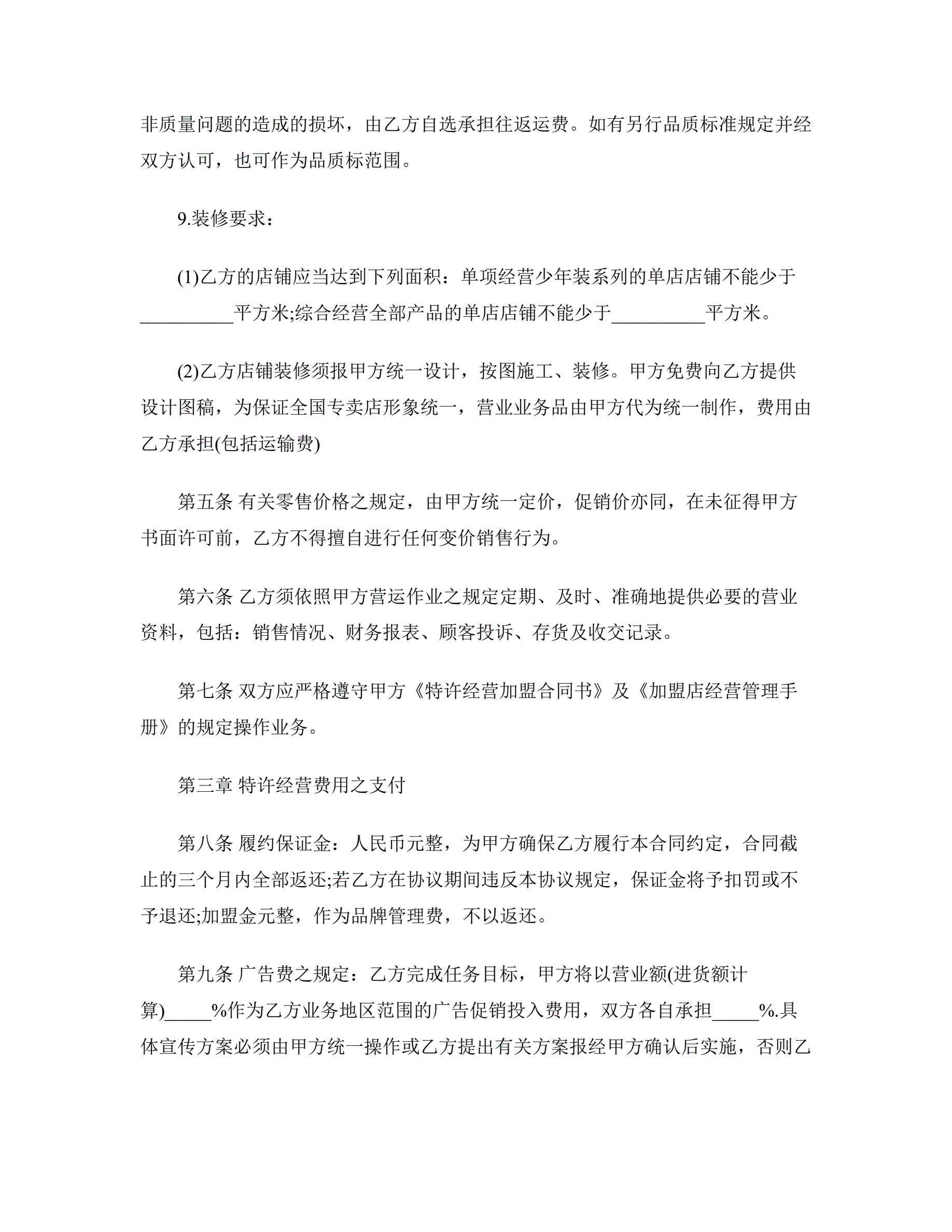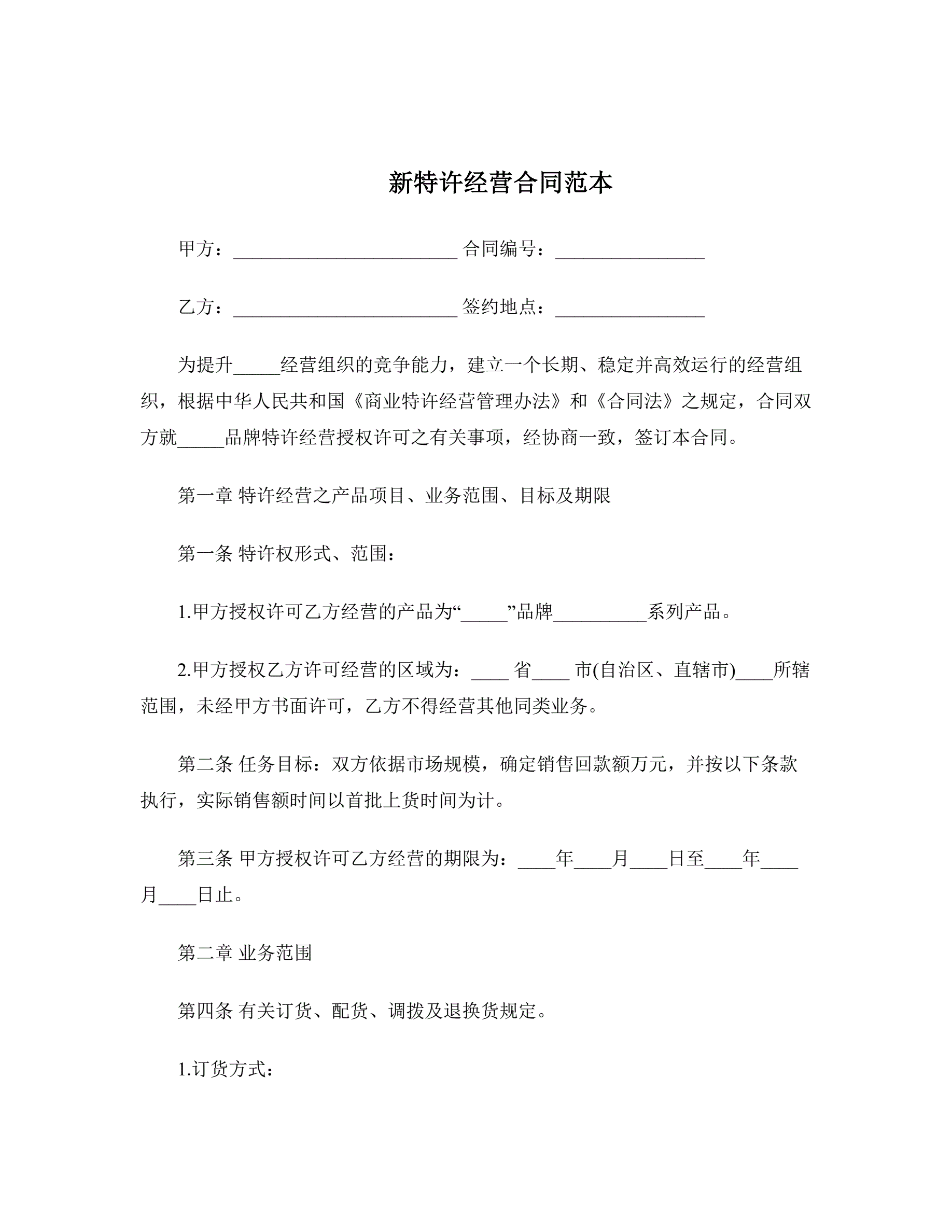 新特许经营合同范本