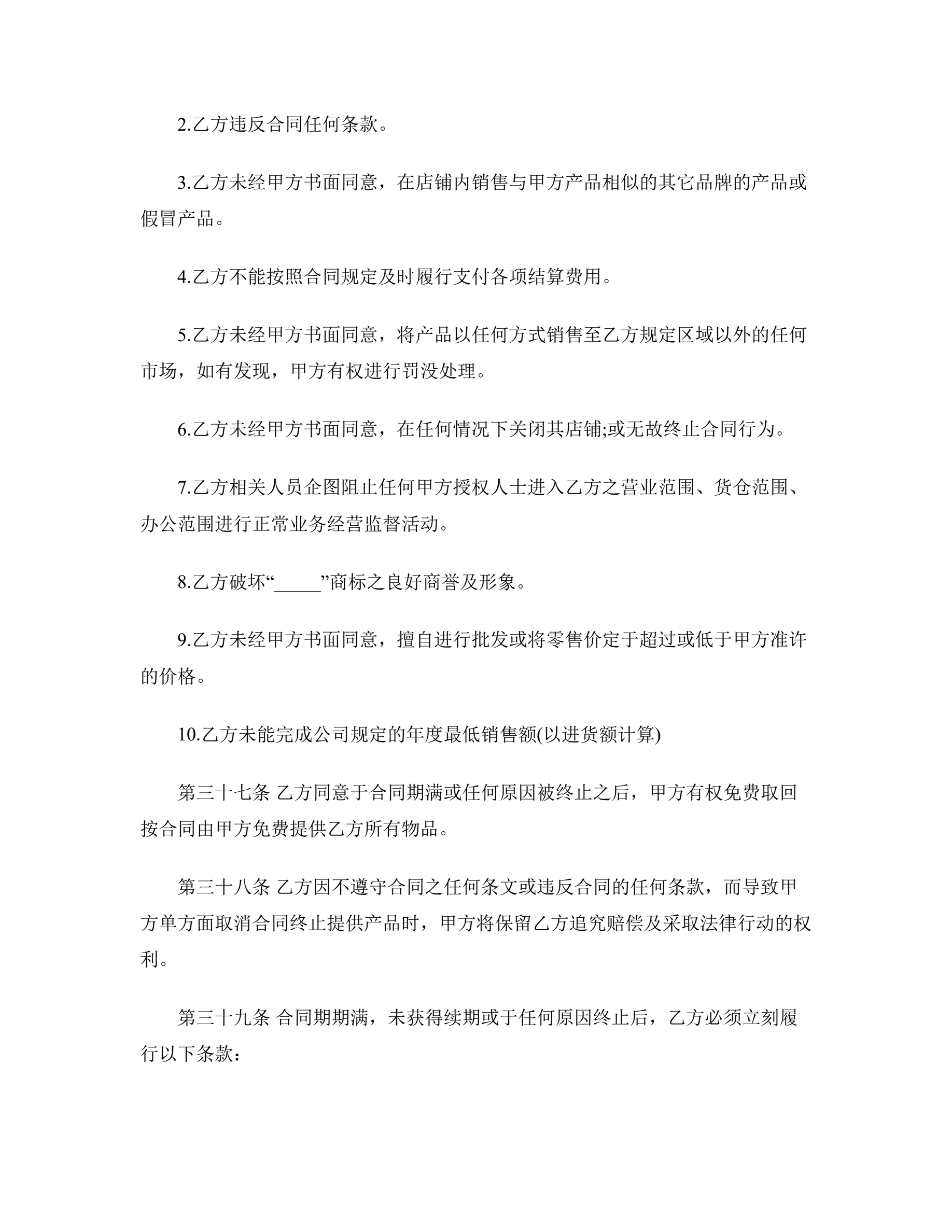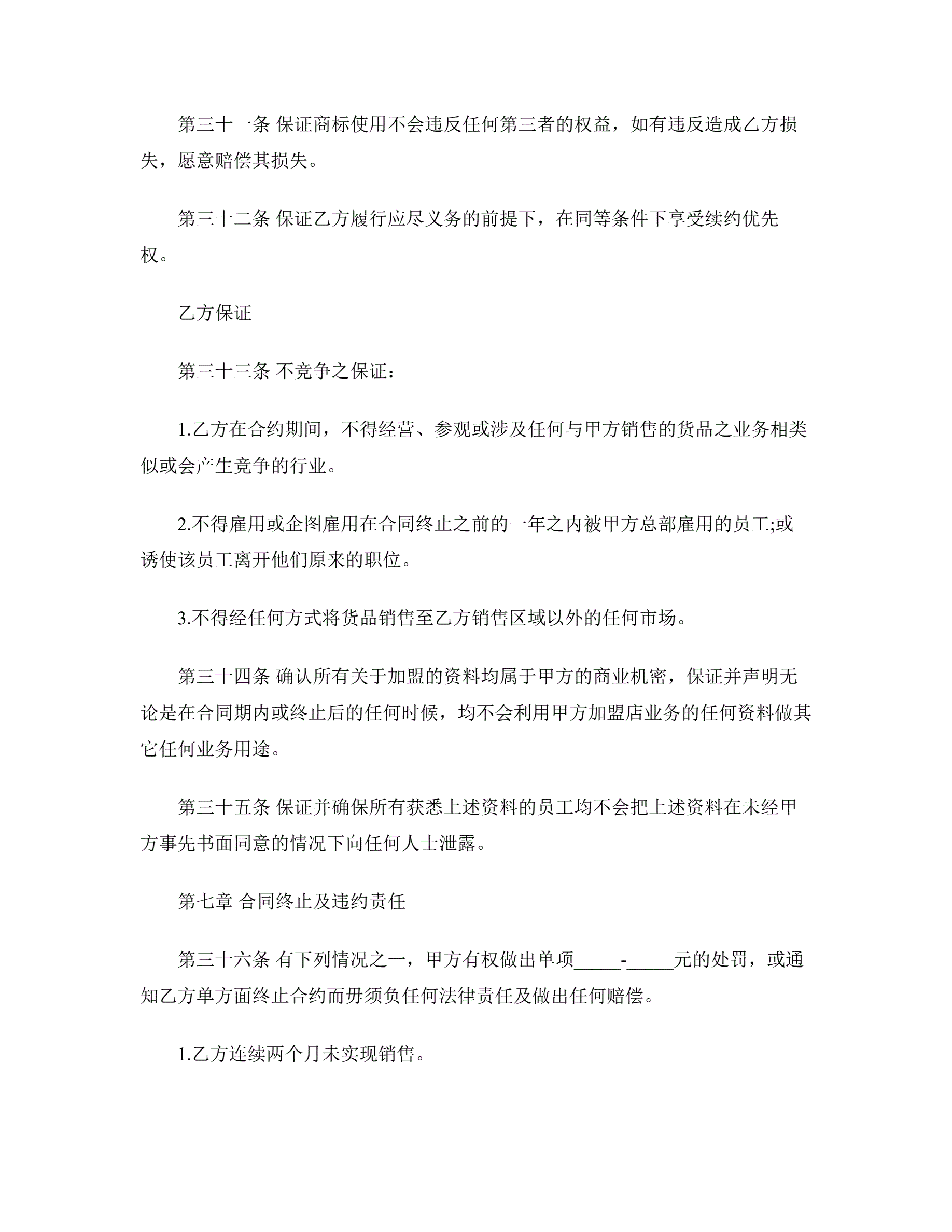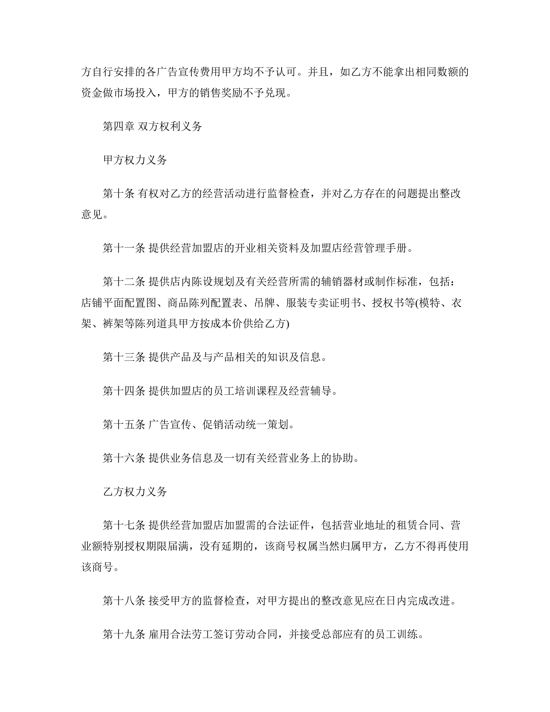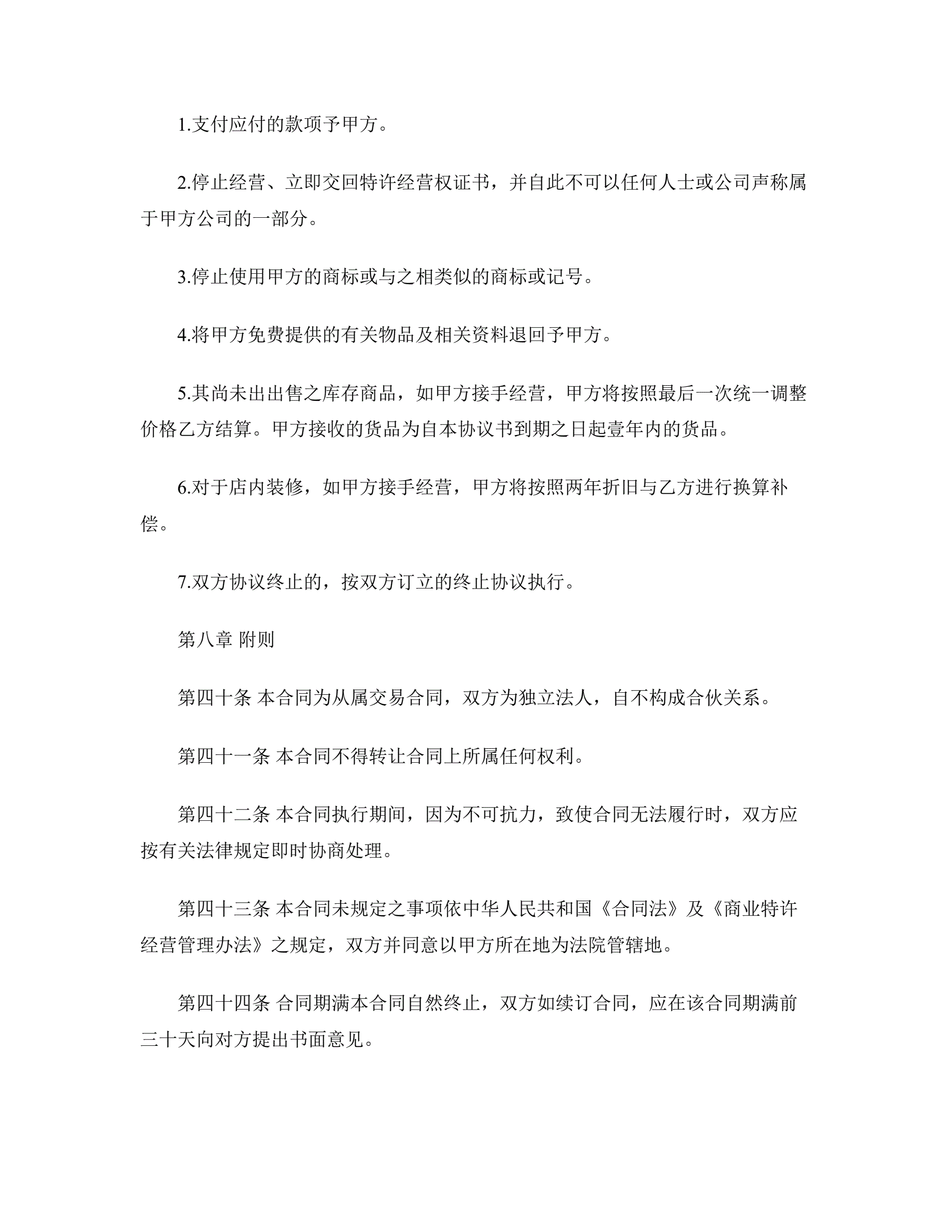 新特许经营合同范本