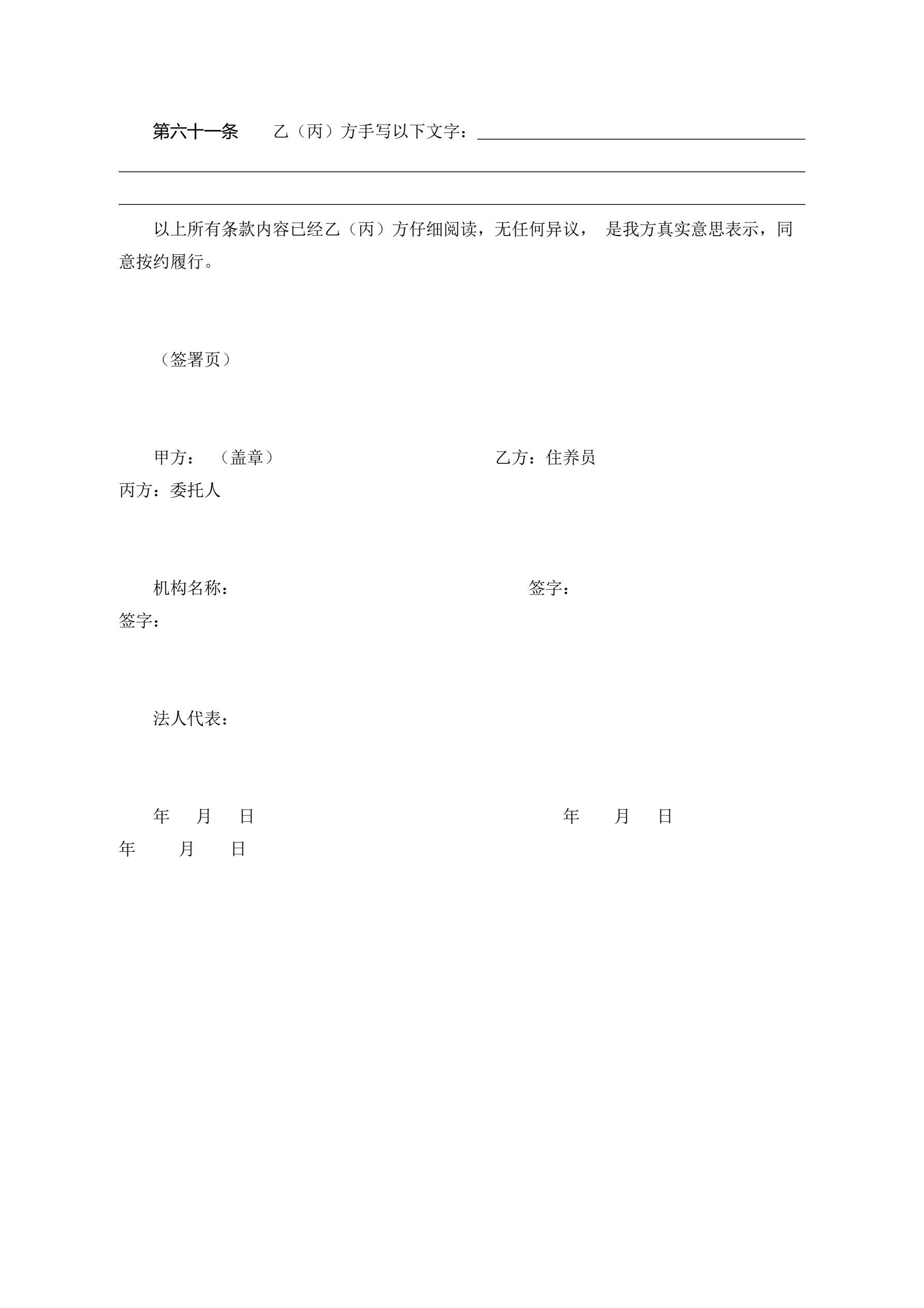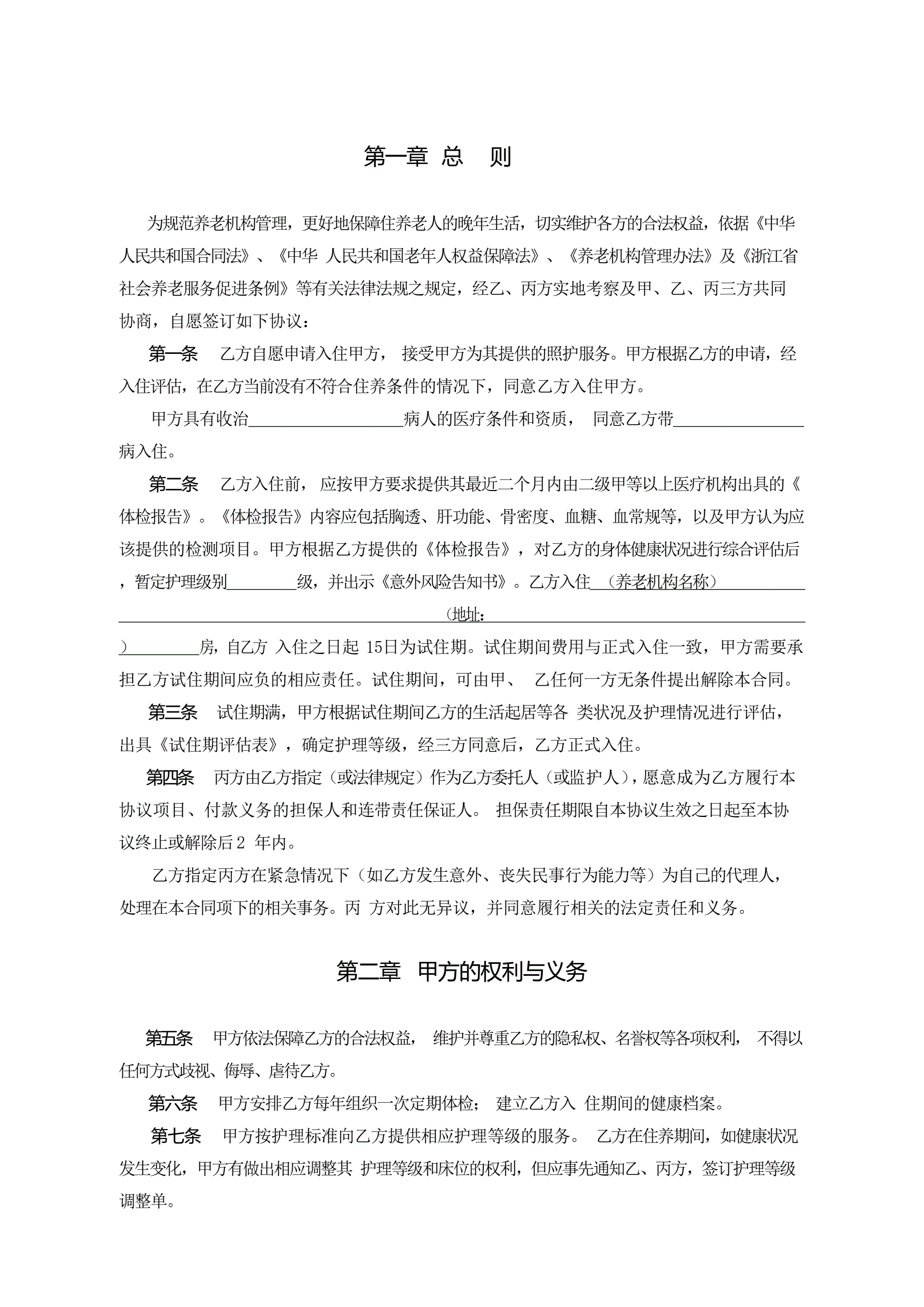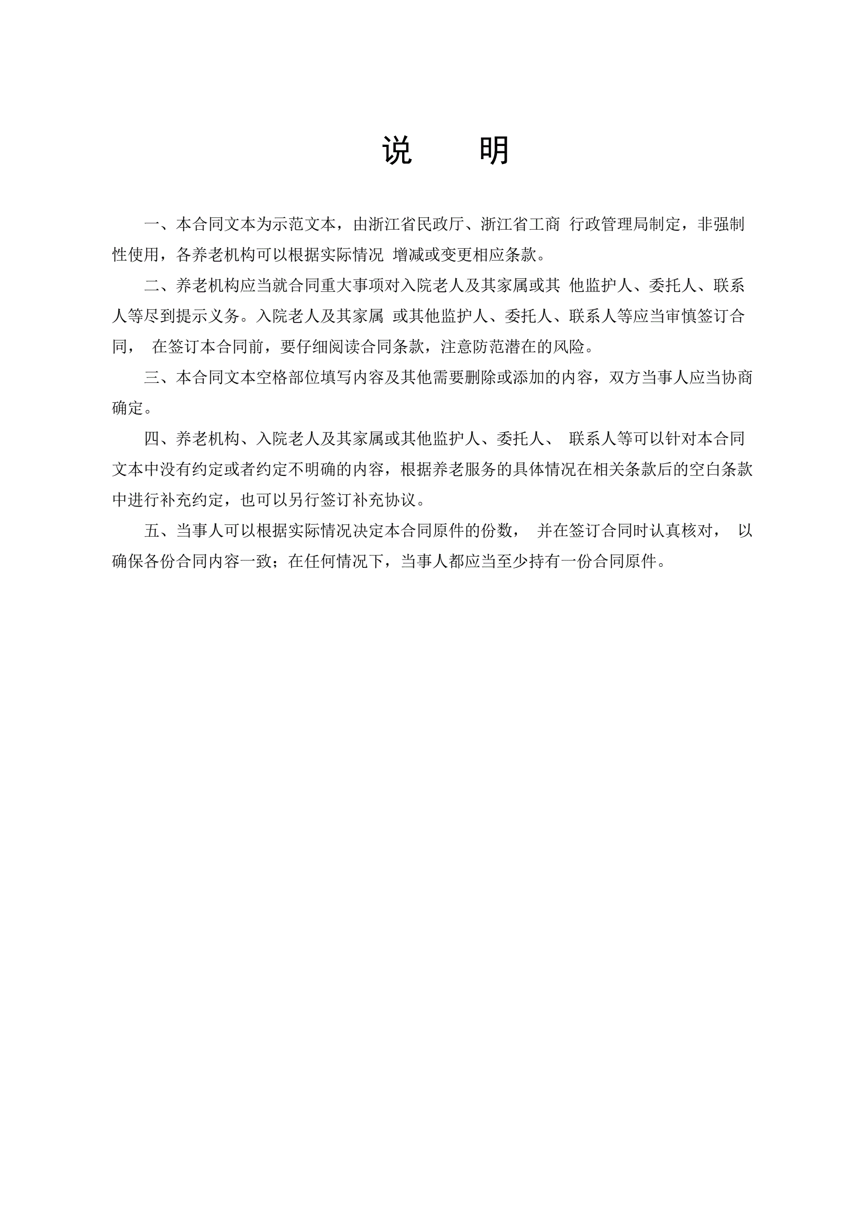 >浙江省养老机构服务合同(示范文本)