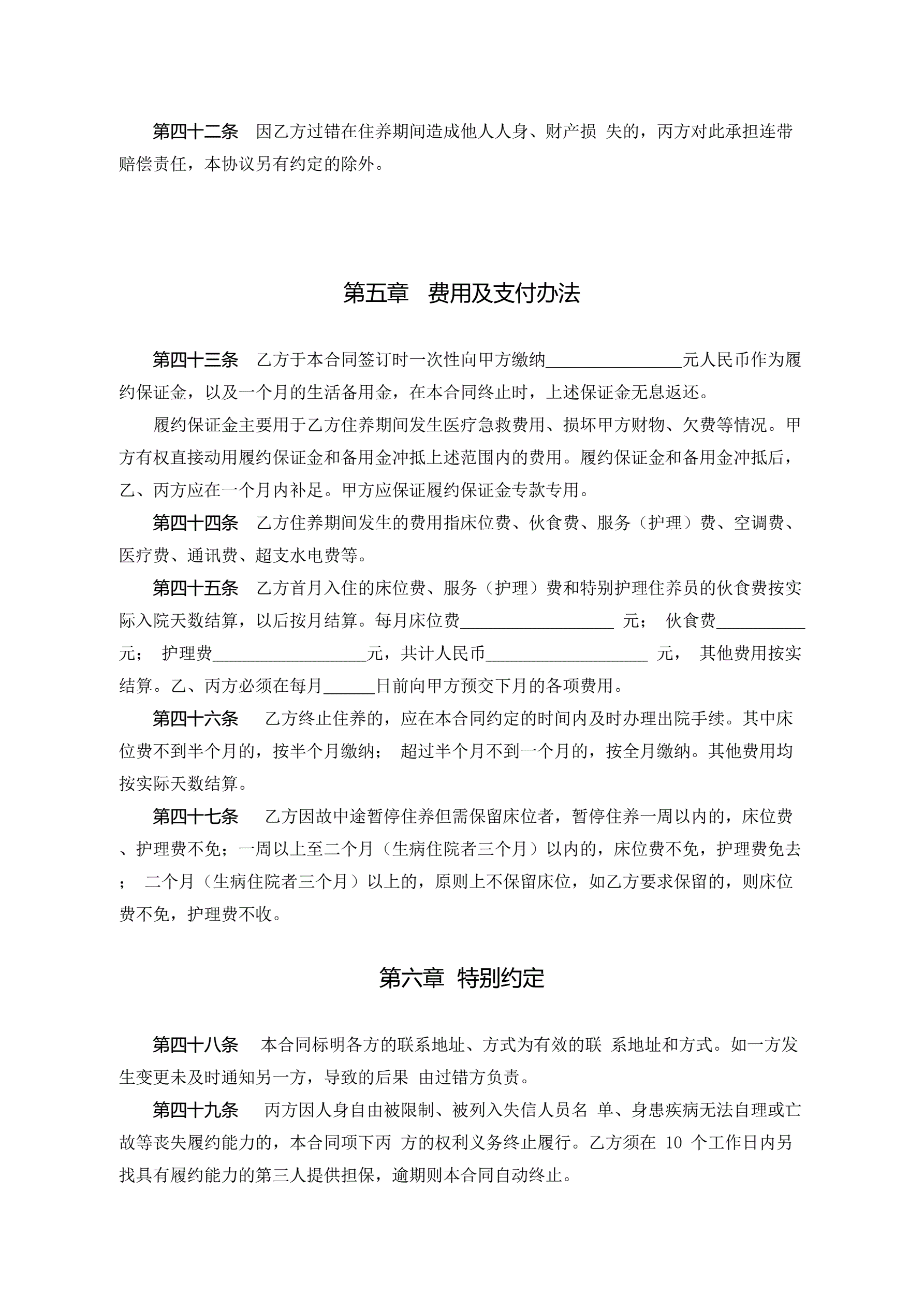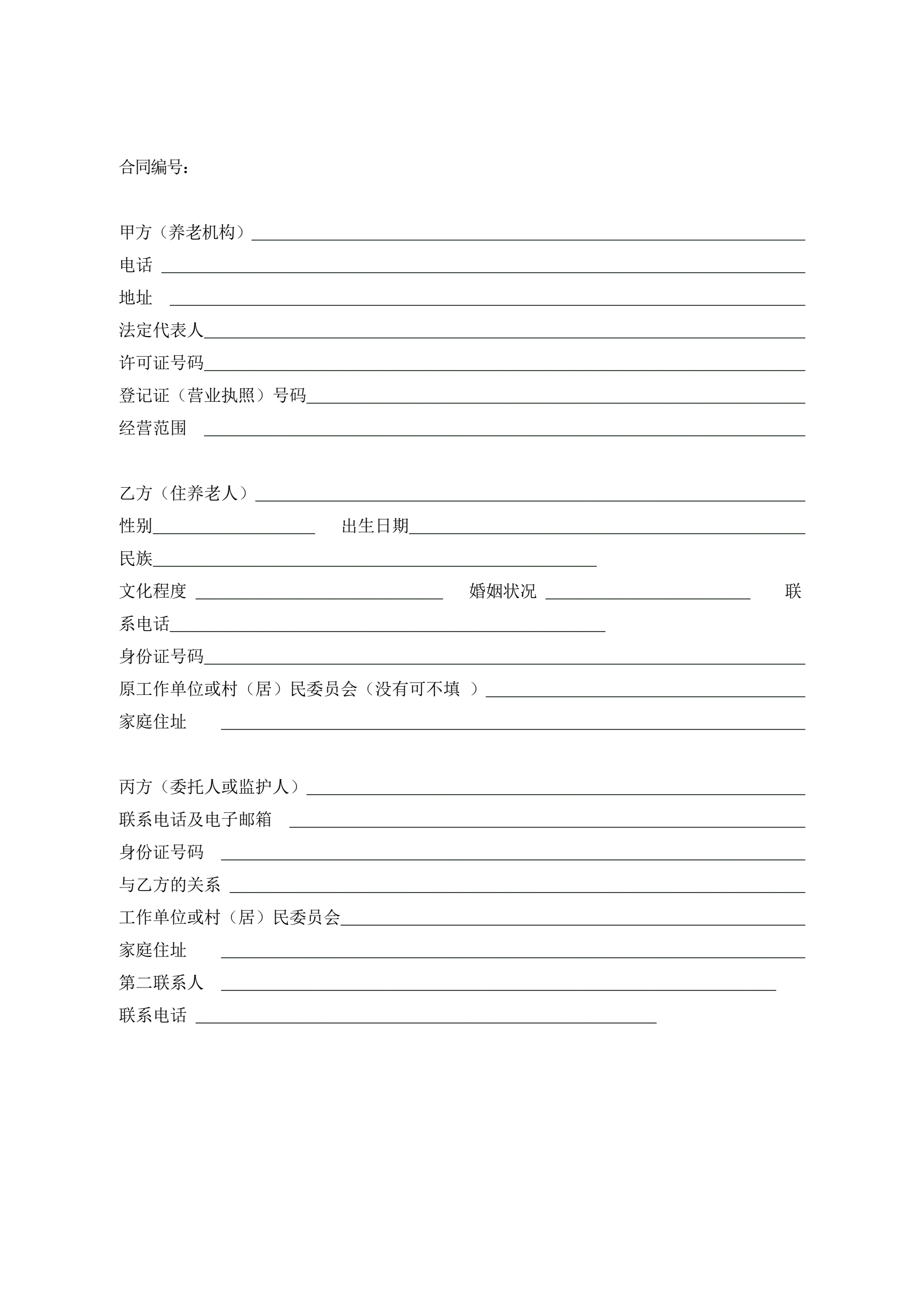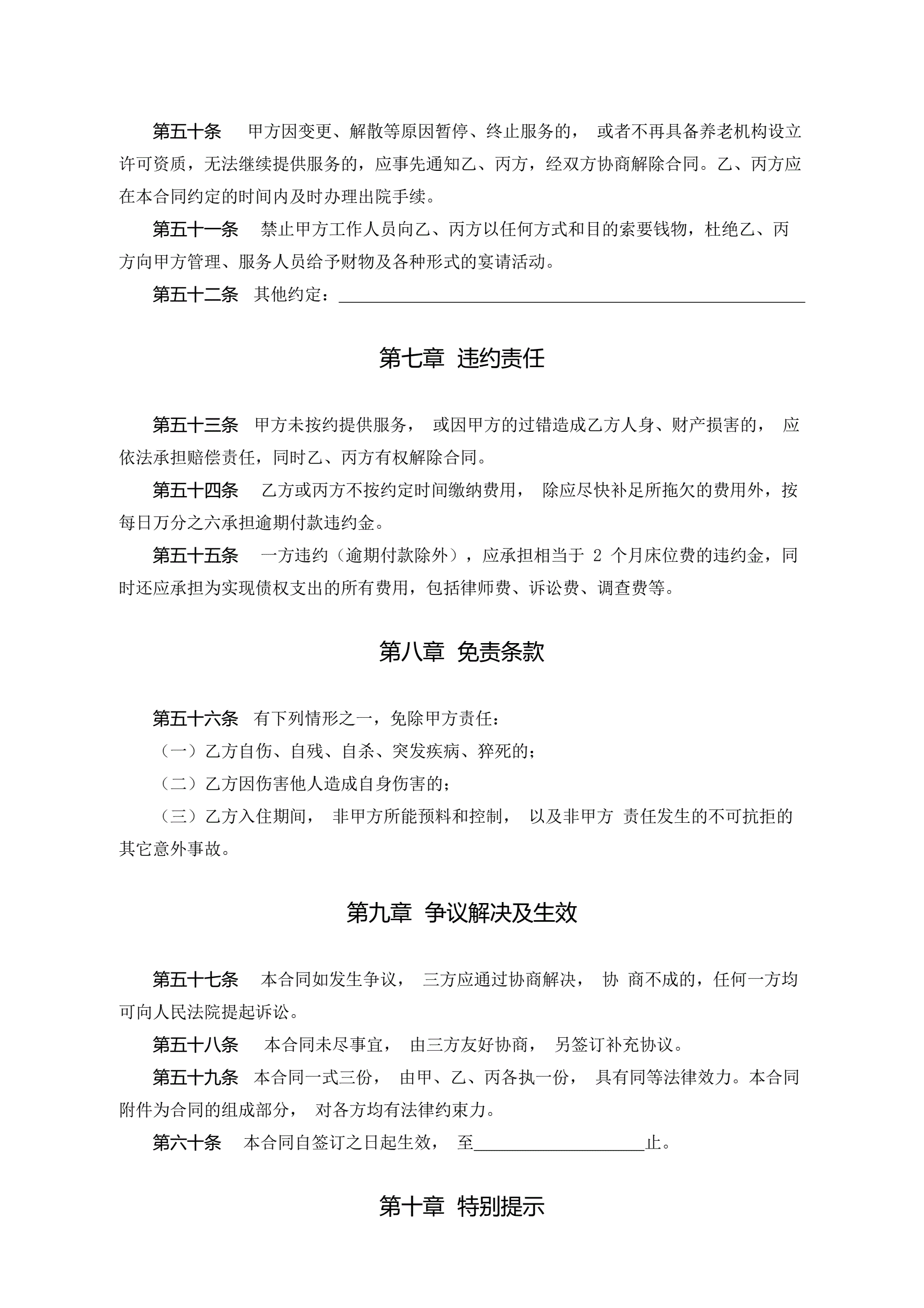 浙江省养老机构服务合同(示范文本)