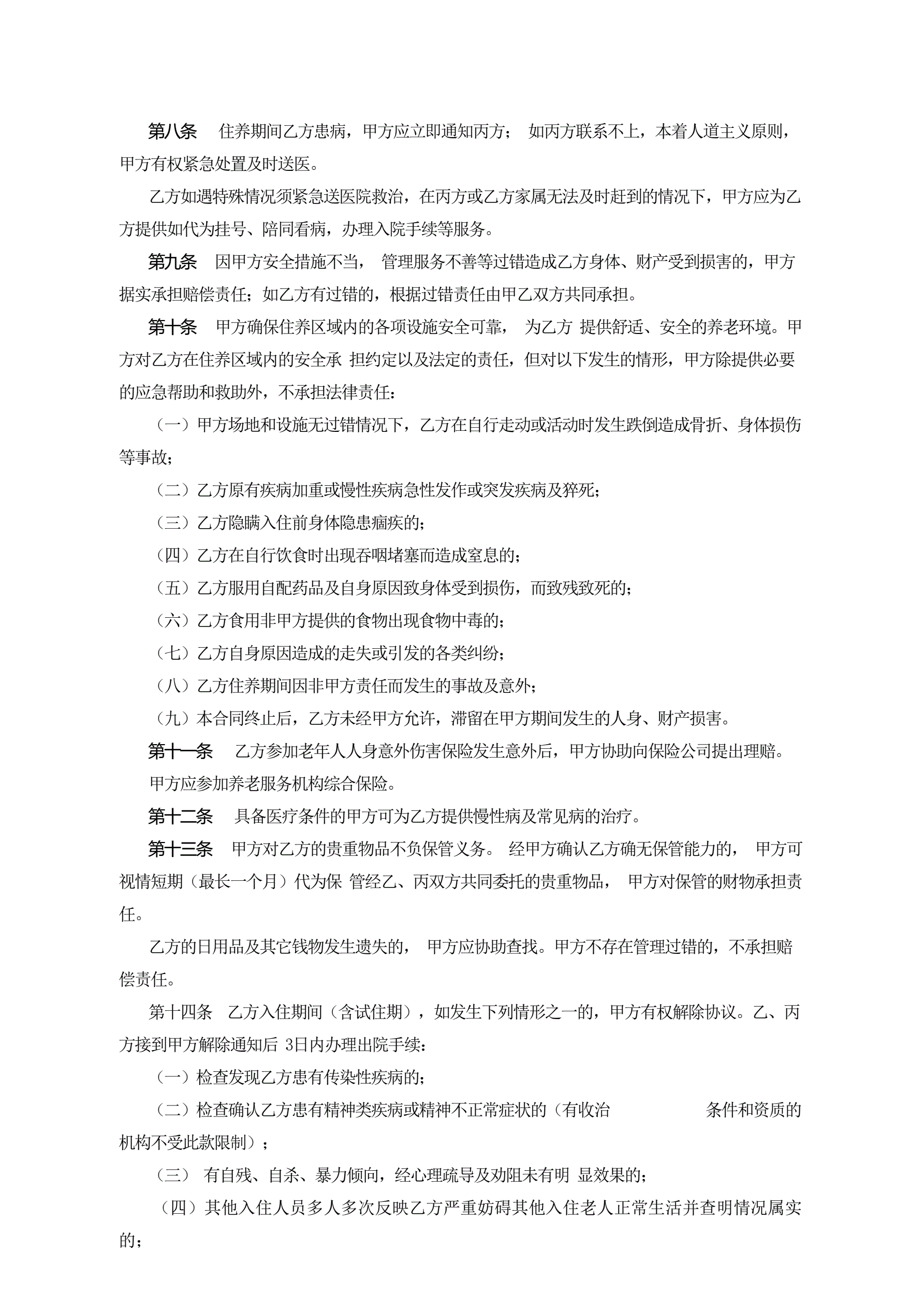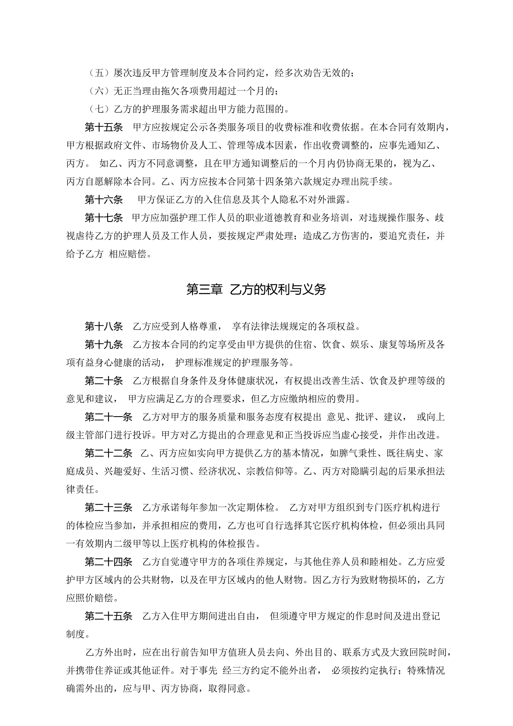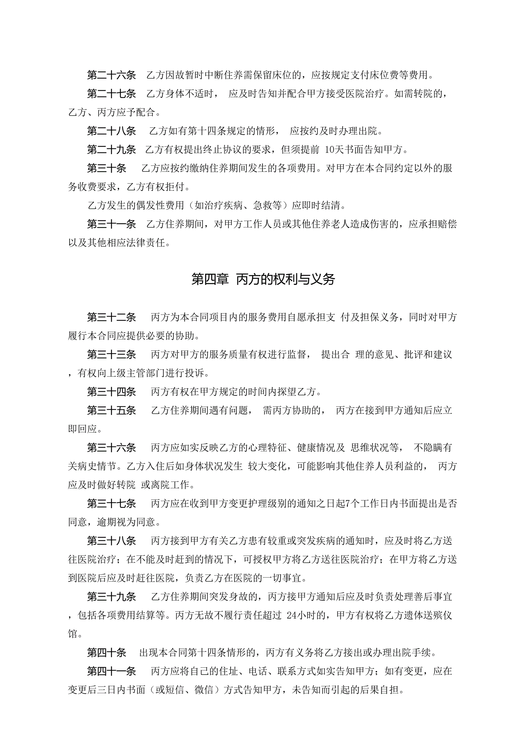 浙江省养老机构服务合同(示范文本)