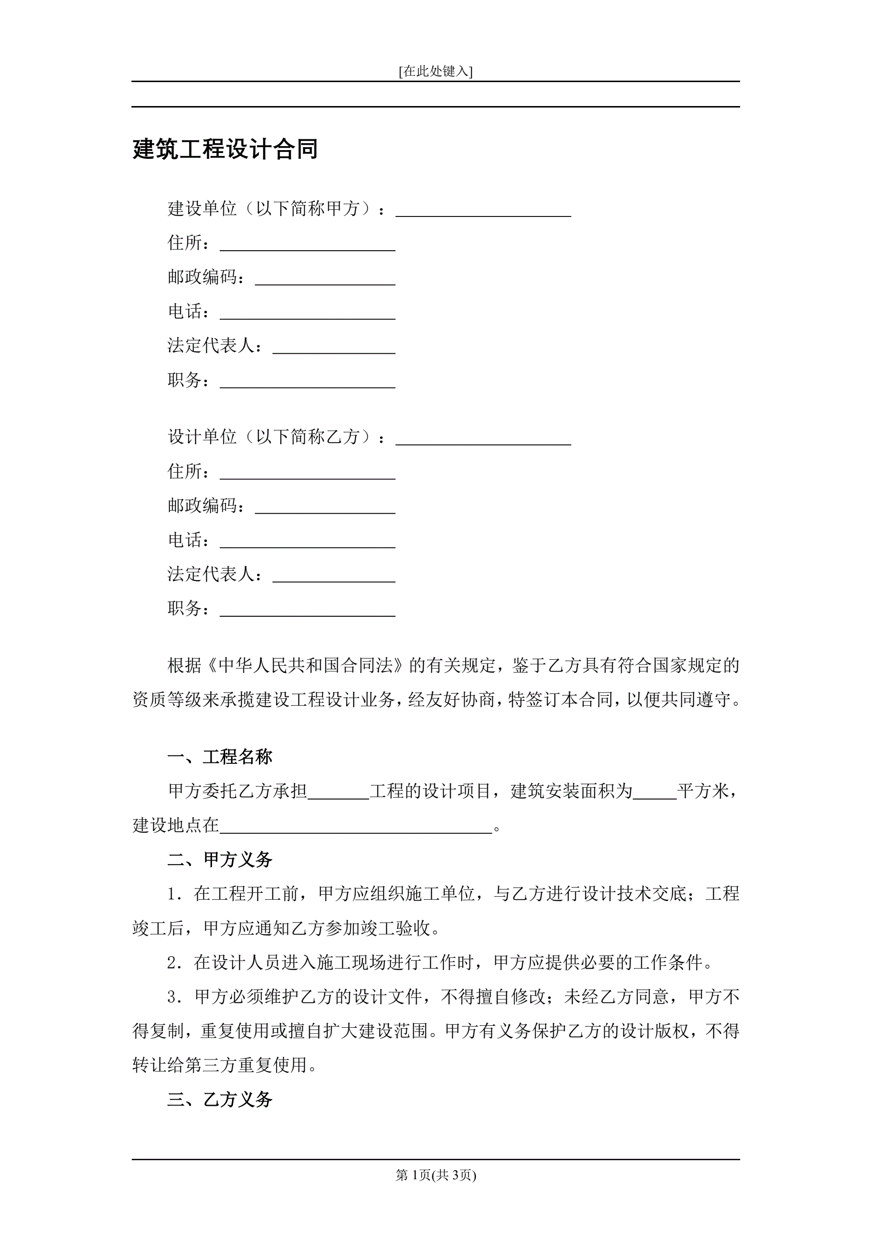 >建筑工程设计合同