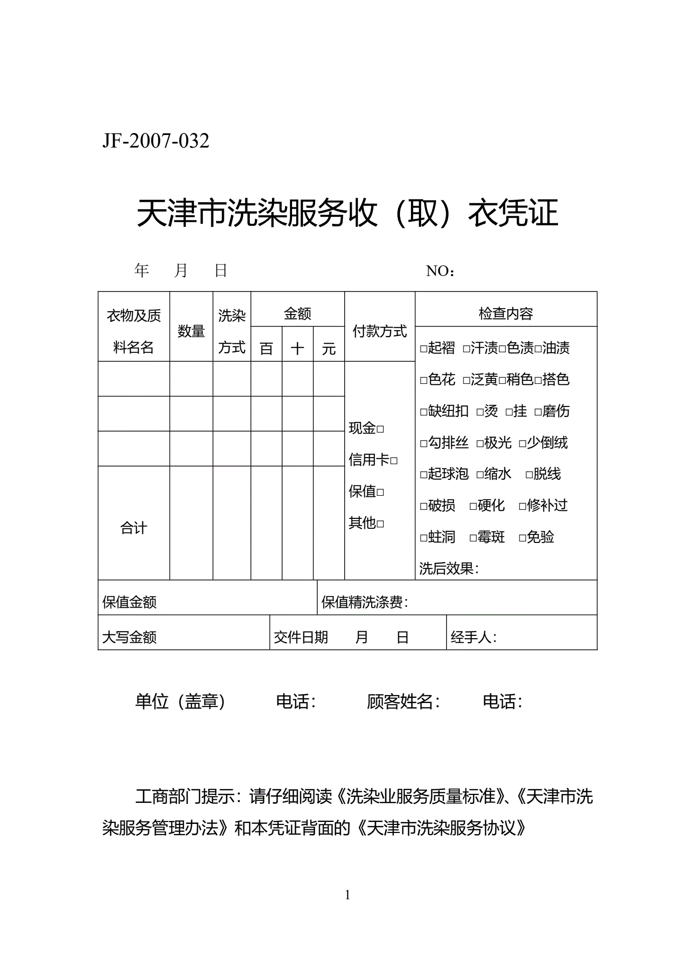 天津市洗染服务合同