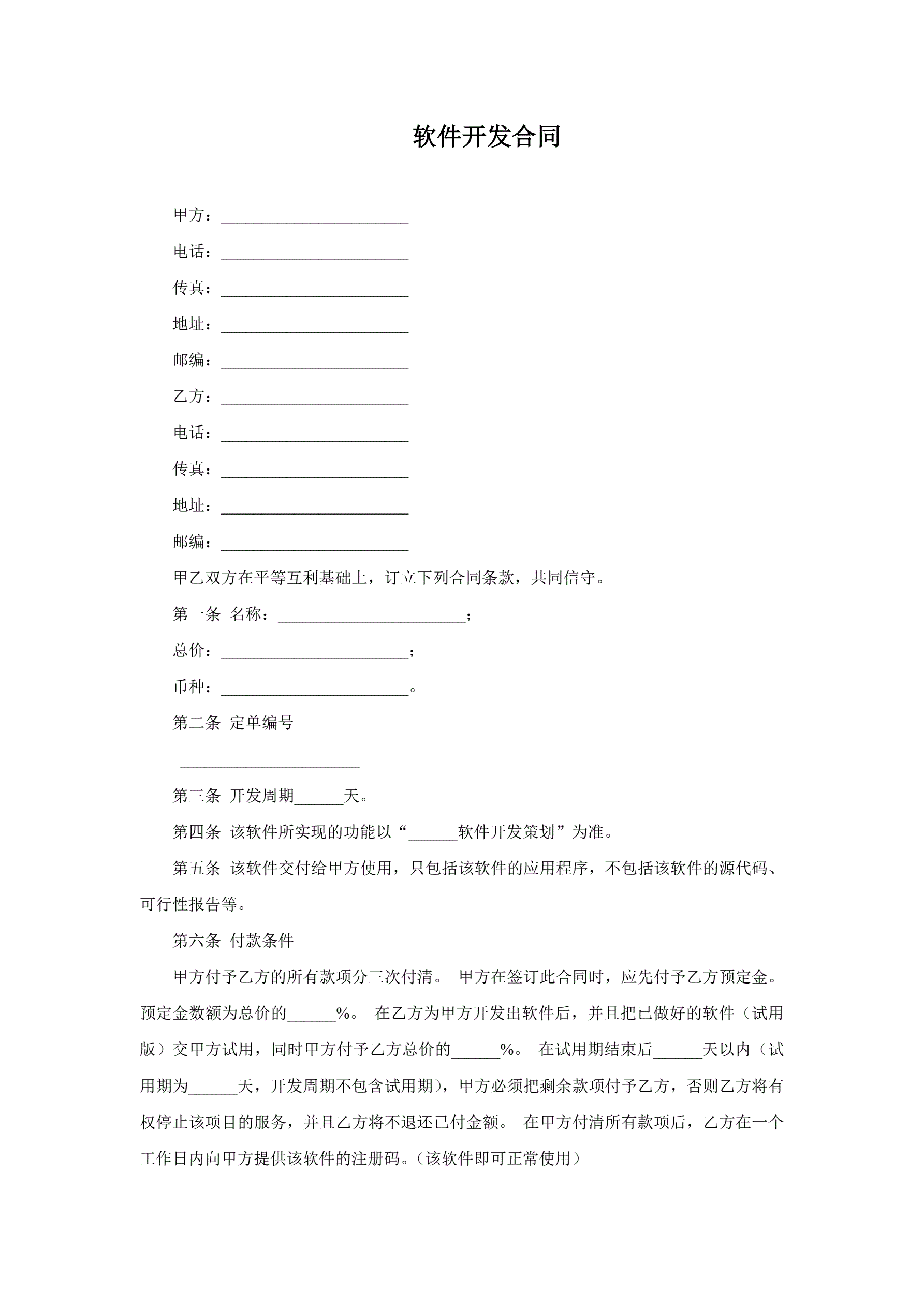 合同名称:软件开发合同
