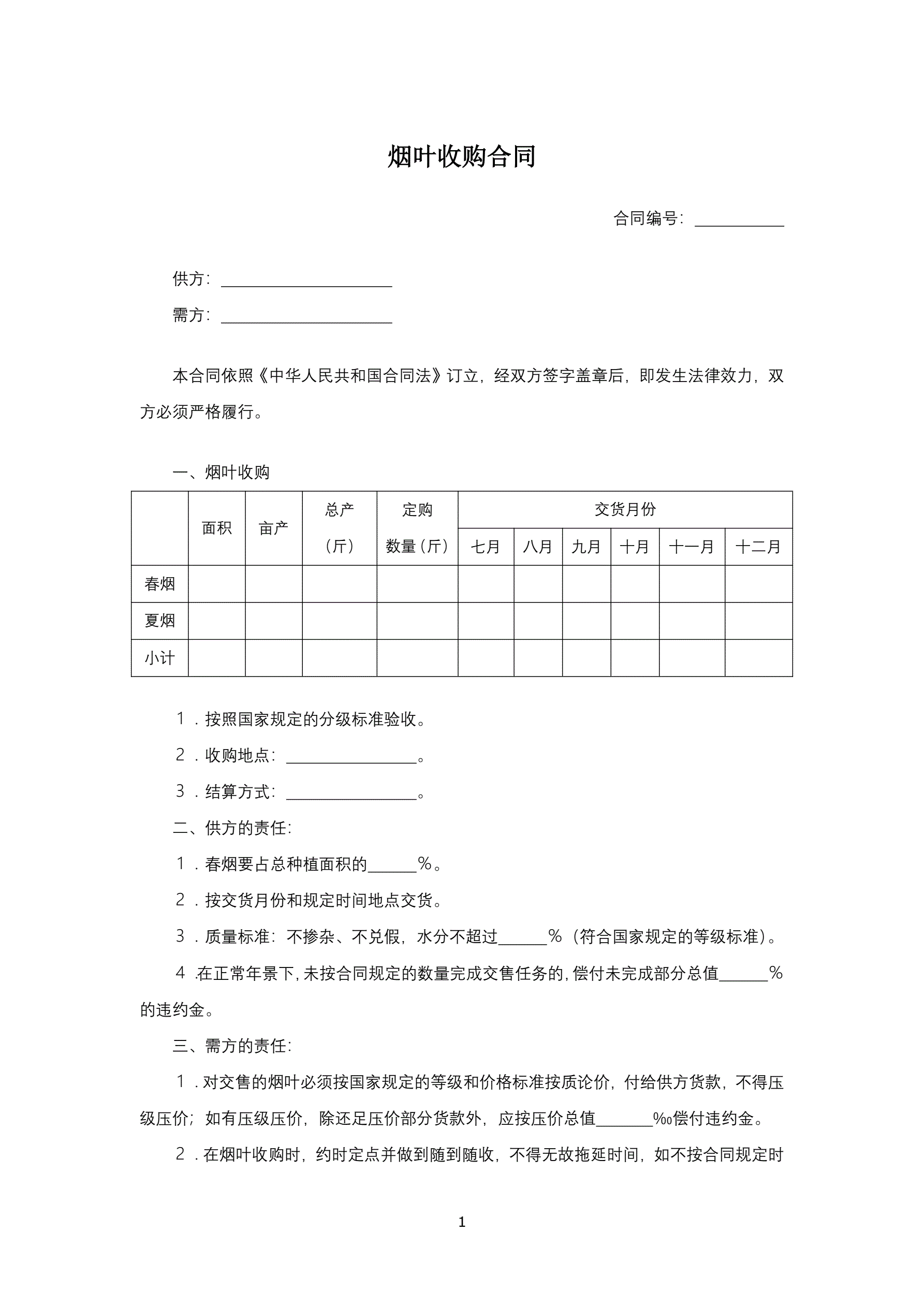 >烟叶收购合同