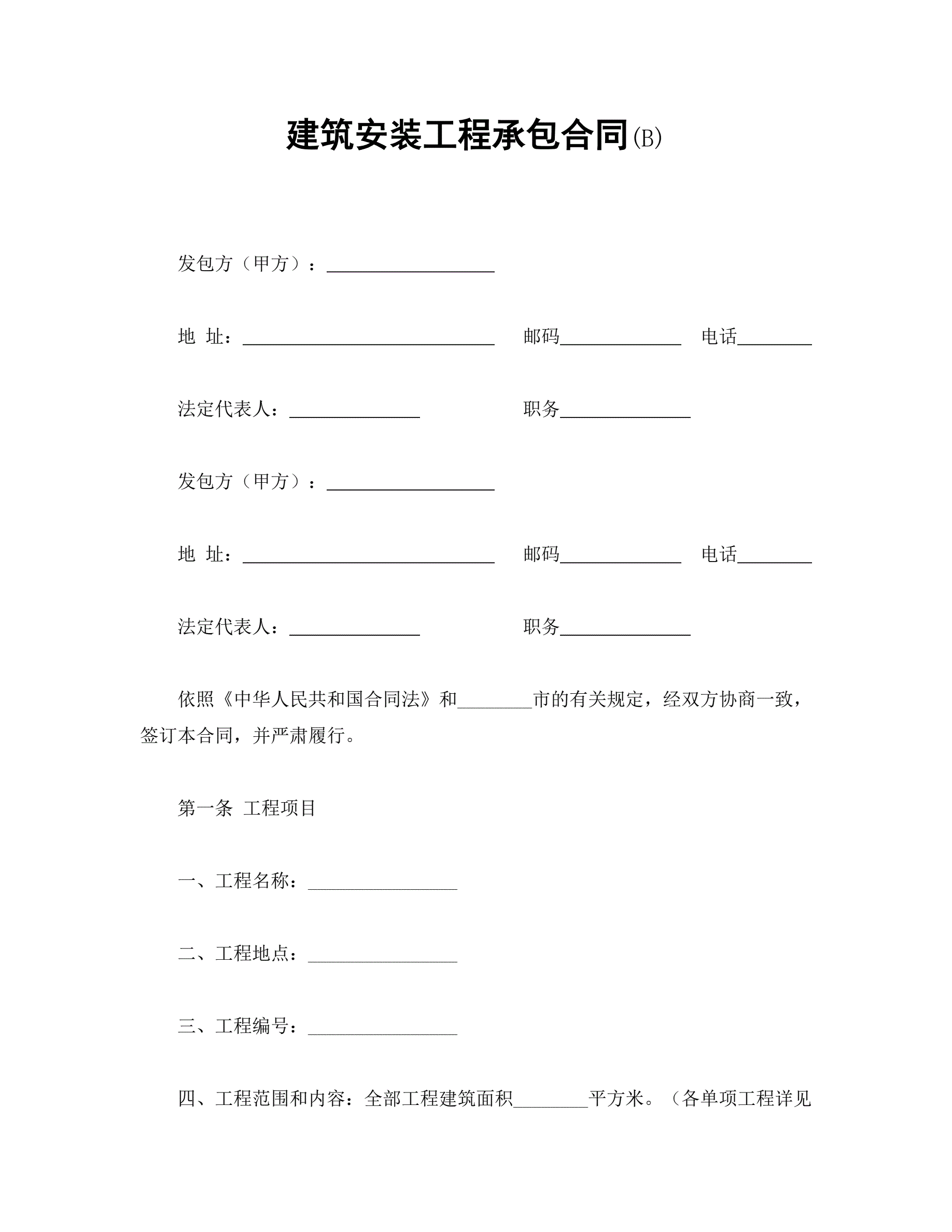 建筑安装工程承包合同(B)
