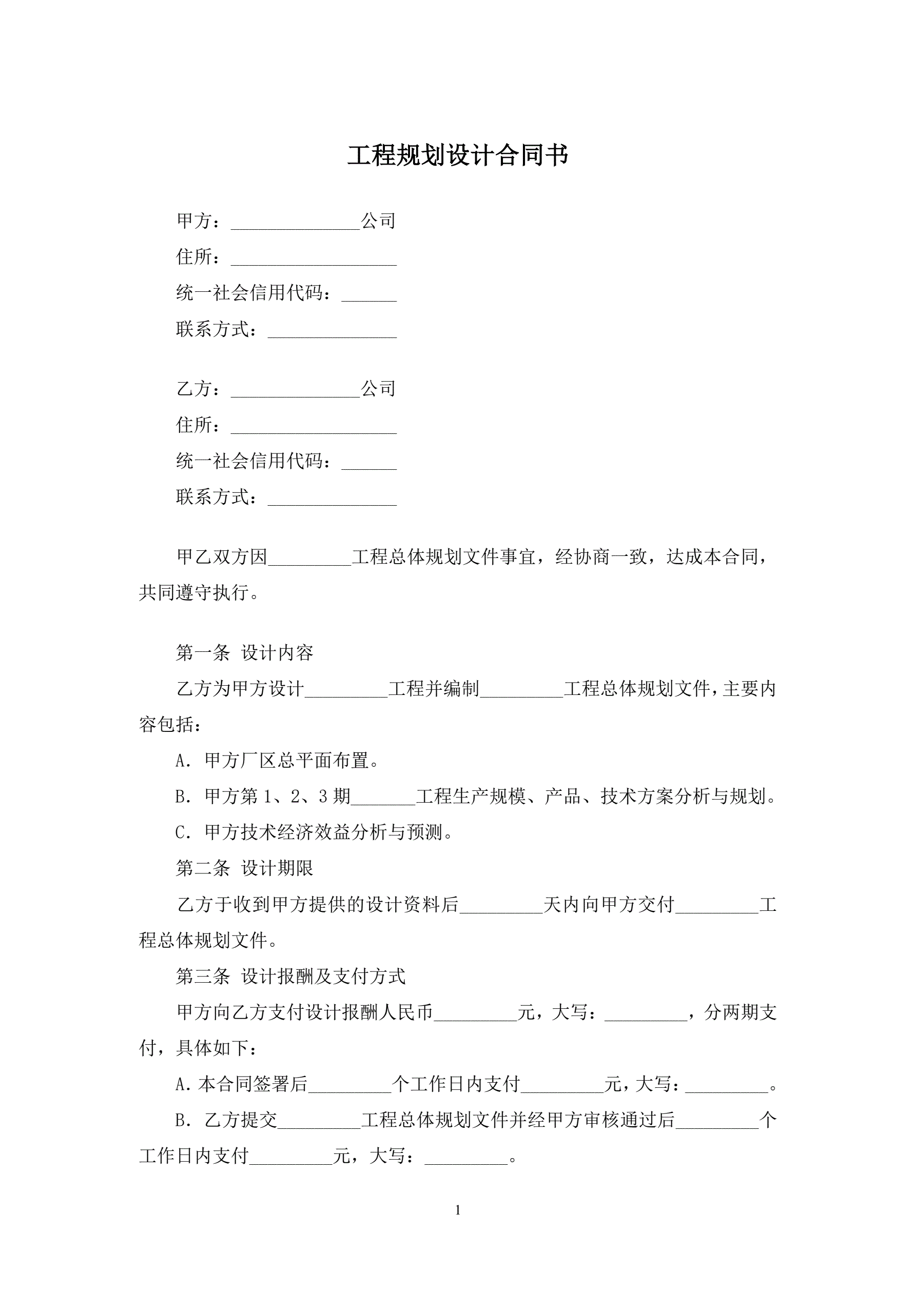 工程规划设计合同书