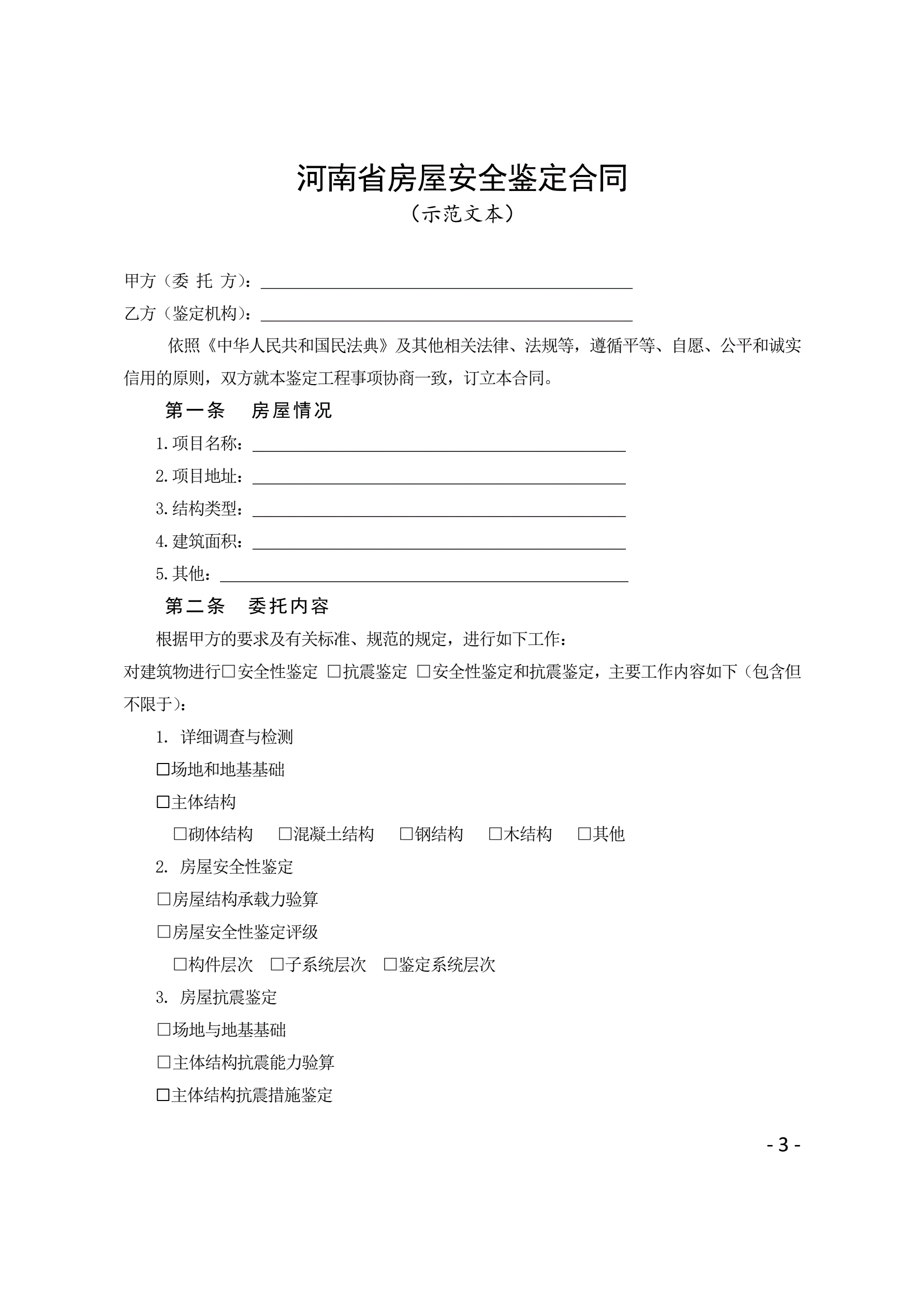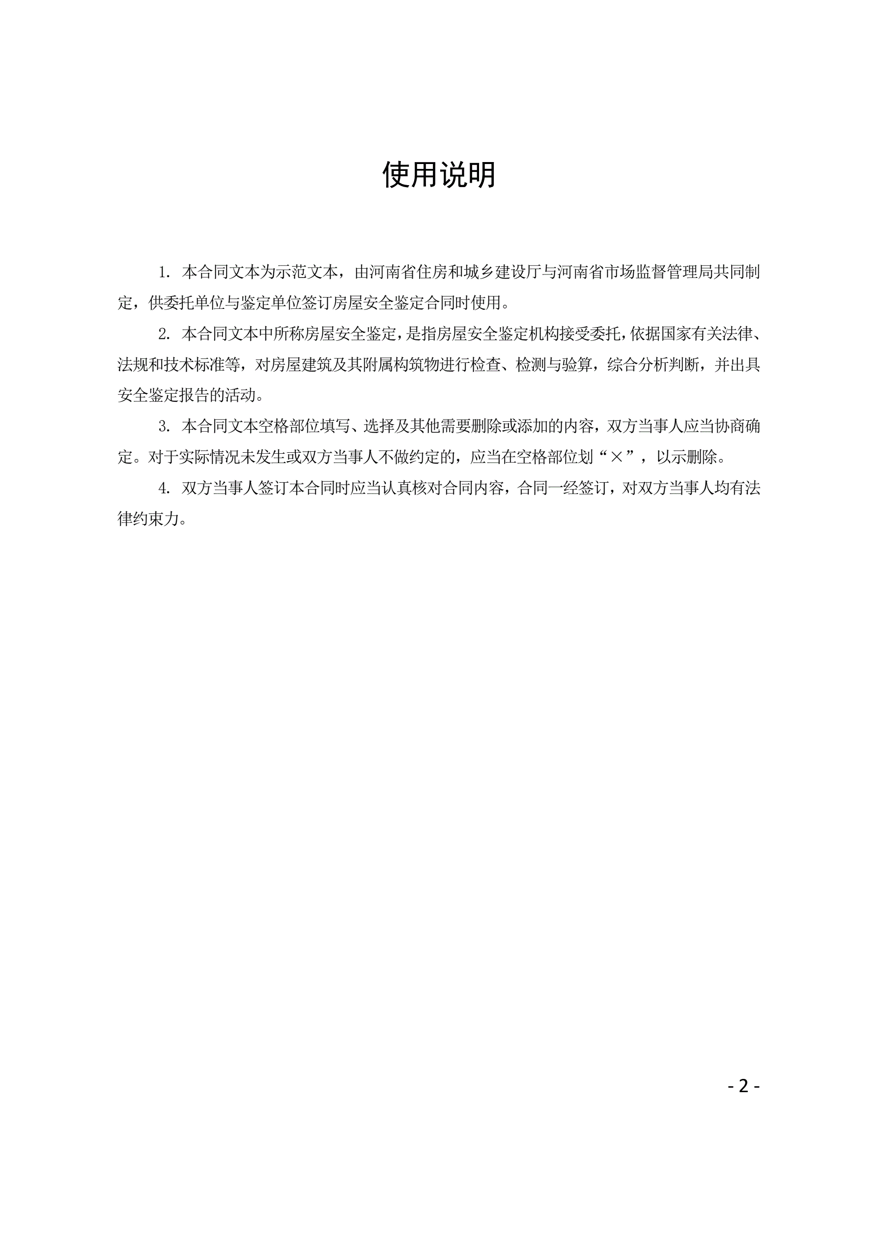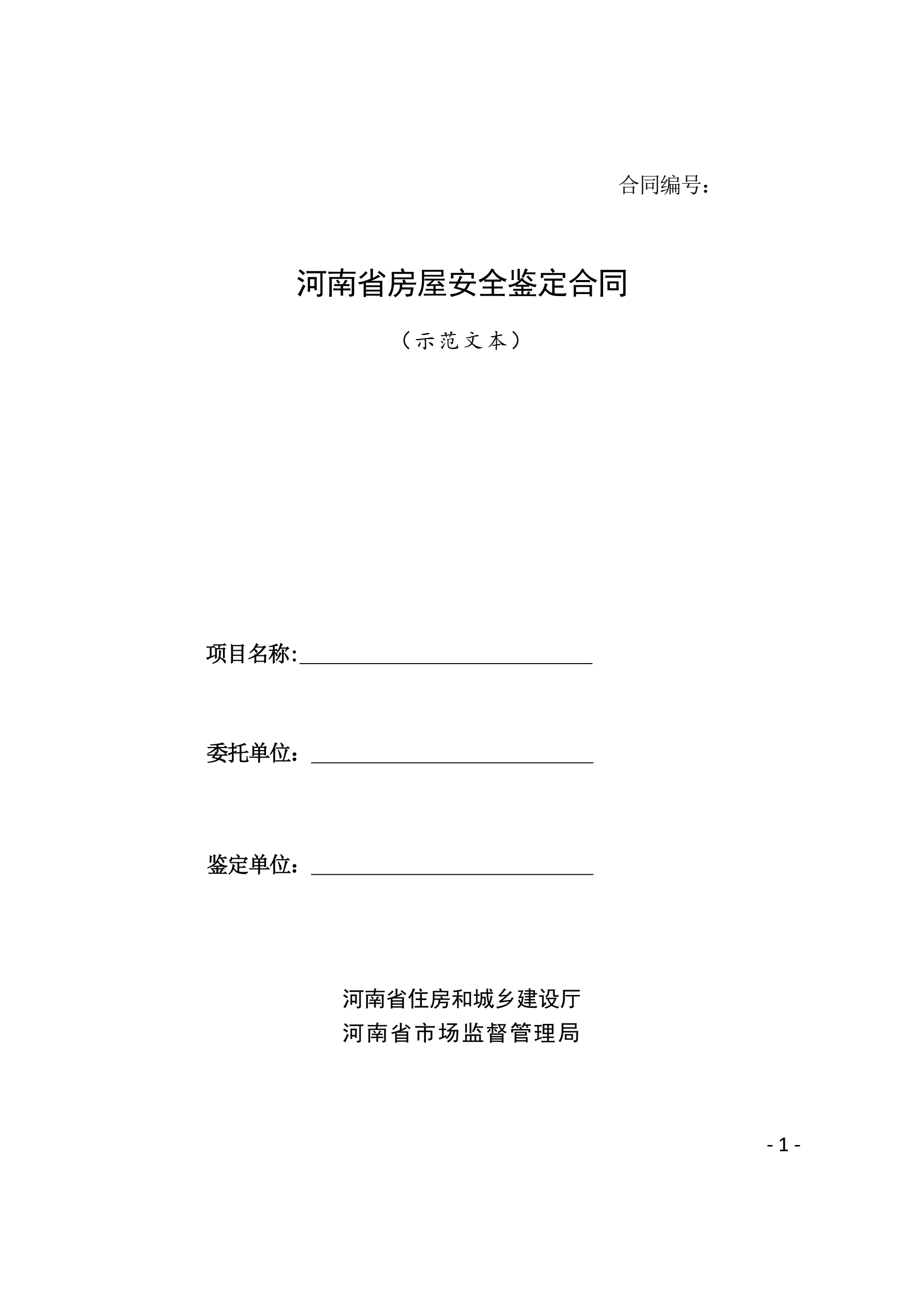 >河南省房屋安全鉴定合同示范文本(河南省住建厅河南省市场监管局)