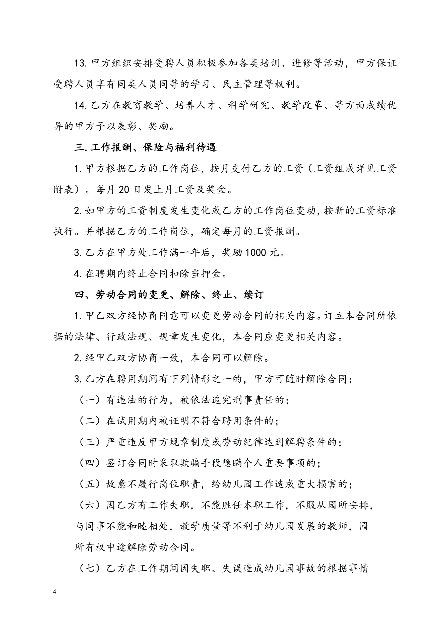 >民办幼儿园劳动合同