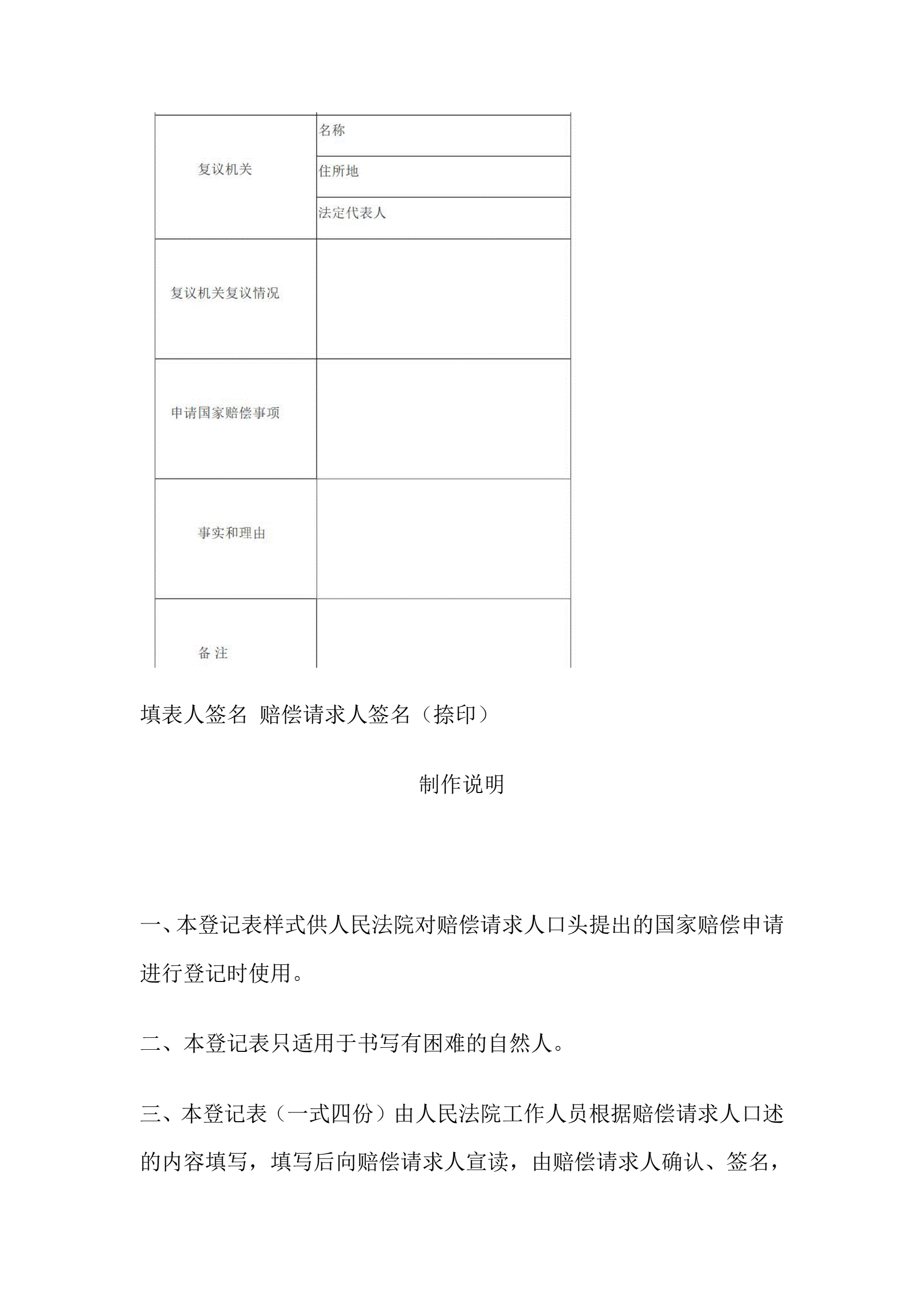 >申请国家赔偿登记表(向人民法院赔偿委员会口头提出国家赔偿申请用)