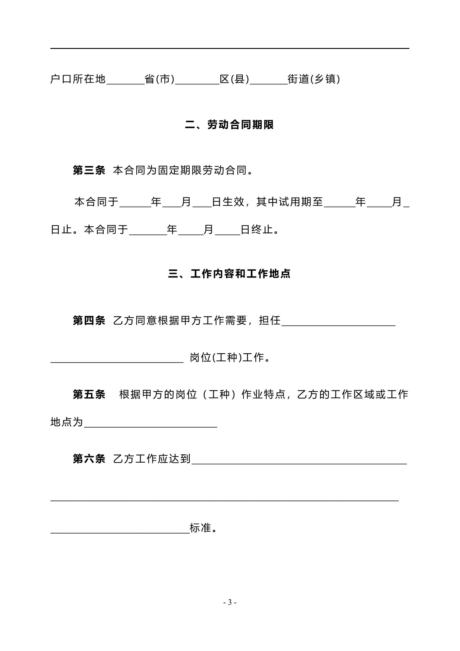 北京-固定期限劳动合同